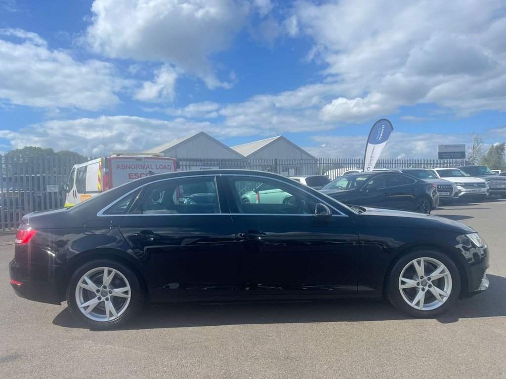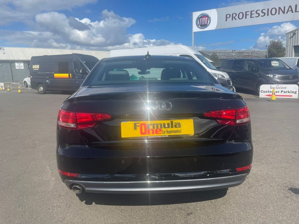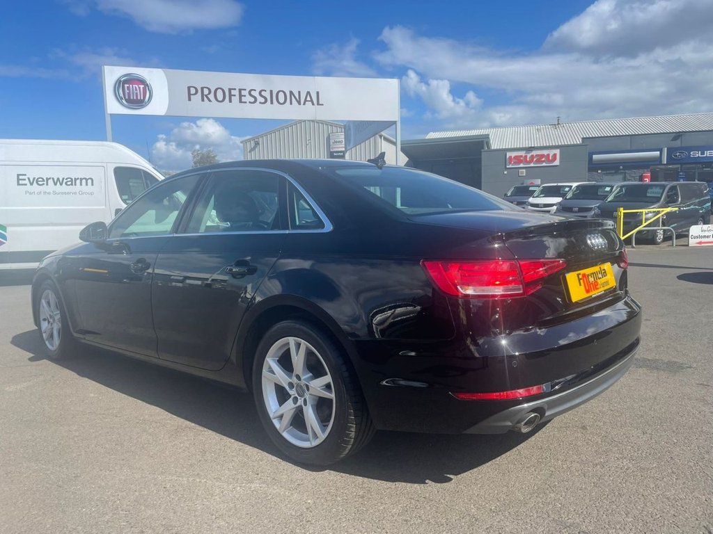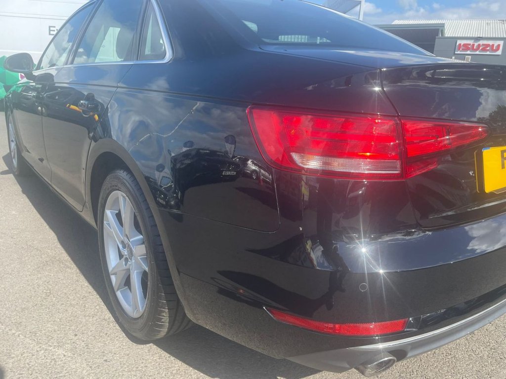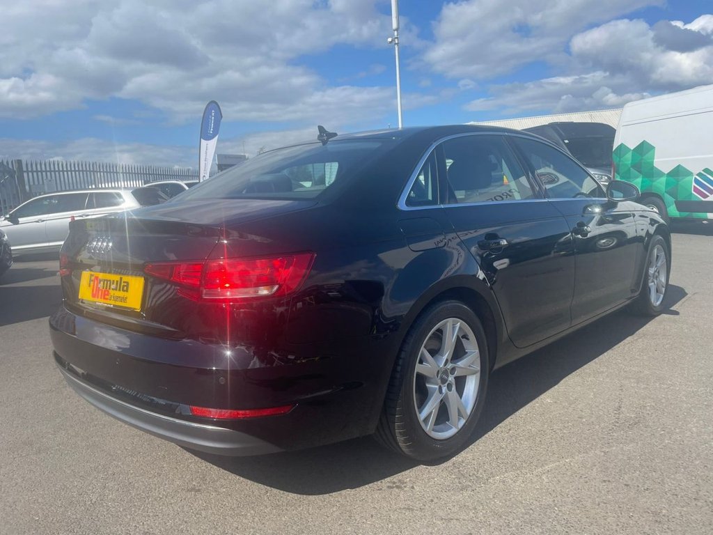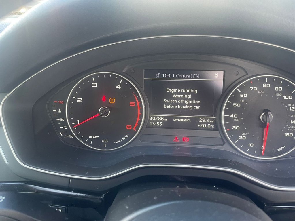 Audi drive select, Audi Pre sense collision avoidance, Audi smartphone interface, Auto boot lid opening, Electro-mechanical PAS, Service interval indicator, Stop/start button, Voice control system, Keyless Start, Locking wheel bolts, Remote central locking, Thatcham category 1 alarm + immobiliser, 2 USB ports, Aux input, DAB digital radio module, MMI radio plus with CD player, 3 zone climate control, Aluminium door sill trims, Front centre armrest with 12v socket, Front/rear floor mats, Isofix child seat preparation for front passenger/outer rear seats inc passenger airbag deactivation, Jack and tool kit, Reach + rake adjustable steering column, Rear headrests, Split folding rear seats, Sunvisors with vanity mirrors, Top tether anchor plate for isofix child seat, Acoustic windscreen, Air inlets in titanium black, Auto dimming rear view mirror, Automatic headlights + automatic windscreen wipers, Body coloured bumpers, Body coloured door mirrors, Chrome door handles, Chrome rolled exhaust, Electric adjustable heated door mirrors, Electric front windows, Electric rear windows, Headlight range control, LED daytime running lights, LED indicators in door mirrors, Rear diffuser in Titan black, Titan black radiator grille with chrome inlay, Low rolling resistance tyres, Exterior aluminium pack - A4, 3 point seatbelts on all rear seats, ABS/EBD, Adaptive driver and front passenger airbags, Electromechanical parking brake, ESP, First aid kit, Front head airbags, Front seatbelt pretensioners + load limiters, Front side airbags, Multi-Collision braking, Seatbelt warning, Traction control, Tyre pressure monitoring system, Warning triangle