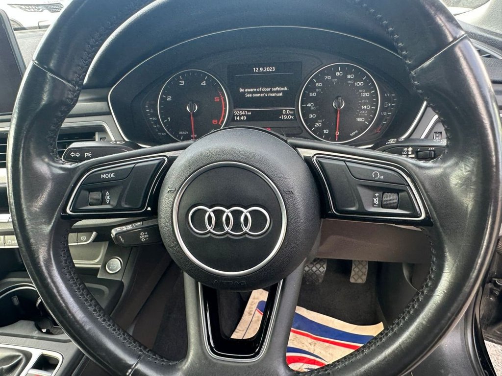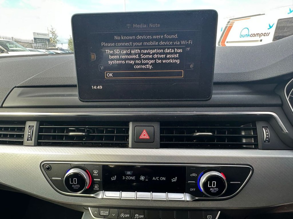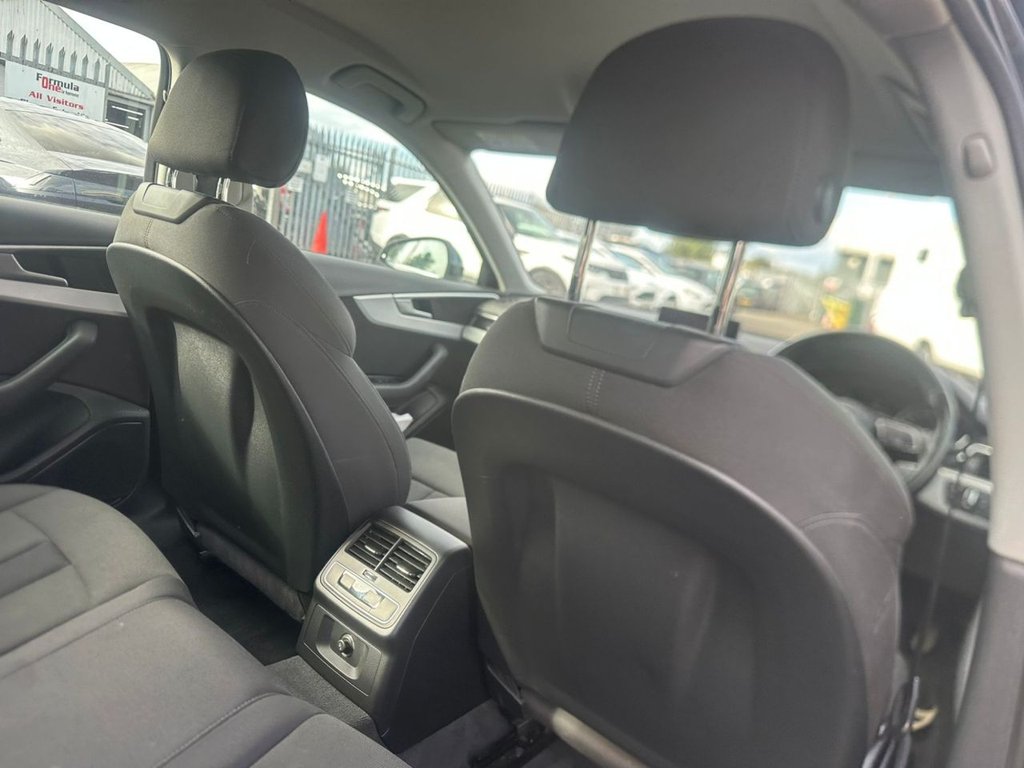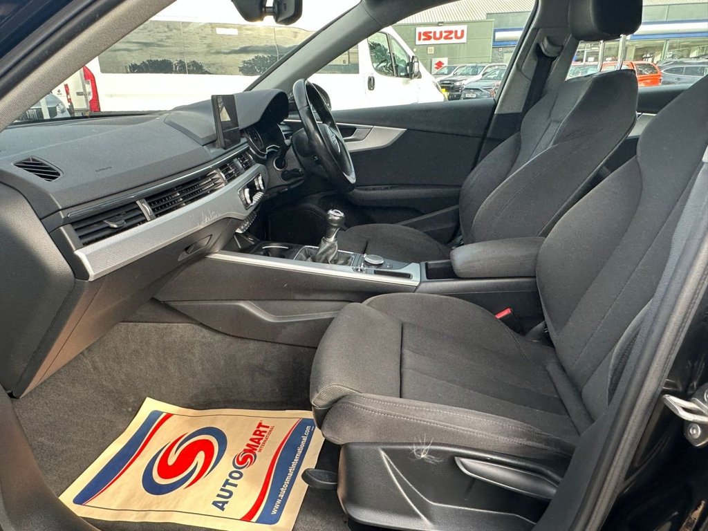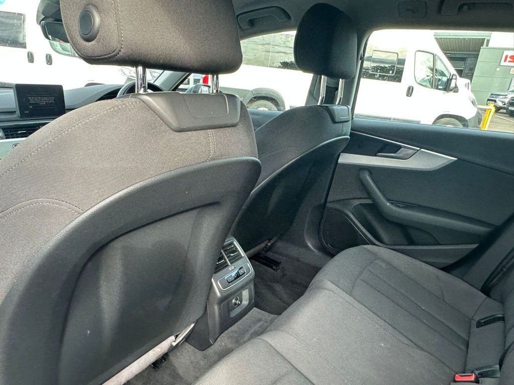Audi drive select, Audi Pre sense collision avoidance, Audi smartphone interface, Electro-mechanical PAS, Power boot opening and closing, Service interval indicator, Stop/start button, Voice control system, Keyless Start, Locking wheel bolts, Remote central locking, Thatcham category 1 alarm + immobiliser, 2 USB ports, Aux input, DAB digital radio module, MMI radio plus with CD player, 3 zone climate control, Aluminium door sill trims, Front centre armrest with 12v socket, Front/rear floor mats, Isofix child seat preparation for front passenger/outer rear seats inc passenger airbag deactivation, Jack and tool kit, Reach + rake adjustable steering column, Rear headrests, Retractable load area cover, Split folding rear seats, Sunvisors with vanity mirrors, Top tether anchor plate for isofix child seat, Acoustic windscreen, Air inlets in titan black with two horizontal inlays in chrome, Auto dimming rear view mirror, Automatic headlights + automatic windscreen wipers, Body coloured bumpers, Chrome door handles, Chrome rolled exhaust, Electric adjustable heated door mirrors, Electric front windows, Electric rear windows, Headlight range control, LED daytime running lights, LED indicators in door mirrors, Rear diffuser in Twilight grey matt, Rear wiper, Low rolling resistance tyres, Space saver spare wheel, 3 point seatbelts on all rear seats, ABS/EBD, Adaptive driver and front passenger airbags, Electromechanical parking brake, ESP, First aid kit, Front head airbags, Front seatbelt pretensioners + load limiters, Front side airbags, Seatbelt warning, Traction control, Tyre pressure monitoring system, Warning triangle