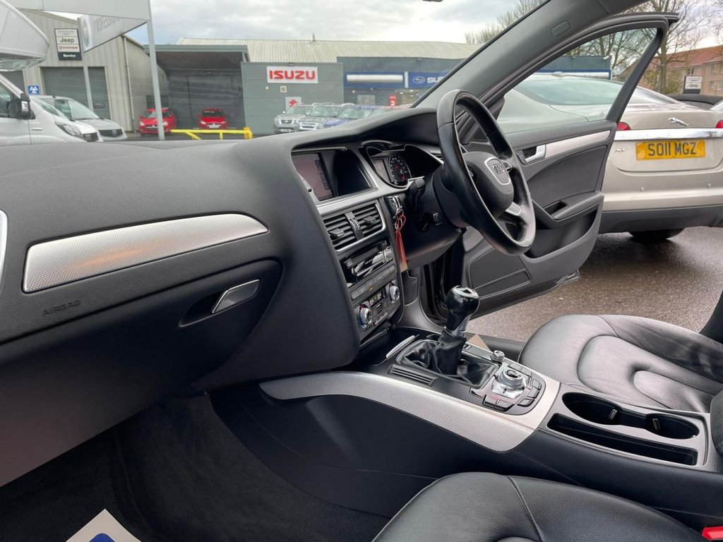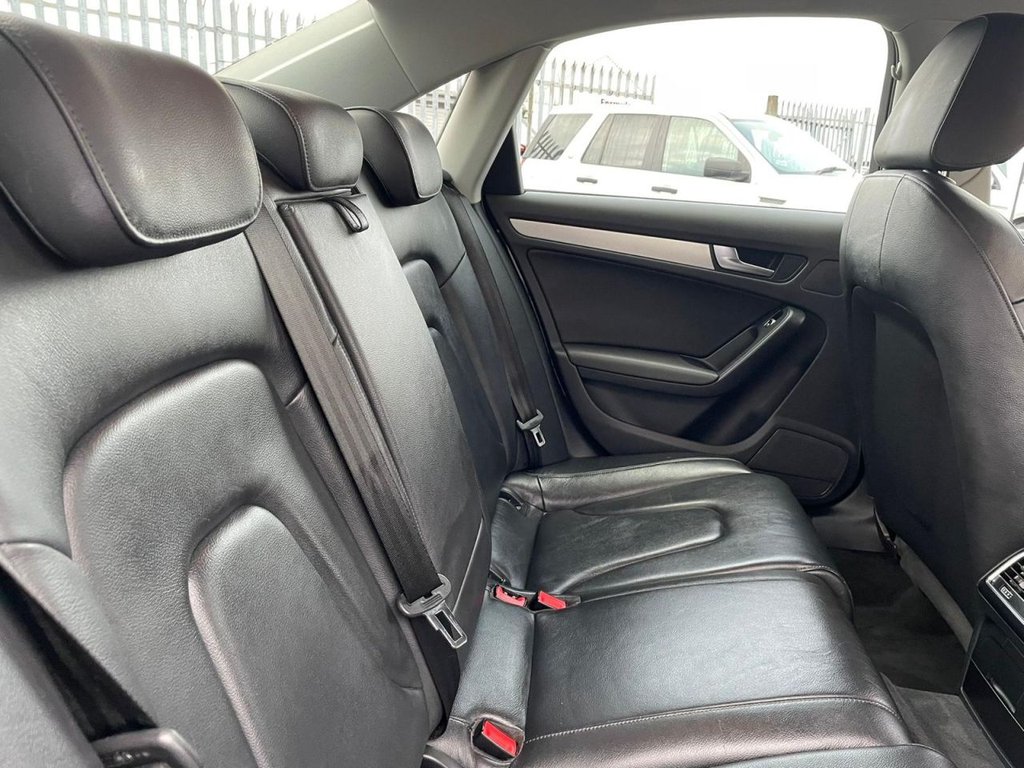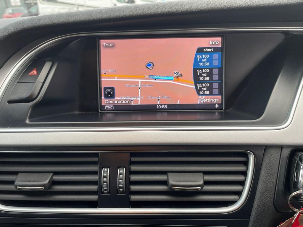 Auto boot lid opening, Driver information centre with colour display in instrument panel, Electro-mechanical PAS, MMI navigation plus with HDD and jukebox storage + 2 SD card readers + single CD/DVD player, Service interval indicator, Voice control system, Intelligent Key, Locking wheel bolts, Remote central locking, Thatcham category 1 alarm + immobiliser, Aux input, DAB digital radio module, 12V socket in luggage compartment, 3 zone climate control, Aluminium door sill trims, Driver's seat height adjustment, Front and rear headrests, Front centre armrest with 12v socket, Isofix child seat preparation for front passenger/outer rear seats inc passenger airbag deactivation, Reach + rake adjustable steering column, Rear armrest, Split folding rear seats, Tool kit, Top tether anchor plate for isofix child seat, Acoustic windscreen, Auto dimming rear view mirror, Automatic headlights + automatic windscreen wipers, Body coloured bumpers, Body coloured door handles, Body coloured door mirrors, Electric front windows, Electric heated door mirrors, Electric rear windows, Front fog lights, Headlight range control, Space saver spare wheel, Exterior aluminium pack - A4, Interior chrome pack - A4, 3 point seatbelts on all rear seats, ABS/EBD, Adaptive driver and front passenger airbags, Electromechanical parking brake, ESP, First aid kit, Front head airbags, Front seatbelt pretensioners + load limiters, Front side airbags, Traction control, Tyre pressure monitoring system, Warning triangle
