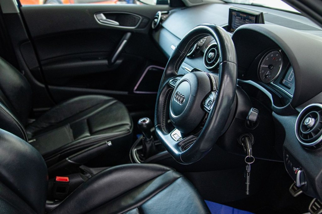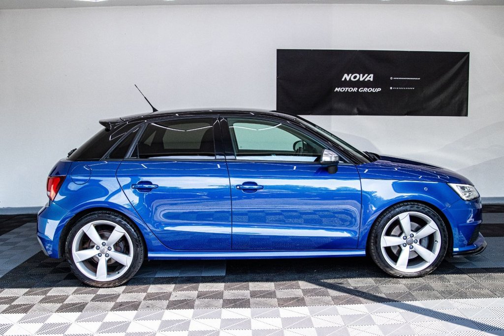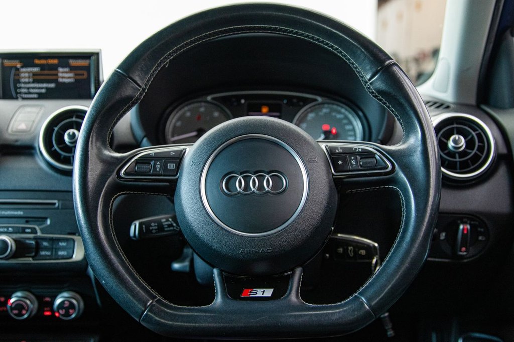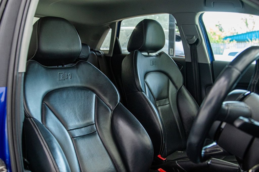 The Audi S1 Sportback is a true hot hatch with real character — compact in size but packing a serious punch. Under the bonnet sits a 2.0 TFSI engine with 231PS, sending power to all four wheels through Audi's legendary quattro system, making it feel planted and confident in all conditions. The 6-speed manual gearbox gives you a proper driver's connection, while the adjustable dampers and S sport suspension make it sharp and fun through corners but comfortable enough for daily use. Inside, it feels premium and sporty with fine Nappa leather super sport seats, heated front seats, LED ambient lighting, and a BOSE surround sound system. Practical touches like split-folding rear seats and Bluetooth connectivity make it easy to live with, while details such as the aluminium pedals, flat-bottom steering wheel, and S1 logos remind you you're in something special. From the outside, it's unmistakably an S car — 18" alloy wheels, S body styling, bi-xenon headlights, twin oval exhausts, privacy glass, and contrast black roof all give it real road presence. Safety is strong too, with multiple airbags, ISOFIX, ESP, and tyre pressure monitoring. In short: the Audi S1 is a rare, driver-focused hot hatch — small enough to dart through the city, powerful enough for back-road blasts, and refined enough to take on longer trips. It's the kind of car that makes every drive feel special.
