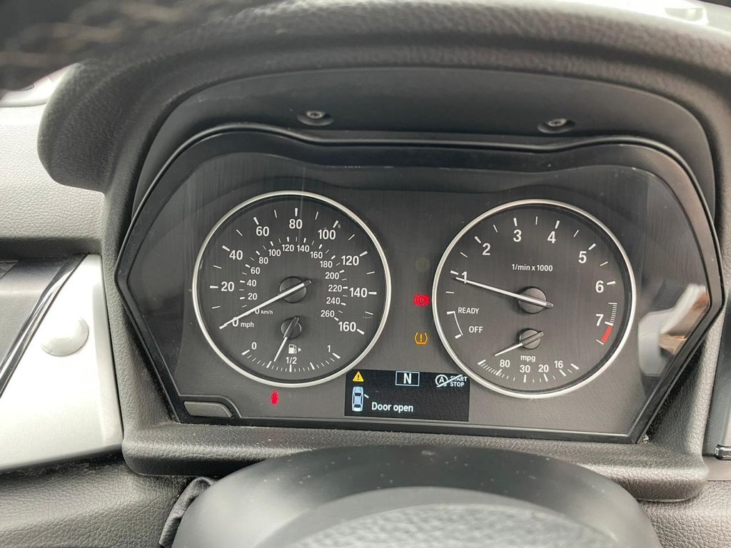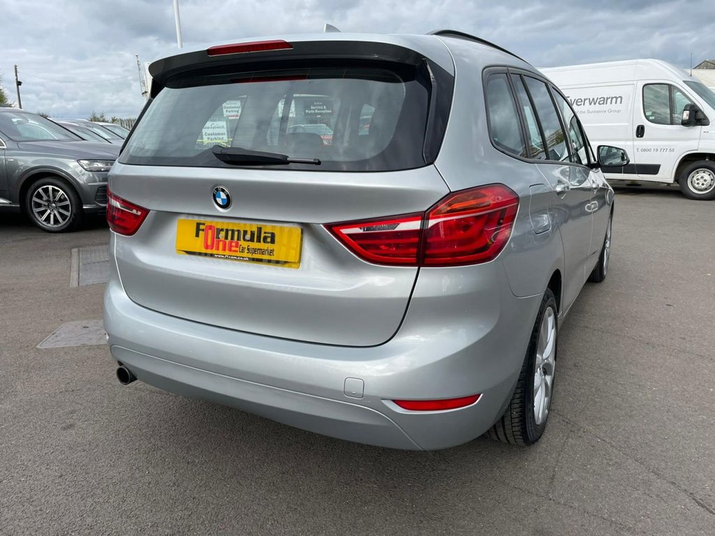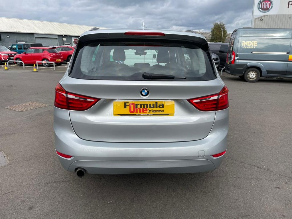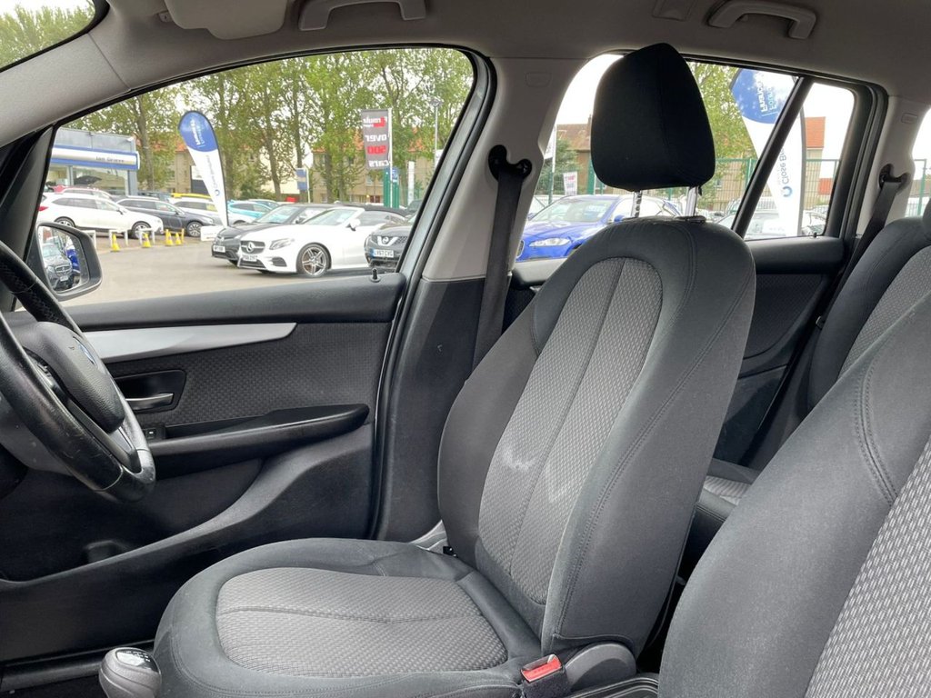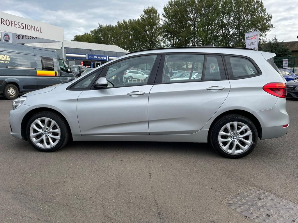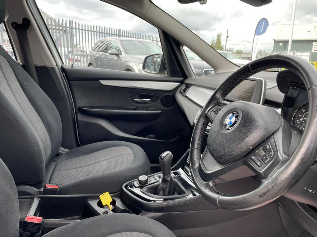 Attentiveness assist, Automatic tailgate operation, BMW Online services, BMW Teleservices, Check control system, Cruise control with brake assist, Door/boot open warning light, Forward collision warning, Lights on warning, Oil temperature gauge, On board computer, Outside temperature display, Personal Profile, Service interval indicator, Speed limiter, Stop/start button, Electronic immobiliser, Key integrated remote control central locking, Locking wheel bolts, Remote control Thatcham category 1 alarm, Drive Performance Control, Electronic differential lock, Extended lights package - 2 Series Gran Tourer, Extended storage pack - 2 Series Active/Gran Tourer, 3 point seatbelts on all seats, ABS, BMW emergency call, Brake assist function, Childproof rear door locks, Collision mitigation braking system, Crash Sensor - activates hazard/interior lighting + unlocks doors, Driver/Front Passenger airbags, DSC+, Dynamic Traction Control - DTC, Front and rear curtain airbags, Front passenger airbag deactivation, Front seatbelt force limiters, Front seatbelt pretensioner, Front side airbags, Hill start assist, Seatbelt warning, Side impact protection, Tyre pressure monitoring system, Warning triangle and first aid kit, Auxiliary point for auxiliary devices, Bluetooth audio streaming, BMW professional radio/CD/MP3, DAB Digital radio, 12V sockets in front centre console and passenger footwell, 2 individual fold flat 3rd row seats, 3 rear headrests, 3 spoke sports leather multi-function steering wheel, 4 grab handles, 40:20:40 split folding rear bench seat, Anthracite Velour floor mats, Dual zone automatic air conditioning, Front armrest, Front head restraints, Front seatback folding trays, Front/rear armrests within door panels, Illuminated glovebox, Isofix front passenger and rear seat preparation, Luggage compartment lighting, Reach + rake adjustable steering column, Rear centre armrest, Sliding rear seats, Sunvisors, Underfloor stowage compartment, Body coloured door handles, Body coloured door mirrors, Body coloured roof mouldings, Chrome exhaust tailpipe, Chrome kidney grille with black vertical slats, Door mirror integrated indicators, Door sill finishers, Electric adjustable heated door mirrors, Electric front/rear windows with one touch/auto up/down, Follow me home headlights, Front fog lights, Green tinted heat insulating glass, Heated windscreen washer jets, High beam assistant, LED daytime running lights, Rain sensor including auto headlights activation, Rear wiper, Welcome lighting, Low rolling resistance tyres, Tyre mobility system