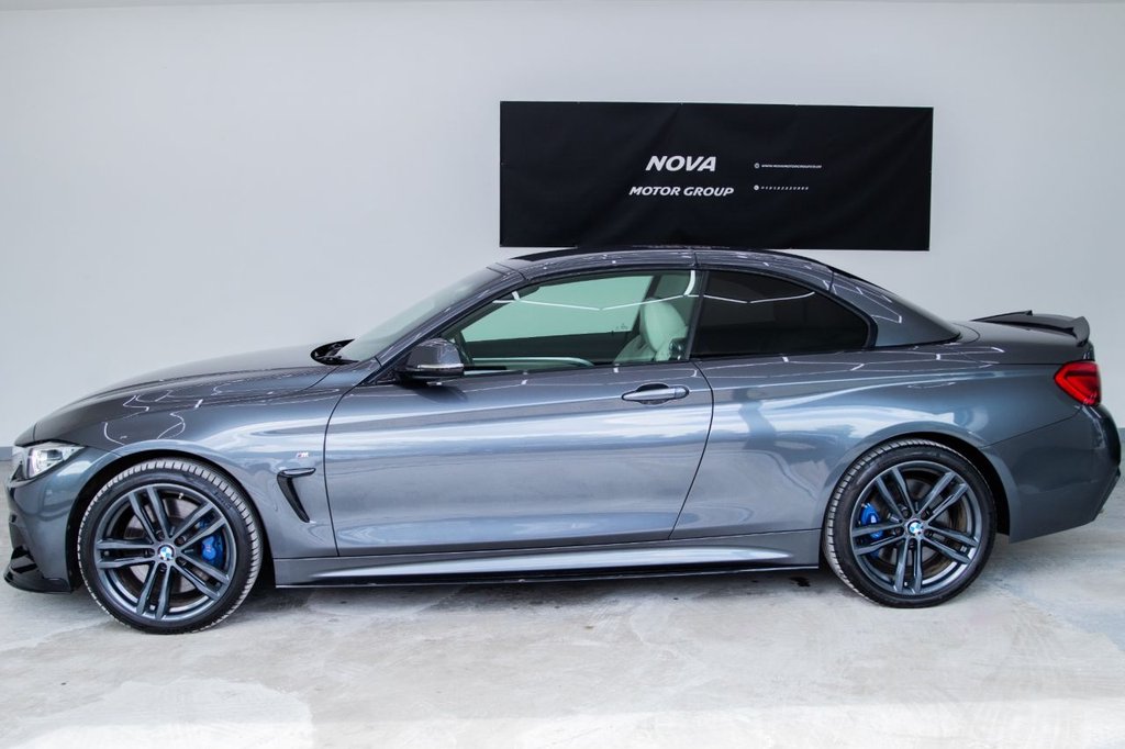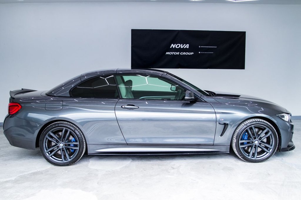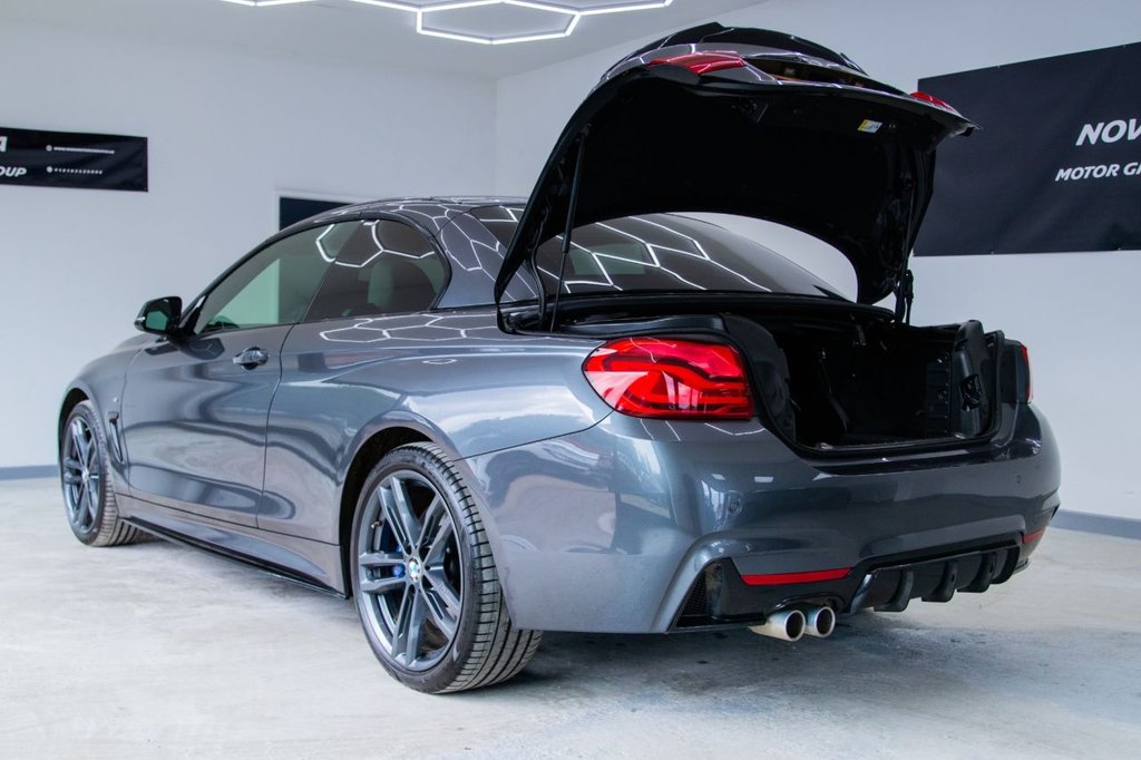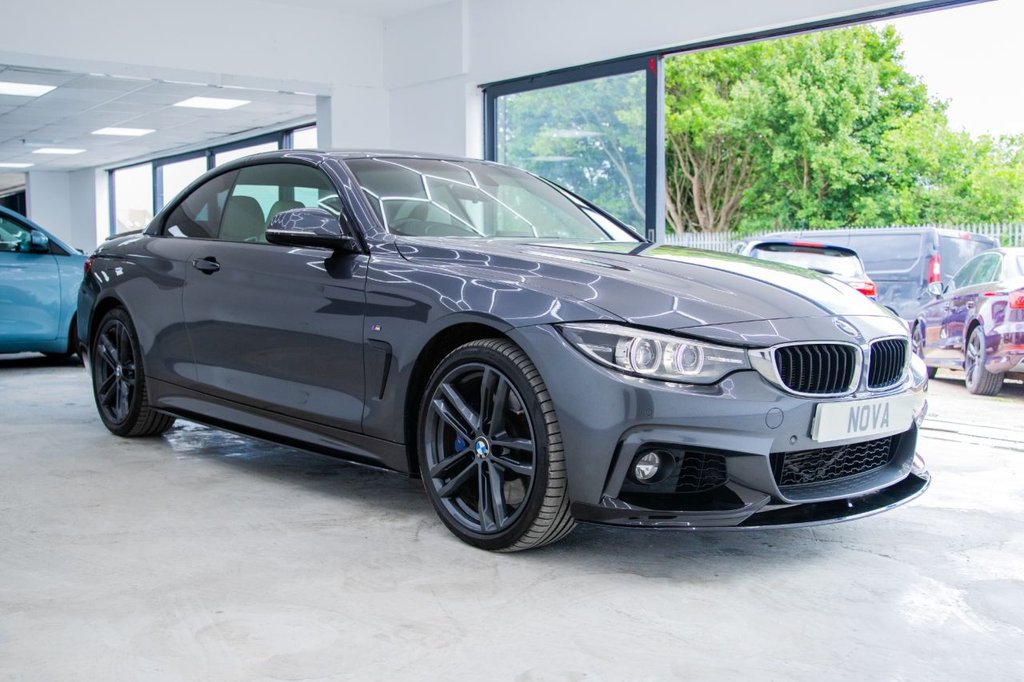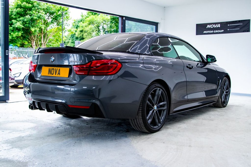 Experience the thrill of open-top driving with the MT18NTE BMW 4 Series 3.0 435d M Sport Convertible – a performance-focused drop-top that blends luxury, power, and practicality. Powered by a 3.0-litre twin-turbo diesel engine producing 313 PS and paired with BMW's intelligent xDrive all-wheel-drive system, this Euro 6 (s/s) model delivers exhilarating acceleration and surefooted grip in all conditions. This high-spec M Sport trim includes premium features designed to enhance comfort and driving enjoyment: Convertible Comfort Package – featuring a heated steering wheel, neck warmers, and enhanced cabin climate control for top-down motoring year-round Harman Kardon loudspeaker system – delivering rich, immersive sound quality Reversing assist camera with parking sensors – making manoeuvring simple and stress-free LED headlights – for sharp visibility and a striking road presence M Sport styling and upgraded alloy wheels – adding to the car's aggressive yet refined appearance With a 0–60mph time of just 5.2 seconds, this 435d combines everyday usability with serious performance. It also falls into a low insurance group and is Euro 6 compliant, offering lower emissions and running costs. Presented with 2 keys, a full service history, and a 12-month MOT, this convertible is ready to enjoy immediately. Finance options available with £0 deposit, and we also offer warranty coverage for up to 3 years, giving you complete peace of mind.