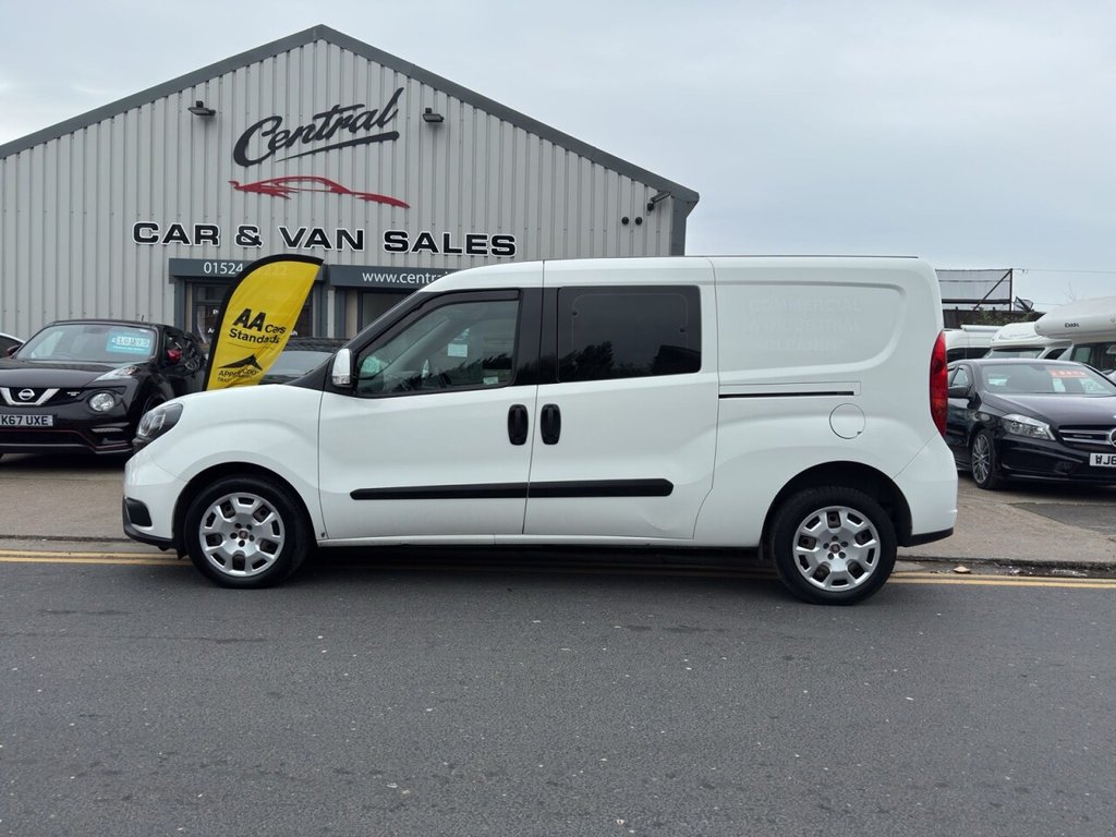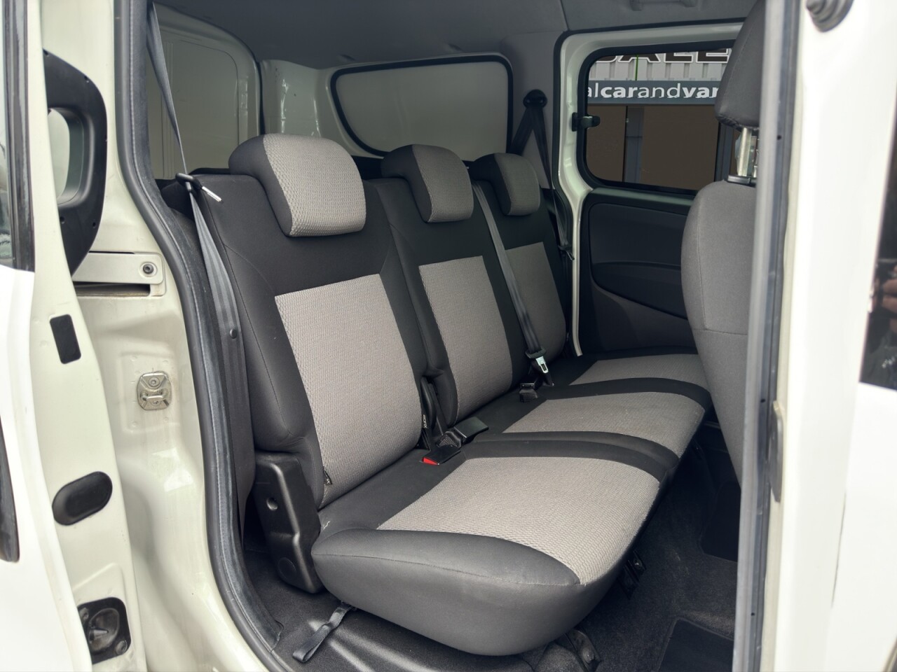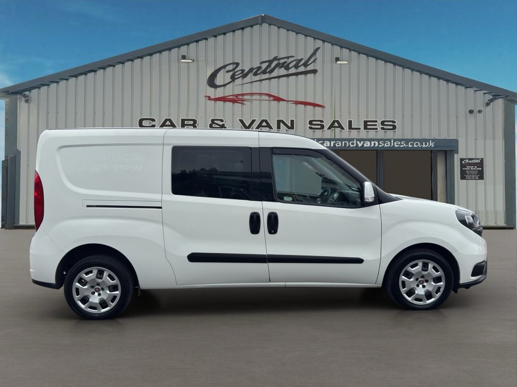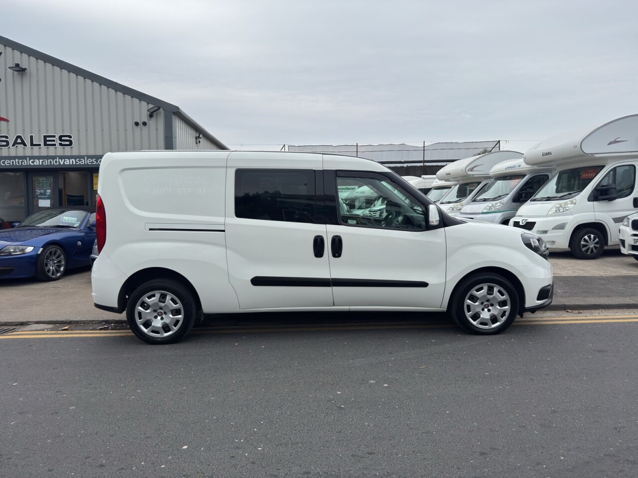October 2020 Fiat Doblo 16v Tecnico Maxi L2H1 5 Seater Crew Combi Van in White with dark cloth trim. The van has covered just 110k miles from new with the same owner from brand new the van has been very well kept, serviced and maintained, This is a 5 seater vehicle with an extended rear load area and has has a boot capacity of 790 liters up to the parcel shelf, and this can be increased to 3,200 liters when all the passenger seats are folded down. Making it ideal for work or leisure use This example is EURO 6 so is ULEZ Compliant, Road tax costs £345 for 12 months and £189 for 6 months Insurance group 31A. The van has a good specification which includes multi function steering wheel, electric windows, electric mirrors, remote central locking, 6 speed manual transmission, on board trip computer, AUX/USB/12V DC, air conditioning, cruise control, radio/CD player, ISOFIX points, full headlining, bulkhead deletion, Parking sensors, 16" steel wheels with trims, front fog lights 12 MONTHS MOT FRESH SERVICE FINANCE AVALIABLE PRICE IS PLUS VAT