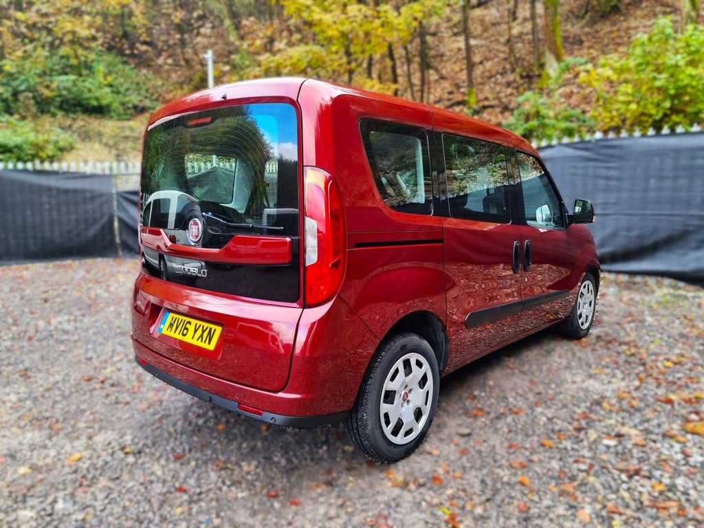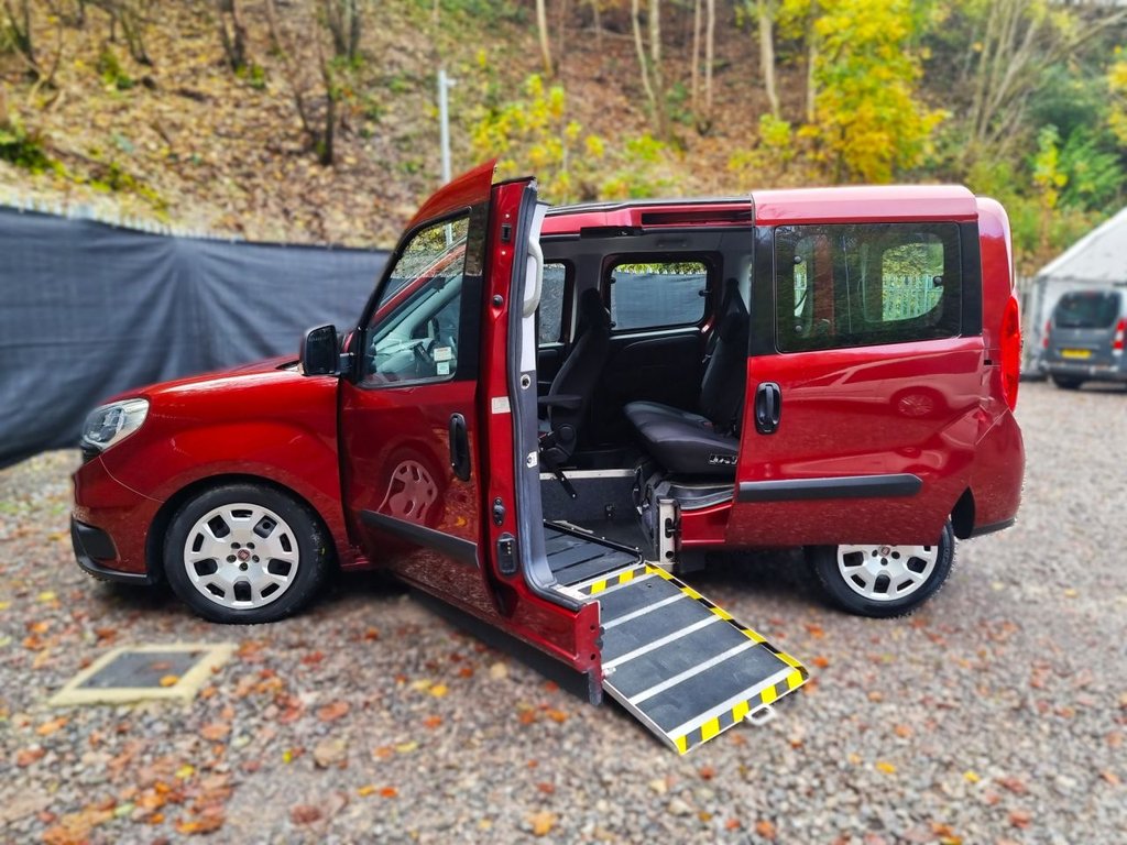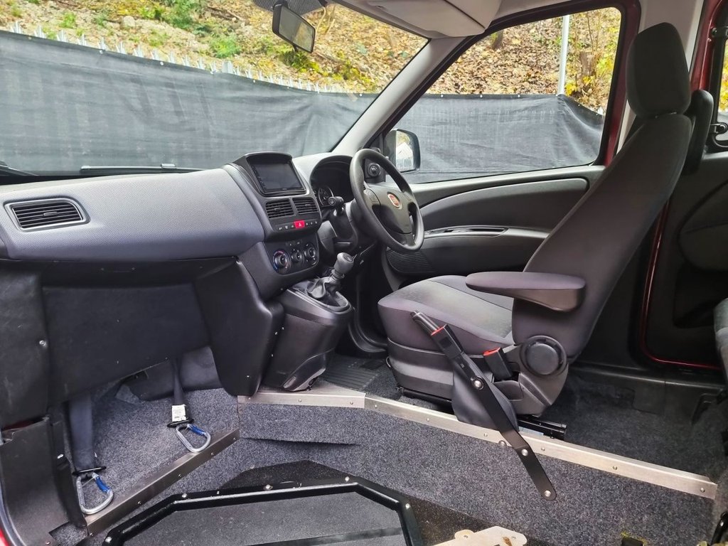This Wilson Healey converted Fiat Doblo Wheelchair Accessible Vehicle (WAV) has 4 Seats (1 Front and 3 Rear). Equipment includes Side Entry Wheelchair Ramp, Air Conditioning, Electric Front Windows, Electric Adjustable Wing Mirrors, Power Steering, Remote Central Locking, Tinted Rear Windows.