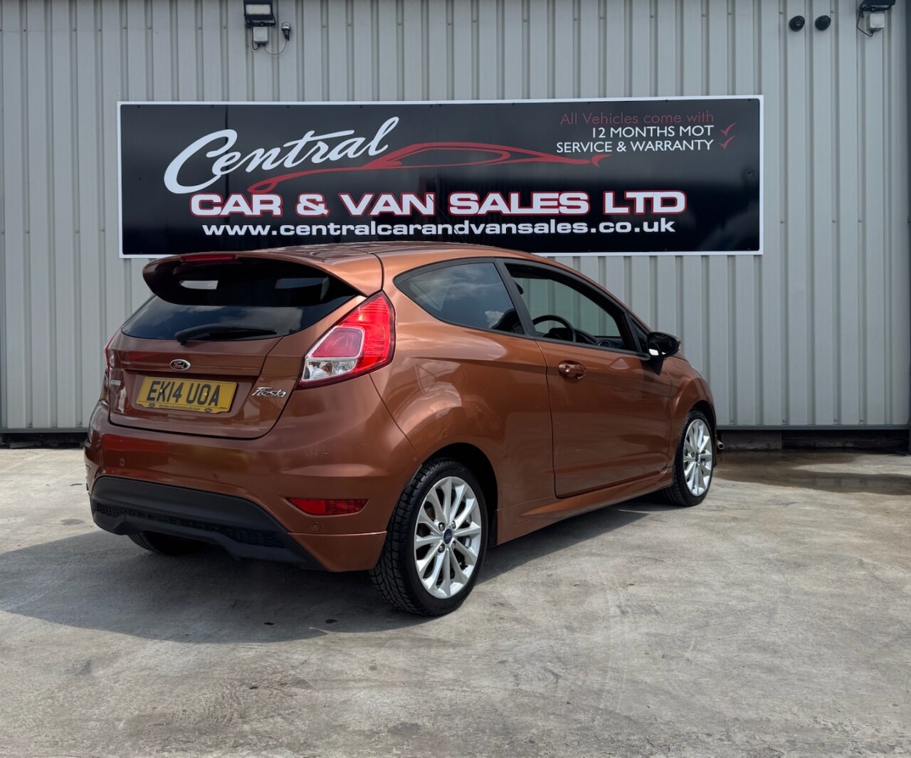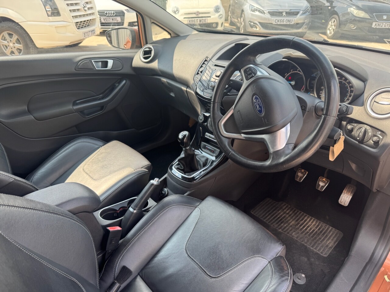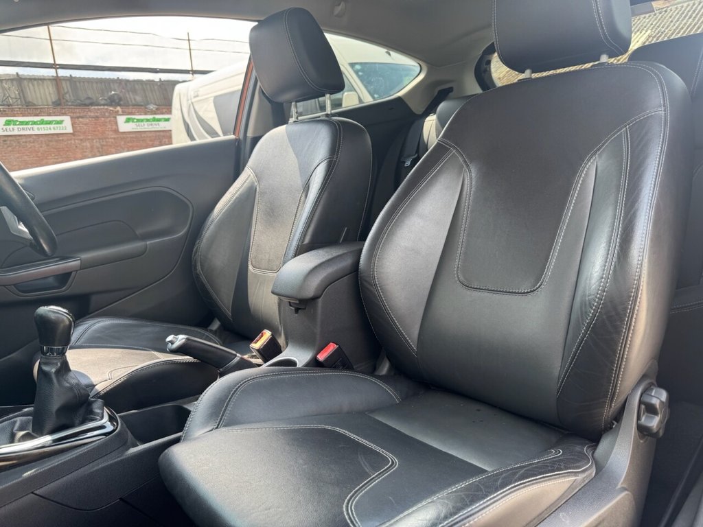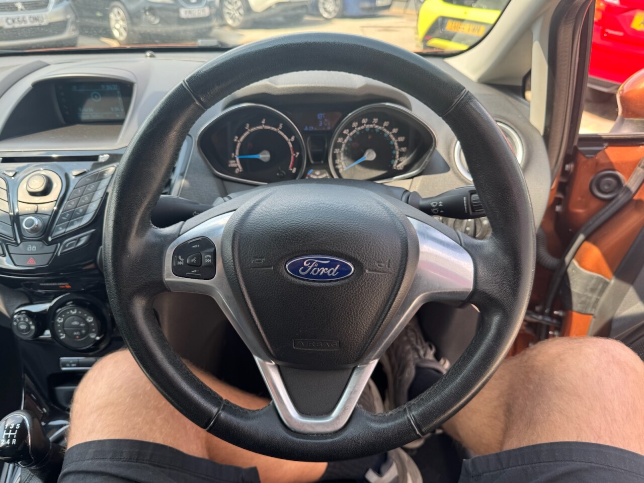 2014 Ford Fiesta 1.0 EcoBoost Zetec S 3dr petrol hatchback finished in a unique Copper pulse with 17" Alloy wheels. This cost is perfect for a first time driver or someone looking to keep the costs down as it only costs £20 for road tax falls into insurance Group 15E and the fuel economy returns 55MPG Urban, 74MPG Extra-urban and 65MPG Combined. It also comes with a host of extras including, Full leather trim, Front heated seats, Heated windscreen, Auto lights, Electric windows, A/C, Parking sensors, Bluetooth, USB & Aux connections and 12v outlet. The Fiesta will also come with a 12 month MOT & service carried out by us and a 3 month nationwide warranty.