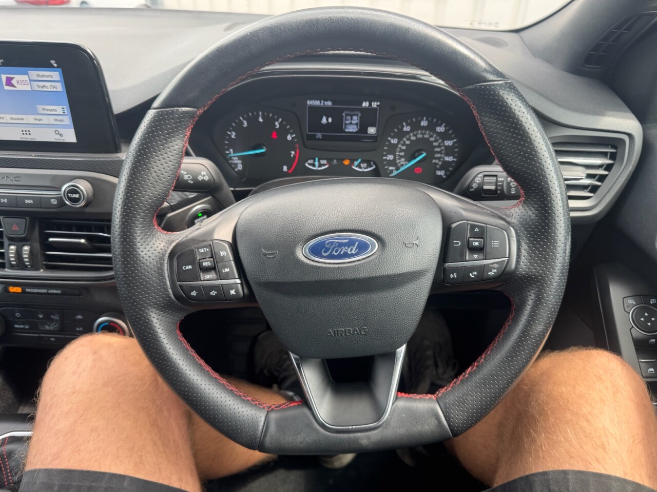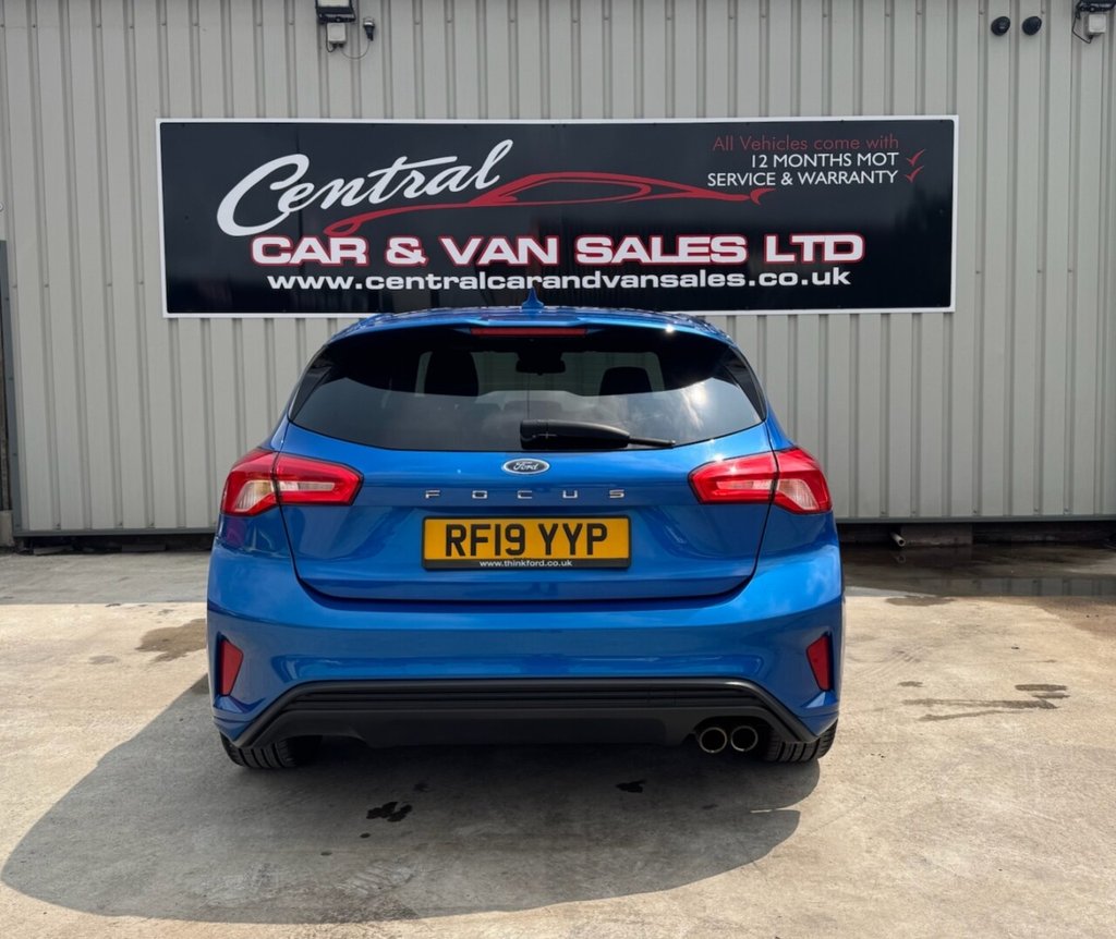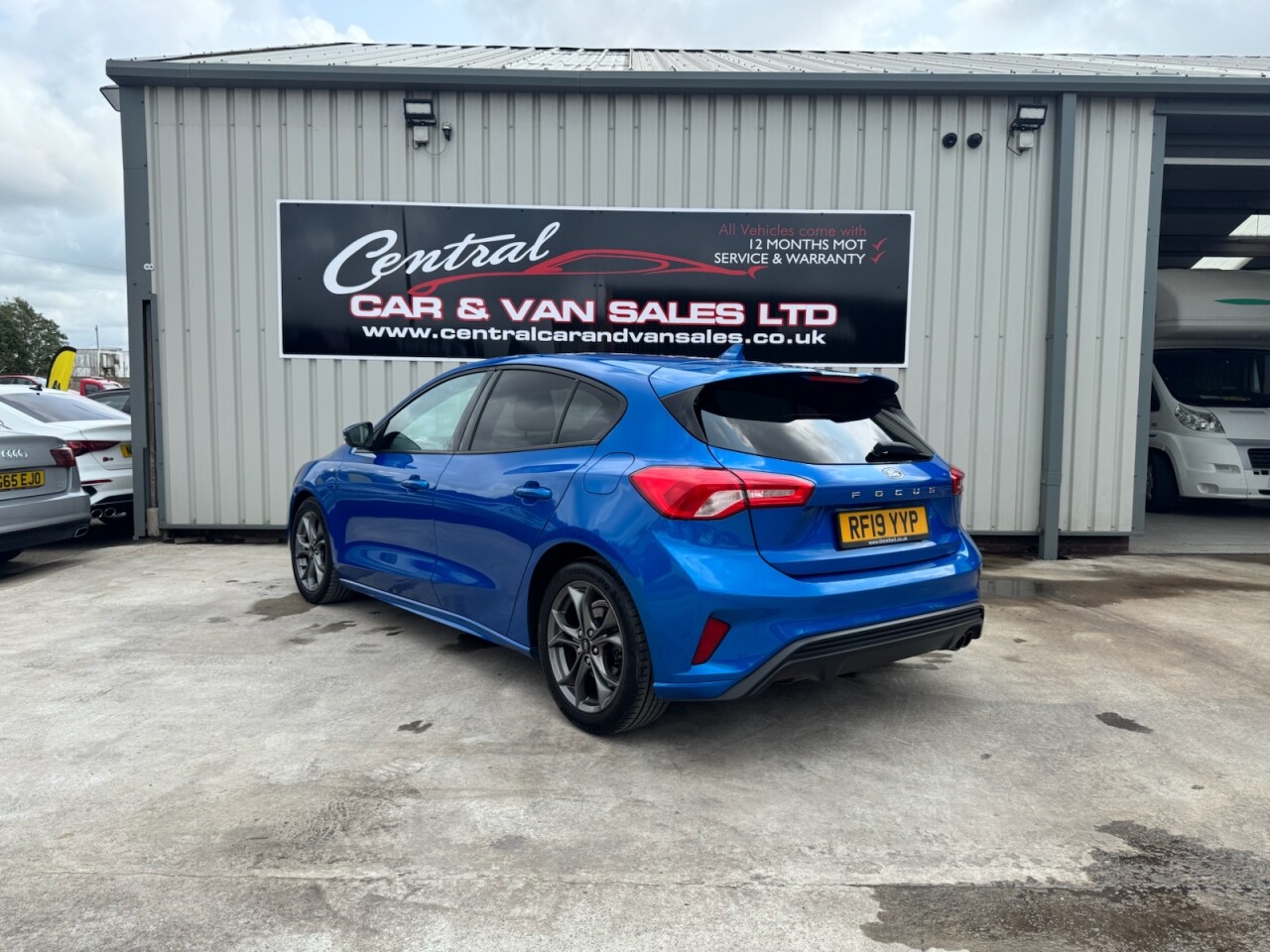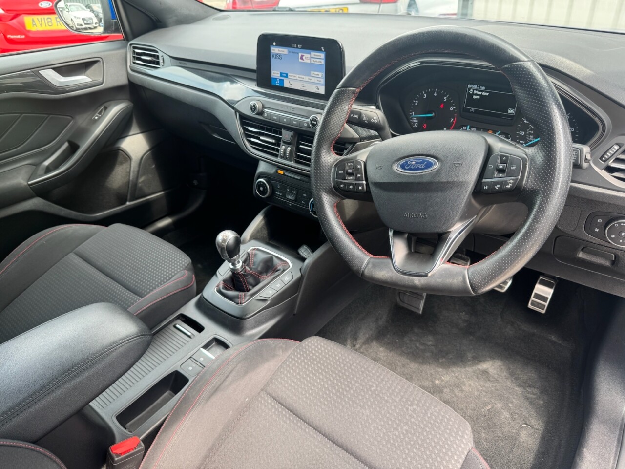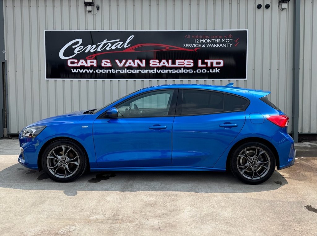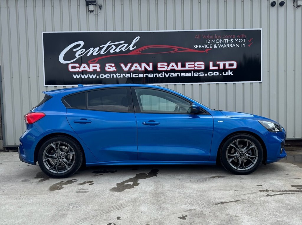 2019 Ford Focus 1.0 EcoBoost ST-Line 5Dr hatchback finished in a stunning Nitrous Blue with 17" Twin spoke alloy wheels, With 1 keeper from new coming with 2 keys and Full service history. Also coming with a good specification including, multifunctional steering wheel, Cruise control, Auto lights, Electric mirrors, Lane keeping system, Bluetooth, DAB radio, A/C, 6 speed manual, Stop/Start, Electric handbrake, Auto hold and Stainless steel ST line kick plates. The Focus costs £195 for road tax and is in insurance group 12E and the fuel economy returns 48MPG Urban, 69MPG Extra-Urban and 60MPG Combined. All round the car has been well looked after and maintained to the highest standard and comes with everything you need. We also provide all customers with a 12 month MOT and fresh service carried out by us and a 3 month nationwide Warranty for piece of mind.
