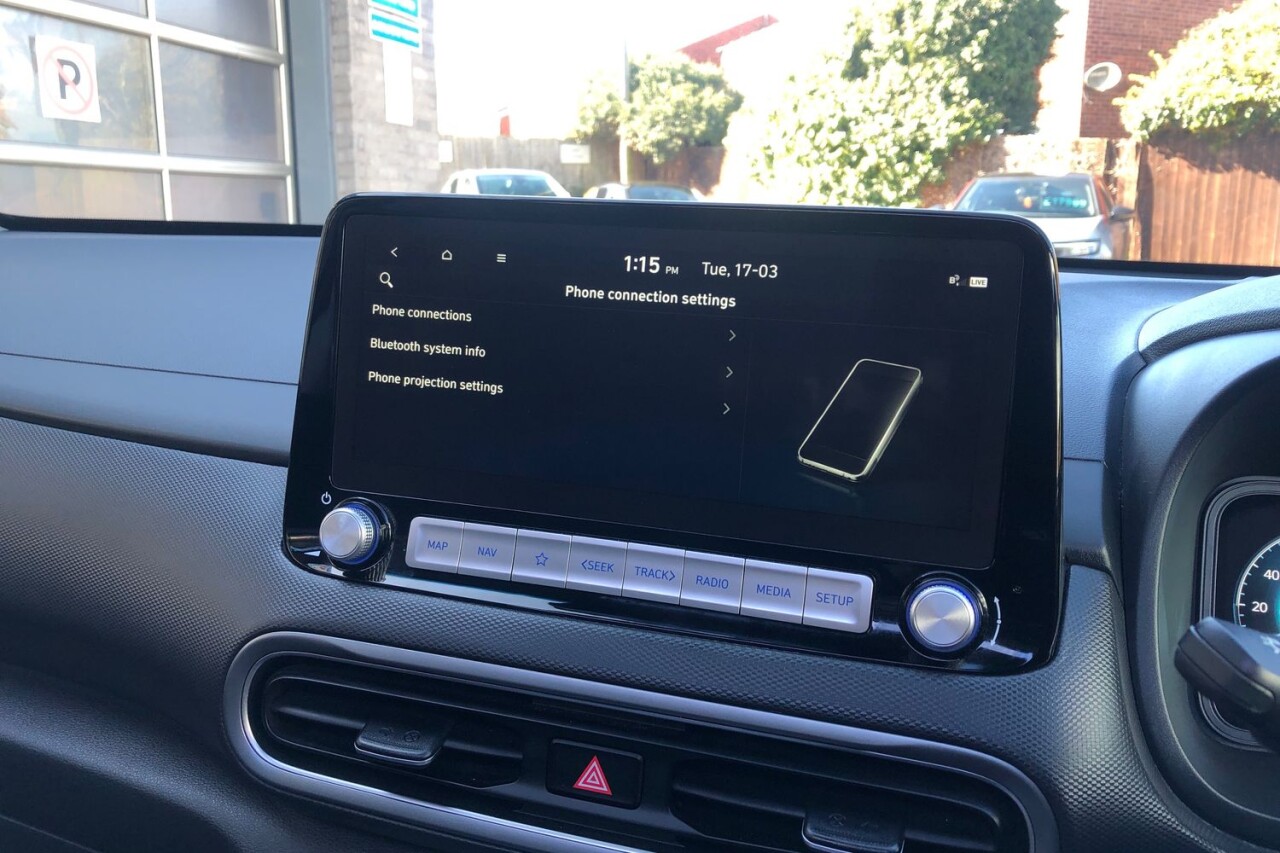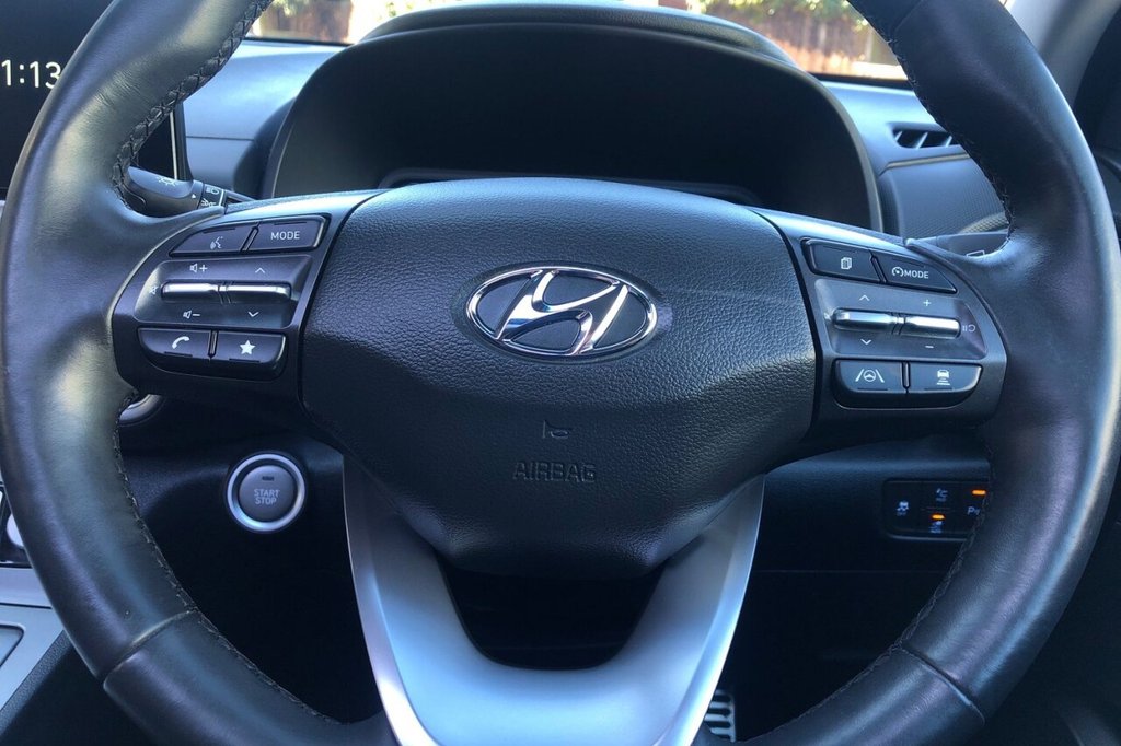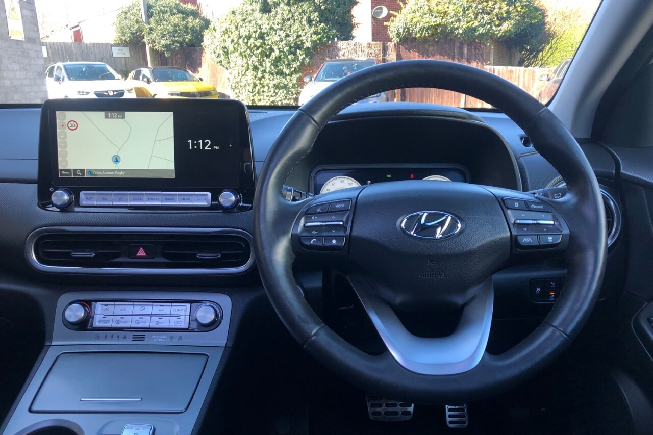 Boasting an MOT valid until March 2027 and a full dealership service history, this 2023 Hyundai KONA Ultimate Electric presents exceptional provenance. With only 15942 miles on the clock, this vehicle is remarkably low mileage for its age. It features a 68 kWh battery offering a maximum range of 300 miles when new, and comes equipped with parking sensors front and rear, climate control with automatic de fog, heated front seats, Android Auto connectivity, and automatic headlights with a dusk sensor. This Hyundai KONA Ultimate Electric is designed for convenience and comfort. You can fully charge the battery at home using a 7kW charger in approximately 10 hours and 16 minutes, or achieve an 80% charge from empty at a public charging station in just 53 minutes. The low mileage and comprehensive service history indicate a well maintained vehicle, setting it apart from others. Its impressive battery range of 300 miles when new means you can travel further between charges, making it an excellent choice for both daily commutes and longer journeys. The vehicle history check is clear, providing further peace of mind.
