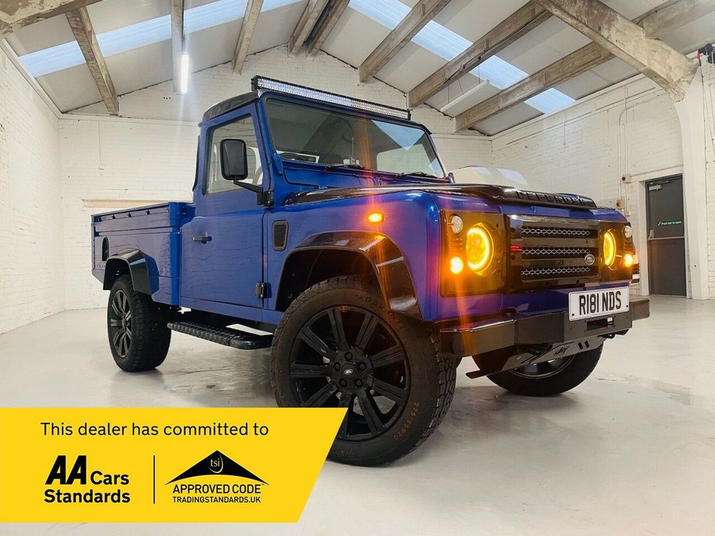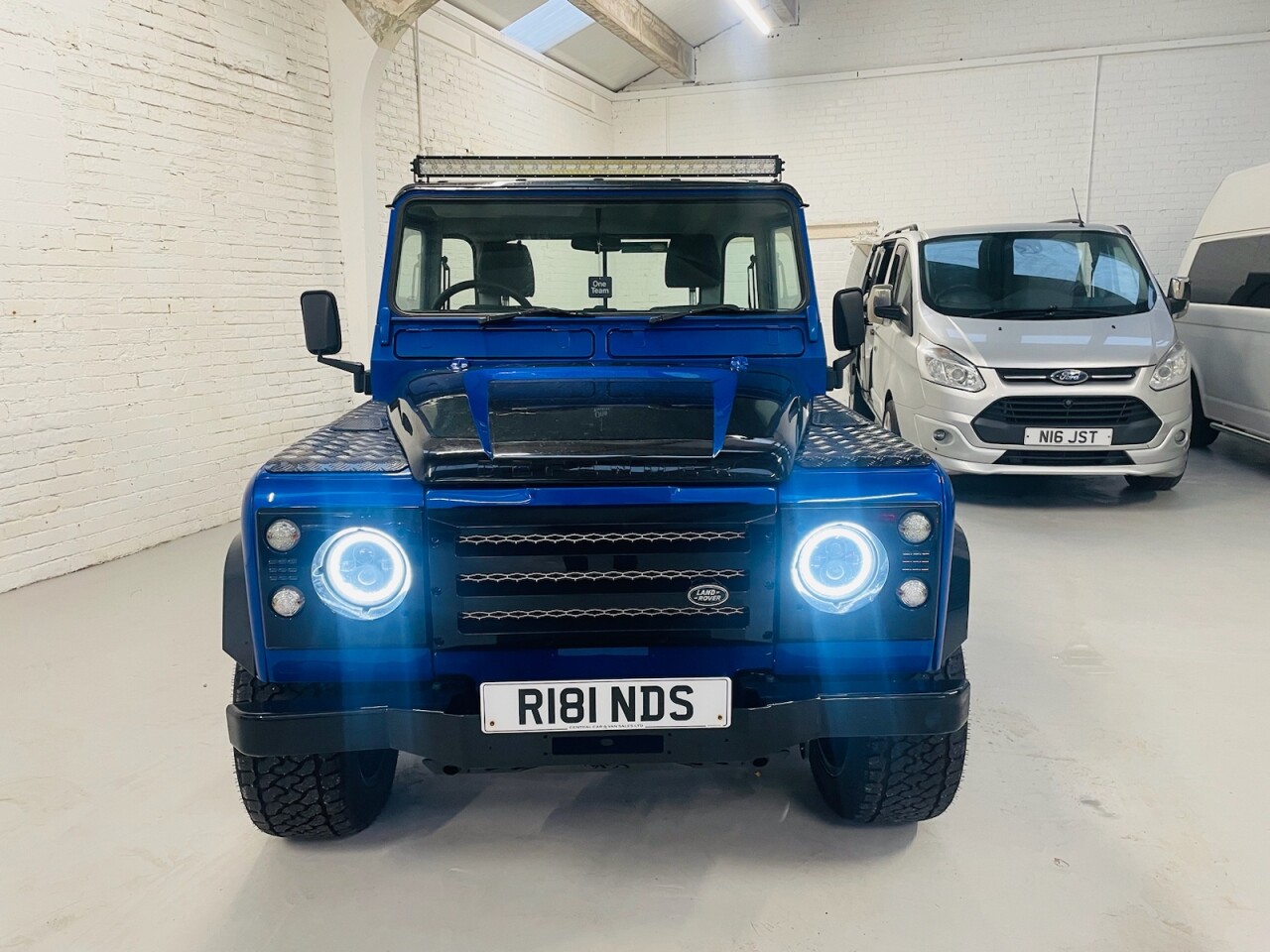 Here we have a January 1998 Land Rover Defender 110 High Capacity presented in gleaming metallic blue with gloss black arches, roof & bonnet, This vehicle really stands out from the crowd and is a no expense spared custom model. The Defender is a really eye catching example with LED front & rear lights, angel eye projector headlights, side steps, extended wheel arches, clear side repeaters, winch bumper, tow bar , LED light bar, 20" Range Rover alloy wheels with brand new 275/55/20 DAVANTI tires, facelift light surrounds, headlining, The vehicle has covered 117k miles from new and has had the same owner from br4and new and so shows 0 former keepers. The engine is the more reliable 300 TDI the Land Rover starts first time every time with no issues, This is a really nice tidy example that turns heads anywhere it goes we can accept part exchange. FREE DELIVERY SUBJECT TO T&C'S
