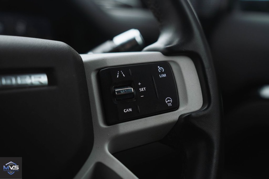 Customer Configurable Autolock, 360 parking aid, 3D Surround Camera with 360 View, 180 Rear View, Front Traffic Detection, Forward Vehicle Guidance, Tow Hitch Assist and clear sight Ground View, 40:20:40 fixed rear seats, 8 way heated semi powered front seats with manual headrest, ABS and EBA, Alpine lights, Android Auto, Apple CarPlay, Assisted tailgate, Brake Hold, Brake pad wear indicator, Cabin lighting, Carpet mats, CBC - (Cornering brake control), Centre high mounted stop light, Coil suspension system, DAB Radio (Digital Audio Broadcasting), Driver condition monitor, Dual zone climate control, Durable rubber cabin flooring, Dynamic stability control, Electric heated/power fold door mirrors with approach lights and auto dimming driver side, Electric power assisted steering (EPAS), Electric windows with one touch open/close and anti-trap, Electronic park brake, Electronic traction control, Emergency braking, Exterior signage panel, Fabric upholstery, Follow me home lighting, Footwell lights, Front airbags, with passenger seat occupant detector, Glovebox storage, Gradient acceleration control, Heated rear window with timer, High sided rubber mats, Hill Descent Control, Hill start assist, Intrusion sensor, Lane keep assist, LED tail light, Less wireless charger, Loadspace hooks, Loadspace rubber mat, Locking wheel nuts, Low traction launch, Manual adjustable steering column, Online pack - Defender with data plan, Overhead stowage for sunglasses, Particulate filter (DPF), Pivi pro connected, Power operated child locks, Privacy glass, Puddle lights, Push button start, Rain sensing wipers, Rear centre headrest, Rear fog lights, Rear reading light, Rear wash wiper, Remote for (e-Call,Optimised assistance call,InControl app,Climate,beep and flash and door), Roll stability control, Seat belt reminder, Side-hinged tailgate, Sound system with 140W and 4 speakers, Standard roof, Standard tread plates, Sunvisors with illuminated vanity mirrors, Traffic sign recognition adaptive speed limiter, Trailer stability assist, Trip computer, Twin front cupholders, Tyre pressure monitor, Wade Sensing