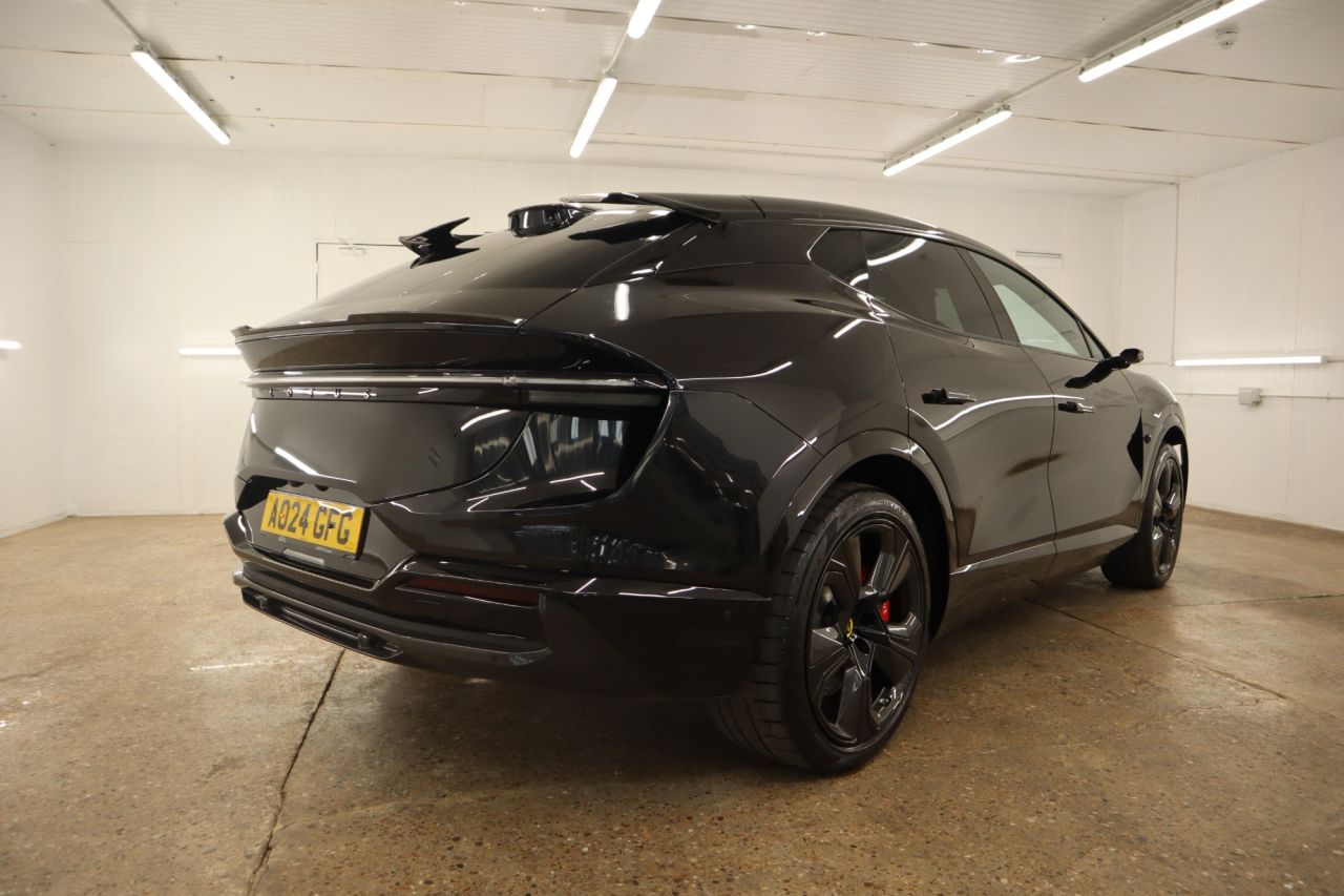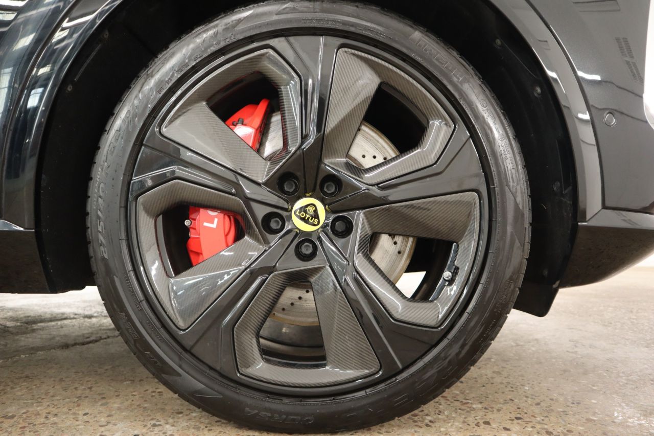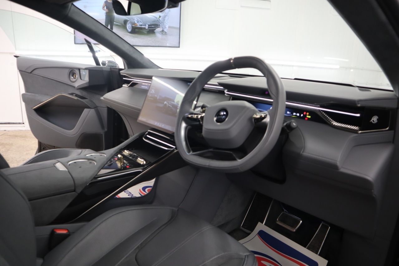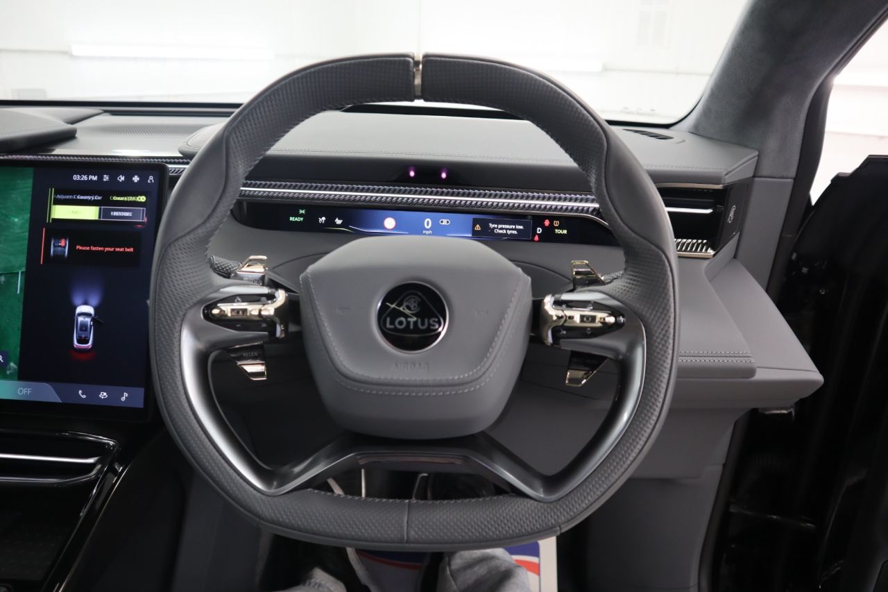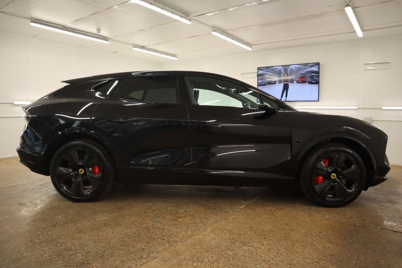 This 2024 Lotus Eletre R in Black Lotus finished in Stella Black with contrasting Grey Leather and Alcantara Sport Ricaro trim with double grey stitching presents an exceptional opportunity with its remarkably low mileage of just 3258 miles. As an all electric, four wheel drive SUV, this R trim model boasts a substantial 112 kWh battery offering a maximum range of 279 miles. Charging at home with a 7kW charger will take approximately 16 hours and 40 minutes, while rapid public charging can replenish the battery from empty to 80% in a swift 22 minutes. This capable vehicle also has a towing weight of 2250 kg. The Eletre R is equipped with advanced technology to enhance your driving experience. Notable features include Blind Spot Detection with Blind Spot Assistance, a Heads Up Display, and Matrix LED Headlights for superior visibility. Intelligent Adaptive Cruise Control with ACC ensures effortless journeys, and Ultra HD Cameras, including front and rear parking assistance, provide comprehensive awareness. Performance is a key highlight, with an impressive 0-60mph acceleration time of just 3.0 seconds, demonstrating its superior capability compared to other vehicles in its class. Factory options include Panoramic Full Length Sunroof with Electric Tinting and Blackout, Camera Side Door Mirrors, Cameras All Round, Black Sport Gloss Alloy Wheels, Electric Boot Opening and Closing, Piano Wood Pack to Central Dashboard, Drive Modes include Sport Individual Track and Off-road and Range, Touch Centre Control, Apple Car Play, Bluetooth Telephone, Media Pack, All Round Parking System, Android Auto, Multifunction Leather and Brushed Aluminium Steering Wheel, Electric Opening Doors, Carbon Fibre Pack, Full Length Digital Dashboard, Twin USB Docs, Rear Electric Seats, Electric Lumber Support, Easy Exit and Entry System, Voice Command, SOS, Illuminated Vanity Mirrors, Cup Holders, Protection Mats, Rear Heating Control, Seat Controls and Music Control, LED Interior Light Pack, Rear Boot Spoiler, Load Cover, Easy Load Suspension System, LED Daytime Driving Lights Absolutely fantastic condition comes with two key cards.
