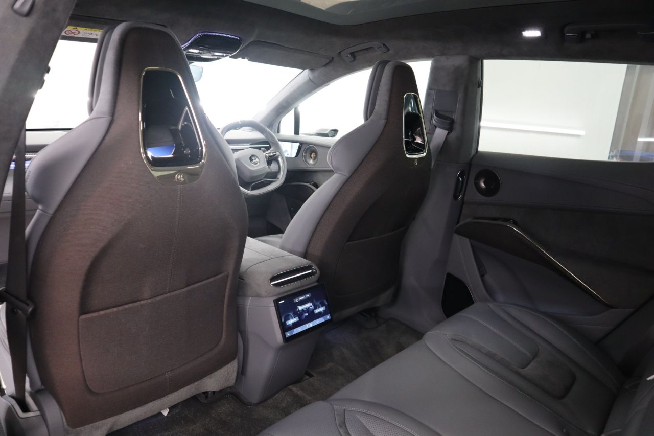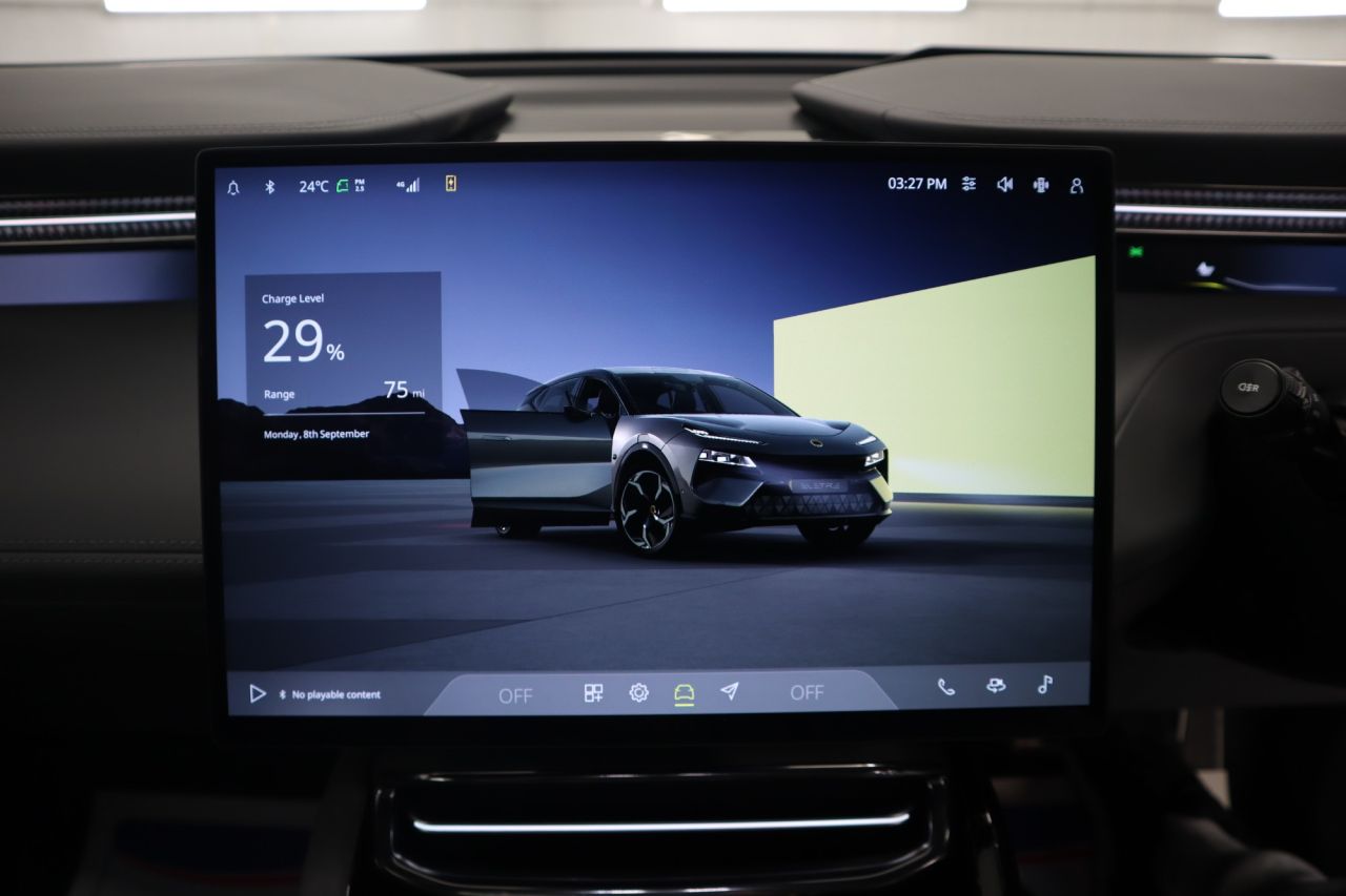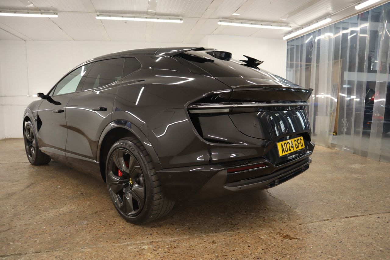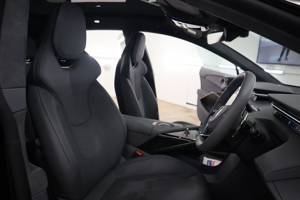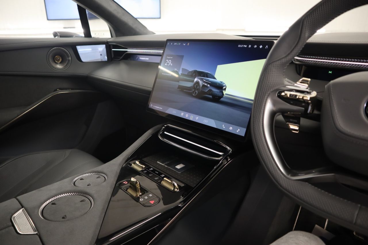This 2024 Lotus Eletre R in Black Lotus finished in Stella Black with contrasting Grey Leather and Alcantara Sport Ricaro trim with double grey stitching presents an exceptional opportunity with its remarkably low mileage of just 3258 miles. As an all electric, four wheel drive SUV, this R trim model boasts a substantial 112 kWh battery offering a maximum range of 279 miles. Charging at home with a 7kW charger will take approximately 16 hours and 40 minutes, while rapid public charging can replenish the battery from empty to 80% in a swift 22 minutes. This capable vehicle also has a towing weight of 2250 kg. The Eletre R is equipped with advanced technology to enhance your driving experience. Notable features include Blind Spot Detection with Blind Spot Assistance, a Heads Up Display, and Matrix LED Headlights for superior visibility. Intelligent Adaptive Cruise Control with ACC ensures effortless journeys, and Ultra HD Cameras, including front and rear parking assistance, provide comprehensive awareness. Performance is a key highlight, with an impressive 0-60mph acceleration time of just 3.0 seconds, demonstrating its superior capability compared to other vehicles in its class. Factory options include Panoramic Full Length Sunroof with Electric Tinting and Blackout, Camera Side Door Mirrors, Cameras All Round, Black Sport Gloss Alloy Wheels, Electric Boot Opening and Closing, Piano Wood Pack to Central Dashboard, Drive Modes include Sport Individual Track and Off-road and Range, Touch Centre Control, Apple Car Play, Bluetooth Telephone, Media Pack, All Round Parking System, Android Auto, Multifunction Leather and Brushed Aluminium Steering Wheel, Electric Opening Doors, Carbon Fibre Pack, Full Length Digital Dashboard, Twin USB Docs, Rear Electric Seats, Electric Lumber Support, Easy Exit and Entry System, Voice Command, SOS, Illuminated Vanity Mirrors, Cup Holders, Protection Mats, Rear Heating Control, Seat Controls and Music Control, LED Interior Light Pack, Rear Boot Spoiler, Load Cover, Easy Load Suspension System, LED Daytime Driving Lights Absolutely fantastic condition comes with two key cards.