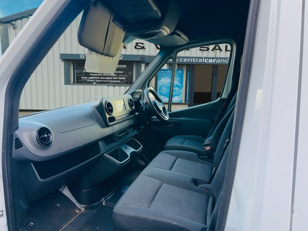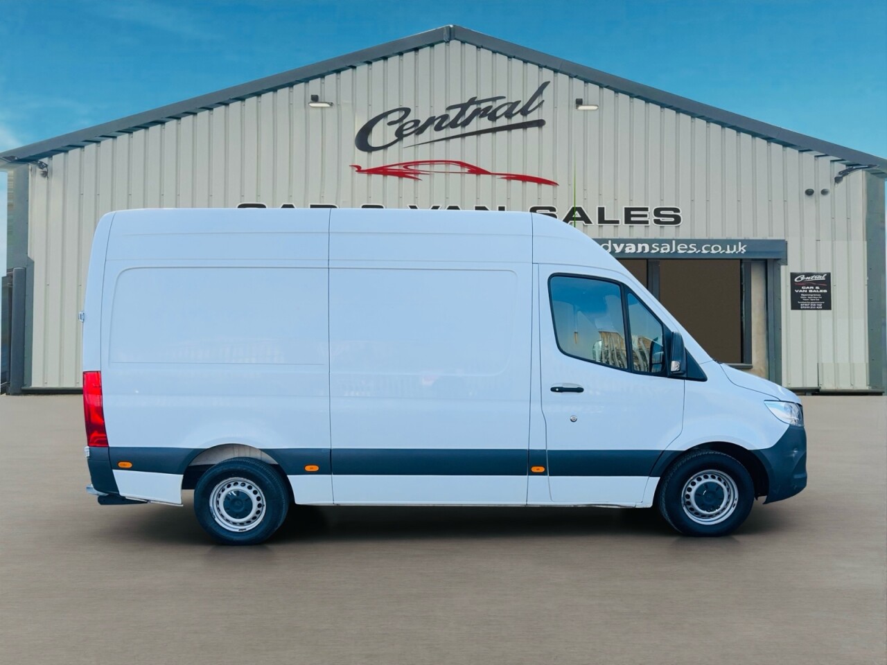 Here we have another fantastic used vehicle from Central Car & Van Sales LTD of Morecambe. Here we have a stunning April 2021 Mercedes-Benz Sprinter 315 Progressive CDI 35T RWD L2H2 MWB in white. This van has an automatic transmission and is fantastic to drive. The van has covered just 106k miles from new with service history and 1 previous owner, The Sprinter is in fantastic condition throughout inside & out and is a real pleasure to drive, the automatic transmission is operated via a Colum shift so there is more room indie the cab, the cab is a 3 seater and the rear load space is ply lined and there are shelves fitted that can be removed easily if desired. The van is ULEZ COMPLIANT and performs well with 147bhp, road tax is just £335 for 12 months and the van is i9nsurance group 42E being the economical model the van is very efficient on fuel and very reliable. The Mercedes comes with a high specification which includes power steering, multi function steering wheel, cruise control, auto lights, Android connect, electric windows, drivers armrest, remote central locking, keyless go, auxiliary heating, big screen media centre, 3 seats, side loading door, 270 rear doors, airbags, steel wheels This is a fantastic van in excellent condition throughout and a rare automatic!