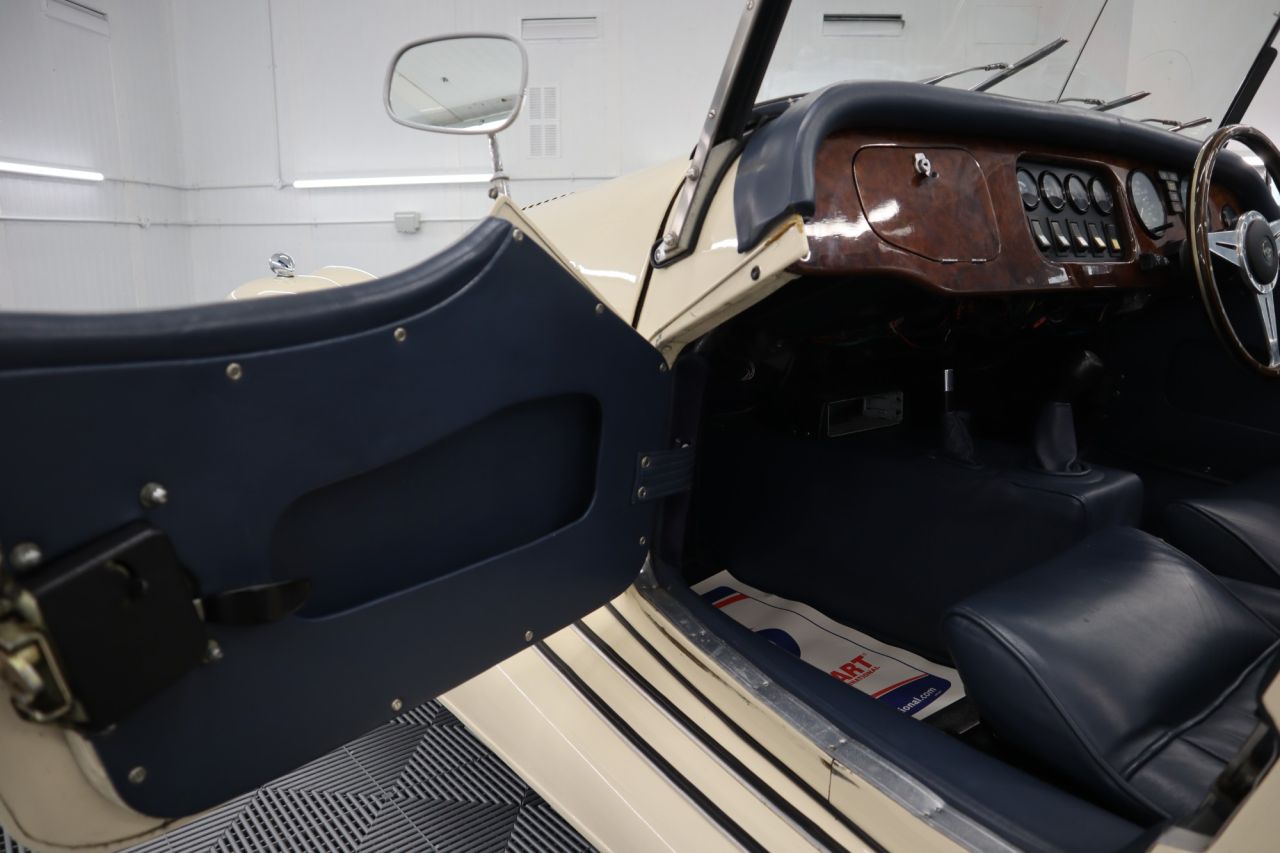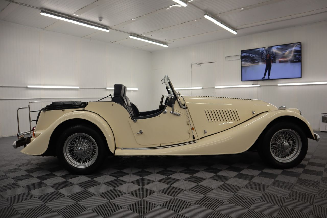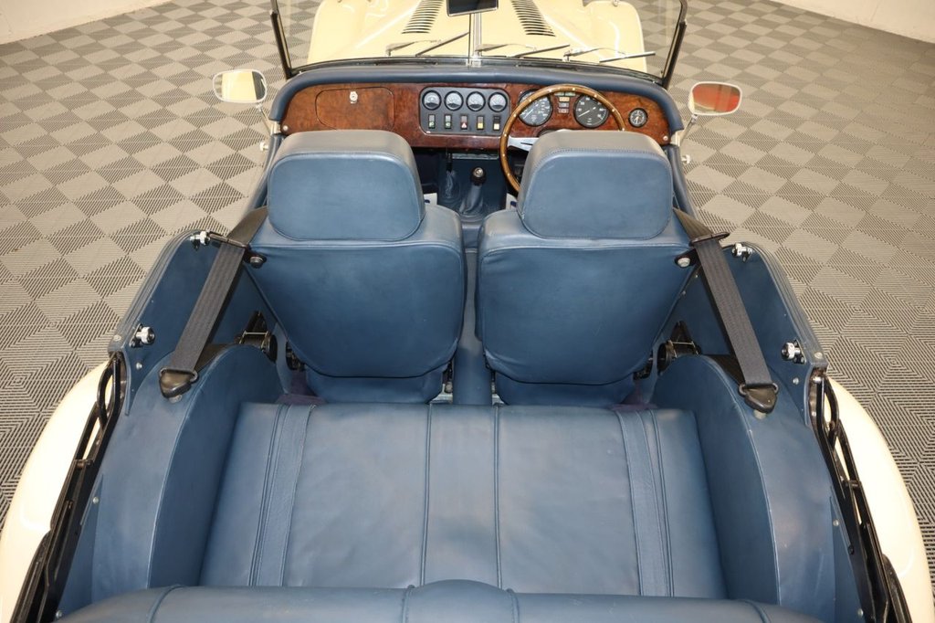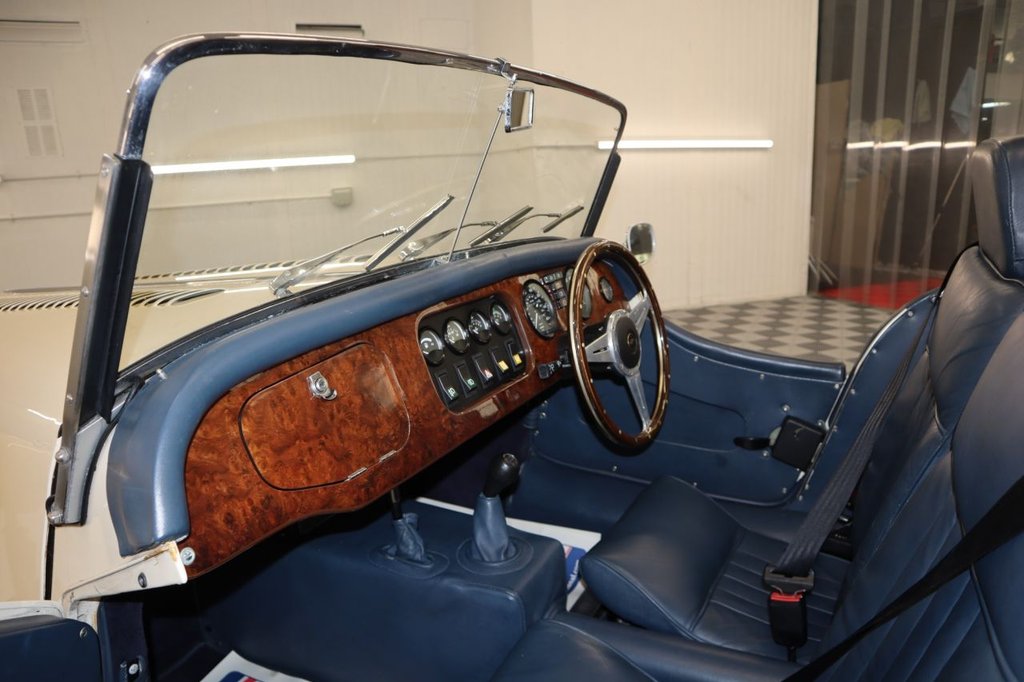 we have just acquired this stunning Morgan +4 finished in Ivory page with contrasting blue leather trim four seats covered only 25,913 miles. This vehicle is for sale due to the owners passing it was part of his extensive collection the vehicle is finished in Ivory with Blue Leather trim, Sports Wire Alloy Wheels, Full Chrome Grill with Twin Spotlights, Rear Chrome Luggage Rack, Brushed Chrome Front and Rear Bumpers, Chrome Filler Cap, Chrome Wing Mirrors, Wooden Steering Wheel with Chrome Centre, Leather Bound Carpets, Chrome Wiper Pack, Chrome Interior Rear View Mirror. Fitted with the Rover Twin Cam Engine with Size Speed Gearbox, Fantastic value and appreciating asset.