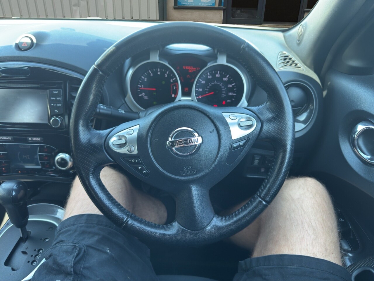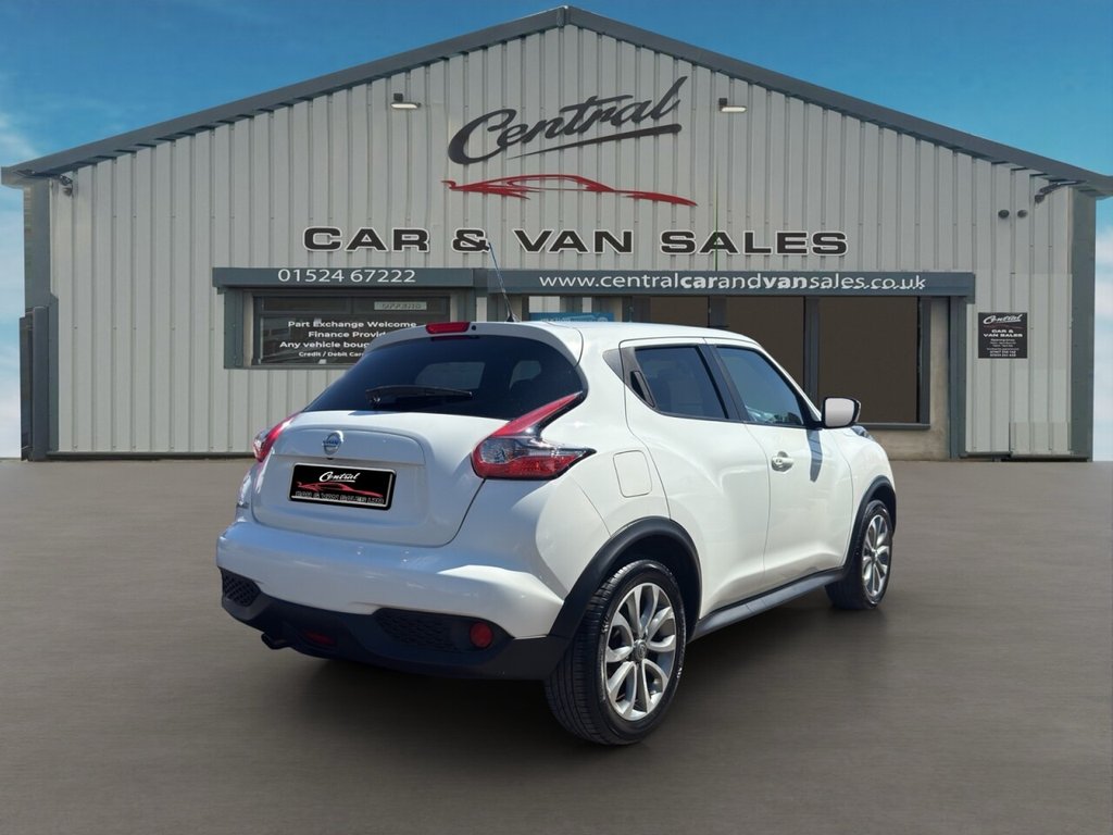 2014 Nissan juke 1.6 DIG-T Acenta Premium SUV 5dr Petrol XTRON 4WD finished in Artic white this low milage automatic has only covered 53k miles from with part service history coming with Multifunctional steering wheel, Cruise control, Electric and power fold mirrors, Reverse camera, 17" Alloy wheels and Two-Wheel and Four-wheel drive option. The Juke costs £265 for 12 Months road tax, and in insurance group 20E returning 31MPG Urban, 50MPG Extra-Urban and 41MPG Combined. The car will come with 12 Month MOT, 3 Month warranty and a fresh service at the point of sale.