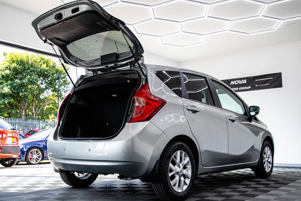 The 2016 Nissan Note Acenta Premium is a smart and practical hatchback that's perfect for everyday use. Powered by a reliable 1.2 petrol engine with 80PS, it's economical to run yet smooth and easy to drive. Inside, you get plenty of features for comfort and convenience, including climate control, Bluetooth, a 5.8" NissanConnect touchscreen with sat nav and DAB radio, sliding rear seats, and a clever Flexi-Board boot storage system. The cabin feels modern with its gloss black centre console, leather steering wheel, and steering wheel-mounted controls, while practicality shines through with split-folding rear seats and plenty of storage. On the outside, the 15" alloys, privacy glass, and glossy black grille give it a stylish edge, while features like auto headlights, rain-sensing wipers, and heated mirrors make life easier. Safety is well covered too, with ESP, cruise control with speed limiter, ISOFIX, multiple airbags, and tyre pressure monitoring.