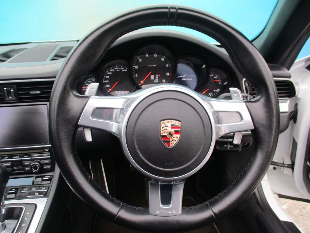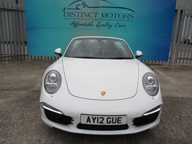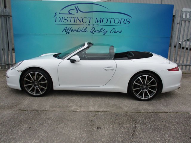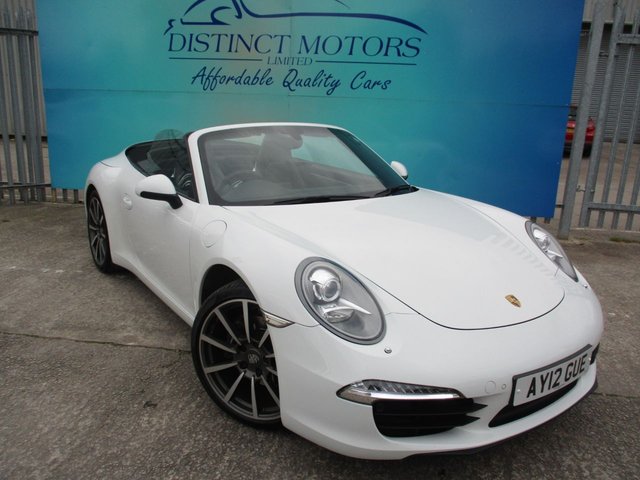 A WONDERFUL EXAMPLE RARE PORSCHE 911 CARRERA CONVERTIBLE AUTO (991 EDITION FIRST OF THE NEW SHAPE) FINISHED IN METALLIC WHITE WITH FULL BLACK HEATED LEATHER INTERIOR SUPPLIED WITH PORSCHE MAIN AGENT SERVICE HISTORY UNTIL 07/2020, FULL PORSCHE SERVICE HISTORY DONE AT 17K, 33K AND 39K MILES, ONLY 1 FORMER OWNER, LONG MOT UNTIL 08/20, 2 KEYS, FULLY HPI CLEAR WITH FULLY VERIFIED MILEAGE CHECKS COMPLETED FOR ADDED PEACE OF MIND. BOTH THE INTERIOR AND EXTERIOR CLEARLY WELL APPRECIATED AND MAINTAINED WITH GREAT SPECIFICATION INCLUDING 20" ALLOY WHEELS, SAT-NAV, FULL HEATED BLACK LEATHER INTERIOR, PARKING SENSORS, CRUISE CONTROL, DAY-TIME RUNNING LED LIGHTS, BOSE STEREO SYSTEM AND MUCH MORE!