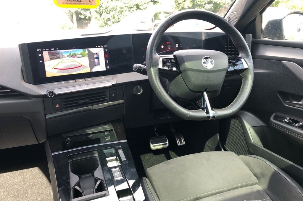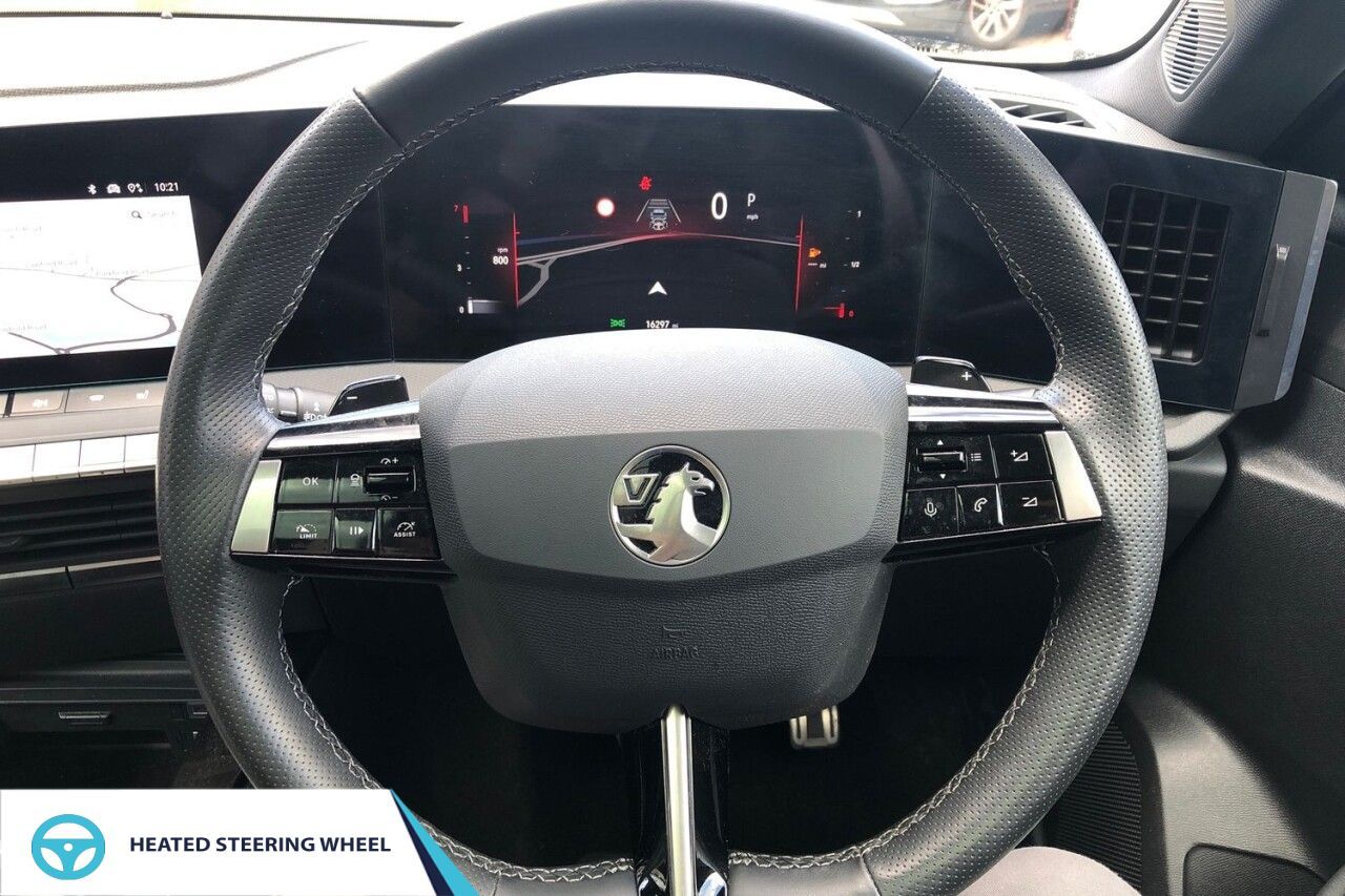 This 2024 Vauxhall Astra Turbo Ultimate is a Vauxhall manufacturer approved vehicle with a clear vehicle history check and only one owner from new. It boasts a full dealership service history, with the last service completed on 17TH July 25 at 16227 miles, and its MOT is valid until May 2027. This Euro 6 compliant model is powered by an efficient 1.2L petrol engine and features an electrically operated tilt and slide sunroof with a blind, AGR approved ergonomic active heated sports front seats, dual zone electronic climate control, and a flat bottom, heated, perforated leather covered steering wheel. Experience the responsive performance of this Astra, accelerating from 0 to 60mph in just 9.7 seconds, a figure that highlights its capability compared to similar vehicles. Keyless entry and start add to the convenience, making this Vauxhall Astra Turbo Ultimate a well maintained and feature rich choice.