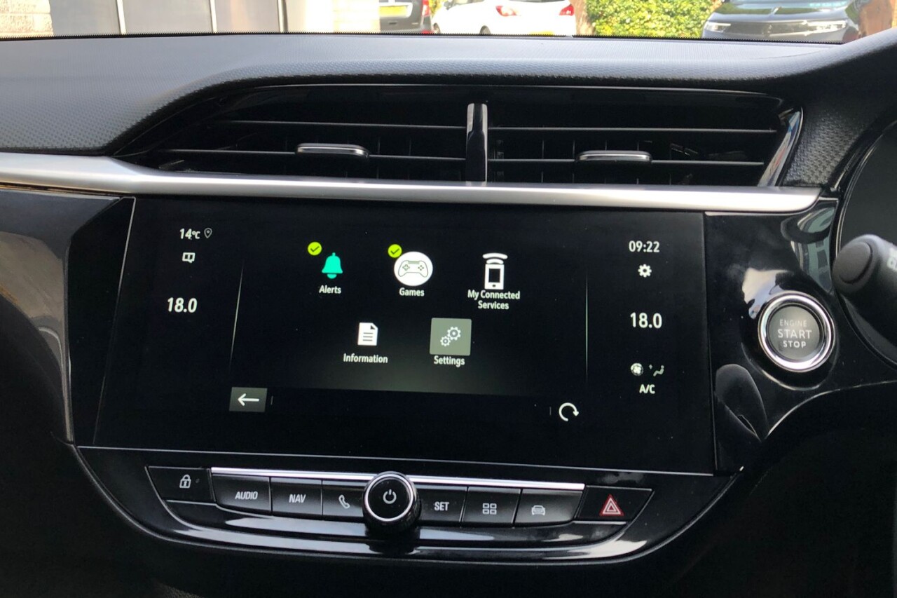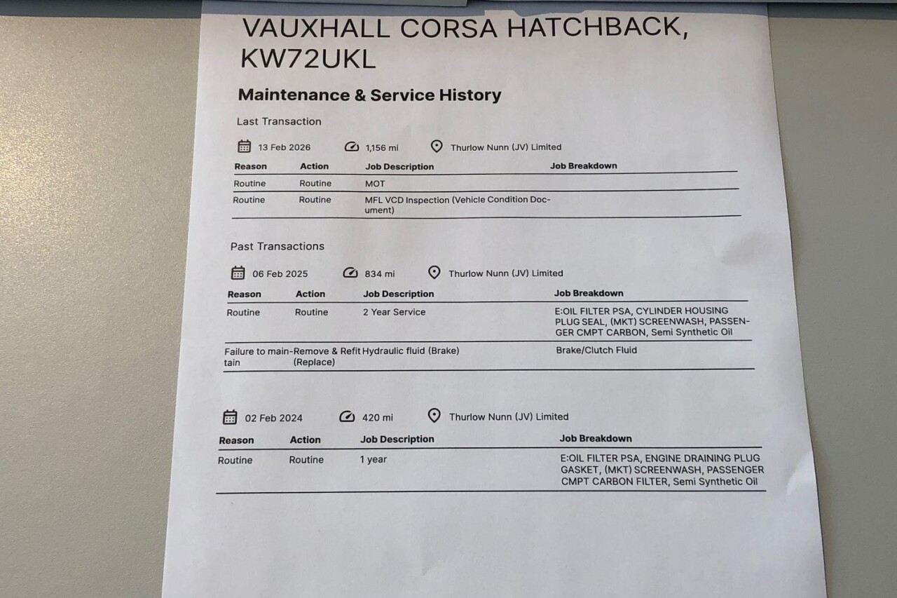 Boasting exceptionally low mileage for a 2023 model, this Vauxhall Corsa Turbo Ultimate presents a superb opportunity with only one owner and a full dealership service history. This Euro 6 compliant 1.2L petrol engine Corsa, finished in the Ultimate trim, comes with a clear vehicle history check and a warranty for your peace of mind, alongside an MOT valid until February 2027. Inside, you'll find a wealth of technology and comfort, including a Panoramic Rear View Camera with parking assistance, the Multimedia Navi Pro System with Android Auto and Apple CarPlay, and heated comfort front seats. Automatic lighting control and a front camera system further enhance the driving experience. Experience impressive performance with a 0-60mph acceleration of just 8.2 seconds, all while benefiting from excellent fuel economy of 54 mpg and low CO2 emissions, making this Corsa a more economical choice than many comparable vehicles. This combination of efficiency, advanced features, and outstanding provenance makes this Vauxhall Corsa Turbo Ultimate a truly stand out option.