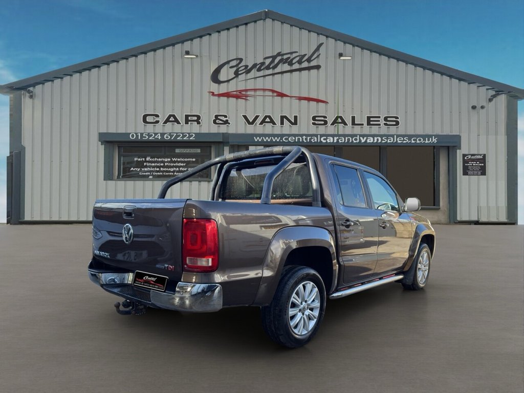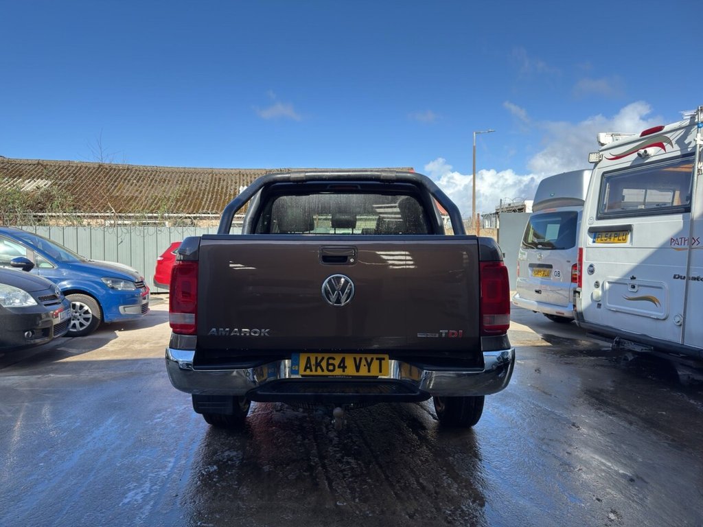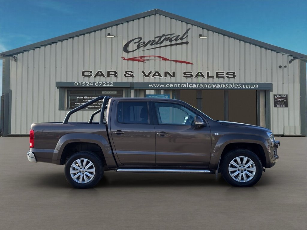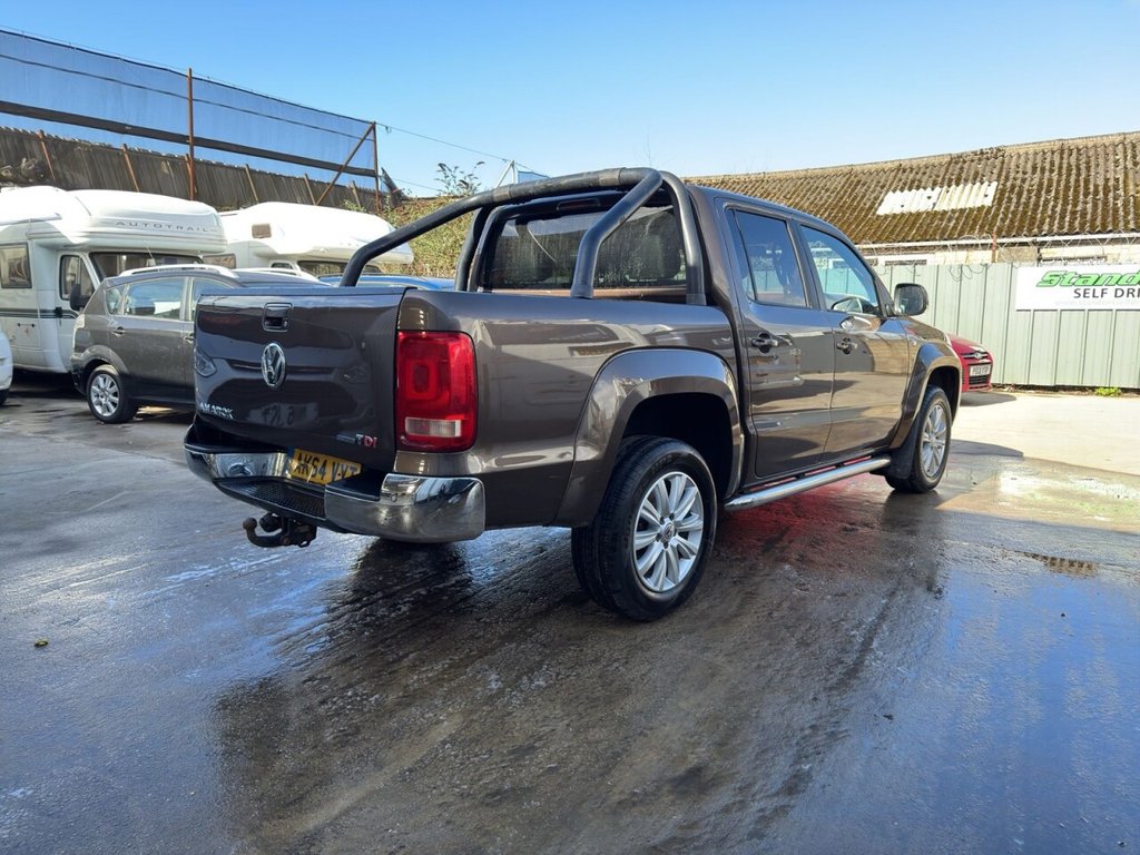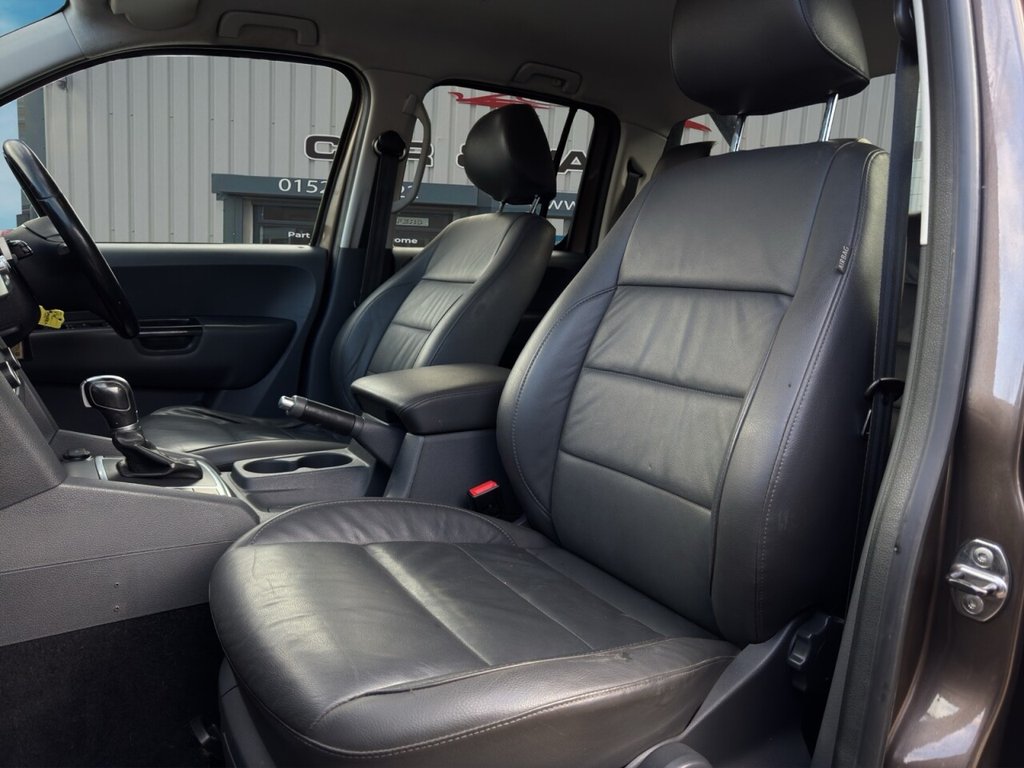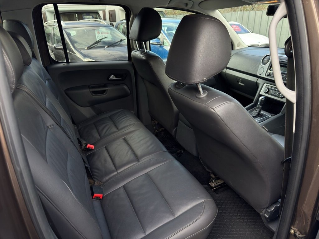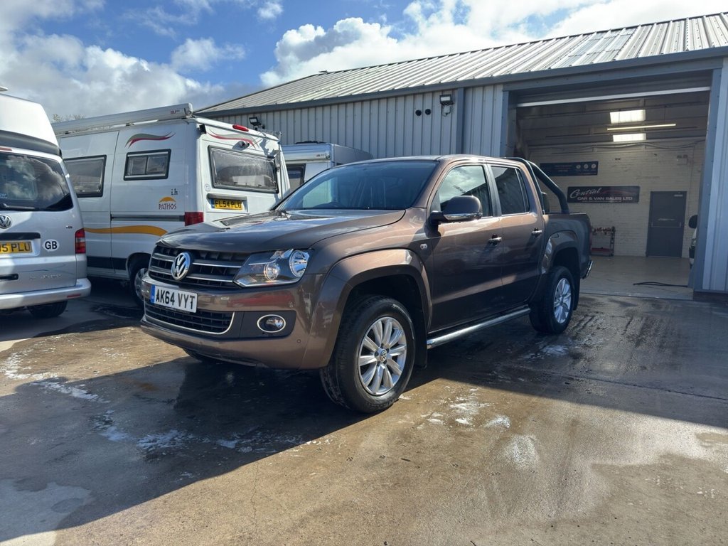 December 2014 Volkswagen Amarok 2.0 BITDI BlueMotion Tech Highline Double Cab finished in gleaming metallic Toffee brown with full dark leather trim. This example has covered just 73700 miles from new with 5 recorded services, The Pickup will be serviced again for the sale along with a 12 MONTHS MOT AND A EXTENDABLE WARRANTY The car has had 1 previous owner who has kept the vehicle in good condition throughout. The Amarok comes with rear roll bars, rear load light, 18" alloy wheels, full leather trim, x4 electric windows, electric door mirrors, passengers airbag, front & rear parking sensors, heated seats, traction control, air conditioning, parrot kit, centre armrest, ISOFIX, 12V X3, Adjustable steering Colum, rubber mats, privacy glass, TOWBAR This is a fantastic looking truck in very good condition tow up to 3200KG