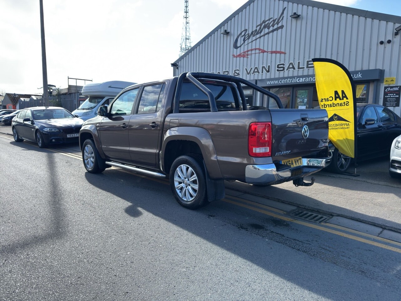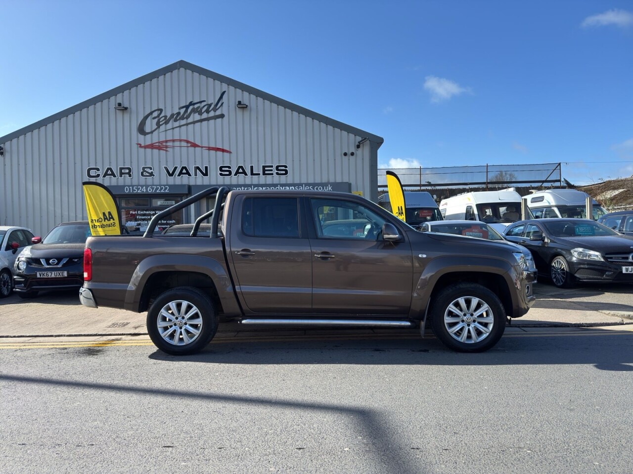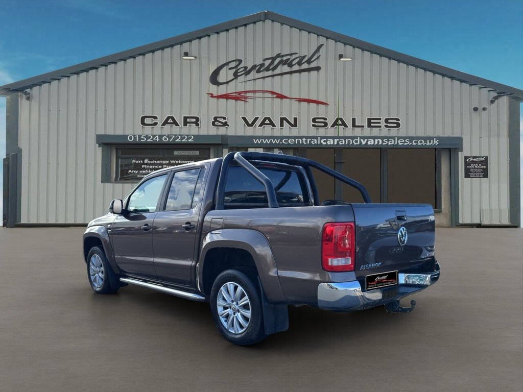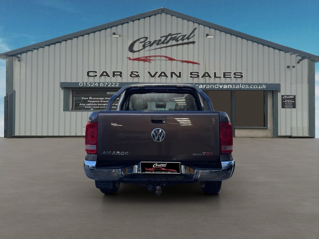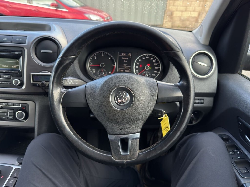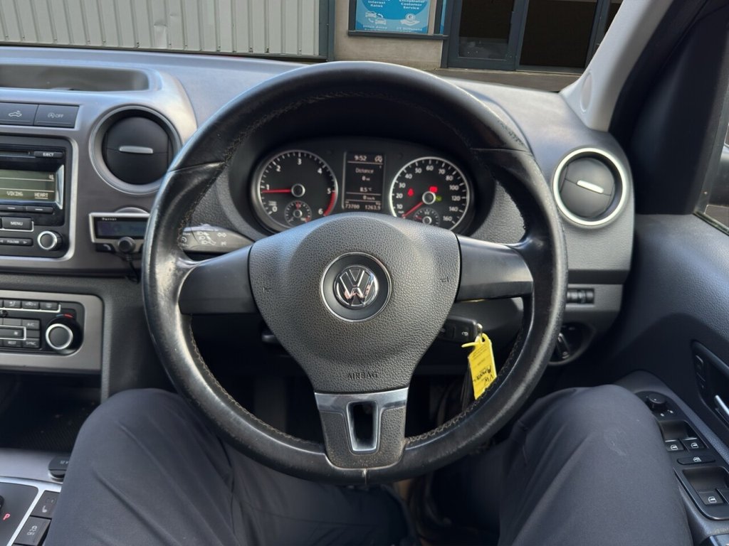 December 2014 Volkswagen Amarok 2.0 BITDI BlueMotion Tech Highline Double Cab finished in gleaming metallic Toffee brown with full dark leather trim. This example has covered just 73700 miles from new with 5 recorded services, The Pickup will be serviced again for the sale along with a 12 MONTHS MOT AND A EXTENDABLE WARRANTY The car has had 1 previous owner who has kept the vehicle in good condition throughout. The Amarok comes with rear roll bars, rear load light, 18" alloy wheels, full leather trim, x4 electric windows, electric door mirrors, passengers airbag, front & rear parking sensors, heated seats, traction control, air conditioning, parrot kit, centre armrest, ISOFIX, 12V X3, Adjustable steering Colum, rubber mats, privacy glass, TOWBAR This is a fantastic looking truck in very good condition tow up to 3200KG