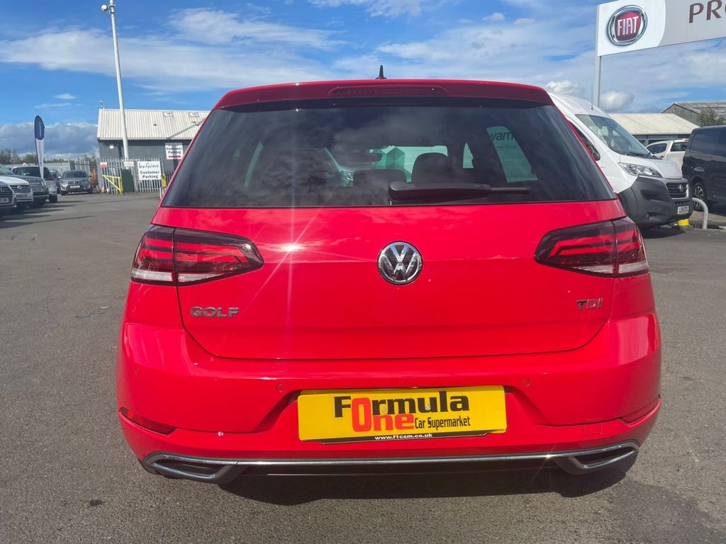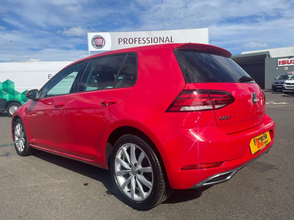 App-Connect, 'Lights On' Reminder warning buzzer, 8" touch screen, Adaptive Cruise Control with pedestrian detection and speed limiter, Bluetooth hands free telephone connection, Brake pad wear indicator warning light, Driver alert system, Driver profile selection, Exterior temperature gauge, Front assistant collision mitigation, Instrument cluster in white, Multifunction computer, PAS - speed related, Rev counter, Trip and service interval display, Ultrasonic front and rear optical and audible parking sensors, Warning buzzer and light for front seatbelts unfastened, Alarm with interior protection, Electronic engine immobiliser, Remote central locking with 2 remote folding keys, Diesel particulate filter, Lowered sports suspension, XDS electronic differential lock, Ambient lighting pack - Golf, Mirror pack - Golf, 3 point height adj front seatbelts + pretensioners, 3 rear 3 point seatbelts, ABS, Automatic post collision braking, Child locks on rear doors, Driver/Front Passenger airbags, Driver/Passenger whiplash optimised head restraints, Drivers knee airbag, Electronic parking brake with auto hold, ESP with EDL + ASR, Front and rear curtain airbags, Front passenger airbag deactivation, Front side airbags, Pre crash system, Tyre pressure monitor, CD/MP3/WMA, USB and SD card reader, aux-in, Composition media system, DAB Digital radio, 12V socket in luggage compartment, 3 rear headrests, 3 spoke steering wheel, 60/40 split folding rear seat, Bag hook in luggage compartment, Boot lashing points, Cooled glovebox, Courtesy light delay, Cover for storage compartment in centre, Dust/pollen filter, Front + rear carpet mats, Front centre armrest with storage box and rear air vents, Front passenger drawer stowage, Front passenger seat height adjust, Front seat back storage pockets, Grab handles, Height adjustable driver's seat, Height/reach adjust steering wheel, Illuminated vanity mirrors, Isofix preparation for 2 rear child seats, Load through provision with rear centre armrest and cupholders x2, Luggage compartment cover, Luggage compartment lighting, Multifunction leather steering wheel with leather gear knob/handbrake grip, Overhead storage box, Pearl grey headlining, Storage box in luggage compartment, Storage compartments in doors, Sun visors, Variable boot floor, height adjustable and removable, Auto dimming rear view mirror, Automatic coming/leaving home lighting function, Automatic headlights, Black front air intake and radiator grille with chrome insert, Black rear diffuser, Body coloured bumpers, Body coloured door handles, Body coloured door mirrors, Chrome grille surround, Electric front windows, Electric rear windows, Electrically adjustable and heated door mirrors, Heat insulated tinted glass 65% light absorbing from B pillar back, Heated rear windscreen, LED daytime running lights, LED front fog lights with static cornering light function, LED rear lights, Rain sensor, Rear roof spoiler, Rear windscreen washer and wiper with interval delay, Chrome-plated light switch surround, Piano black centre console, Tumbler decorative inserts, Steel space saver spare wheel