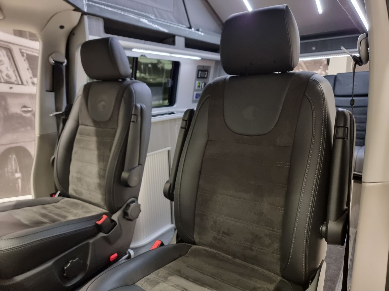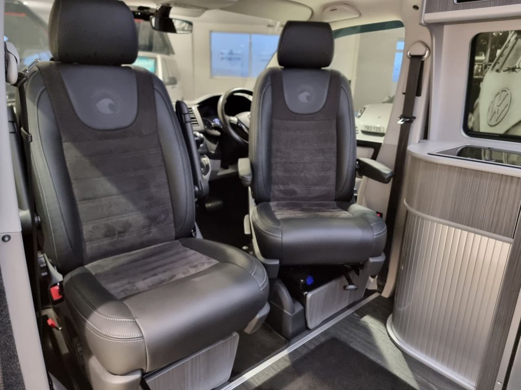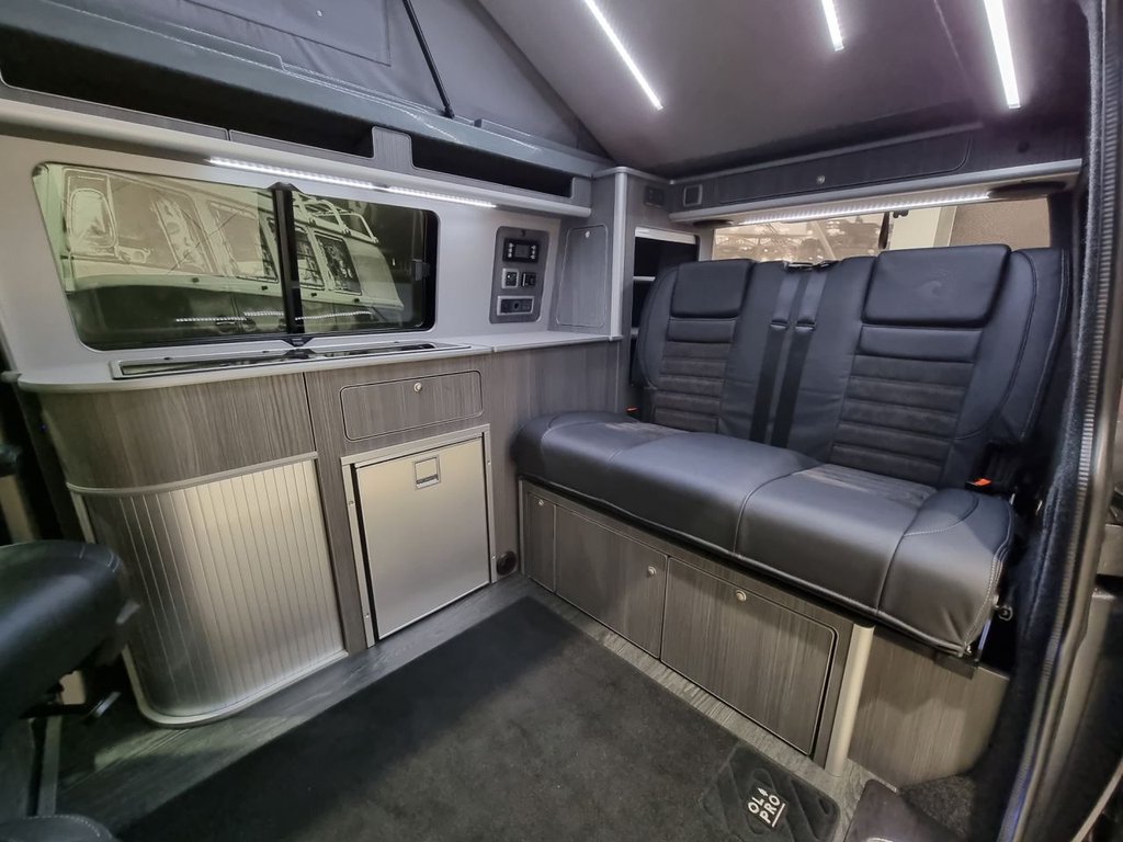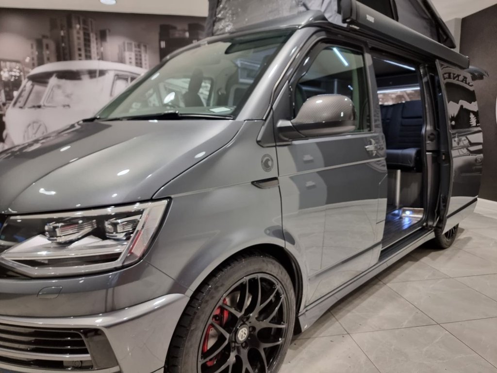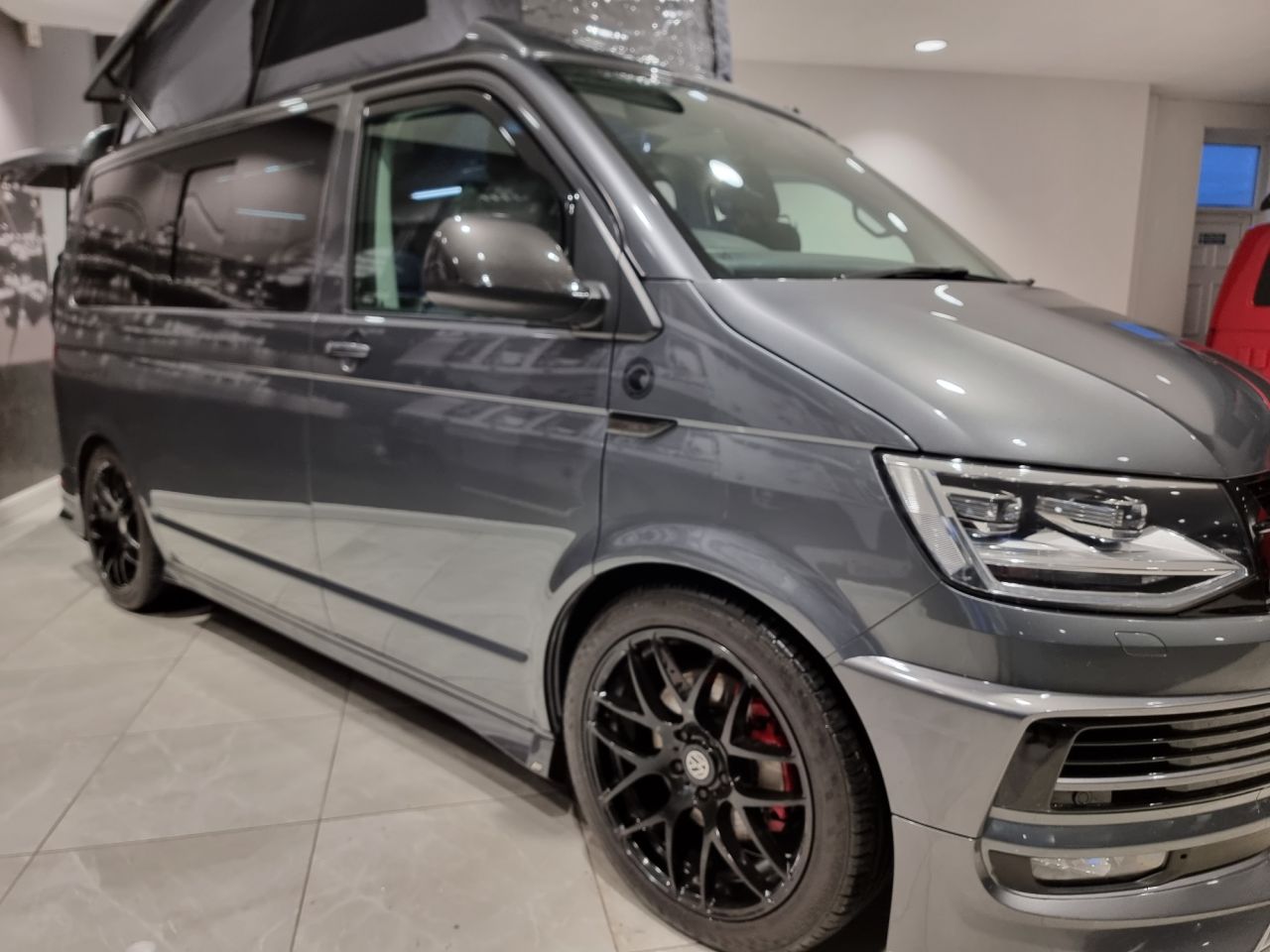 Van Spec * 2018 T32, SWB, Highline * 204 (mapped to 245) DSG in Indium grey * Captains chairs with swivels * Rear tailgate with window * Power latching doors * Discovery Sat nav * Matrix LED headlights (Factory) * Parking Sensors front and rear + camera (Factory ) * Cruise Control * Electric Mirrors * Air Conditioning * Heated seats Optional Upgrades: * Webasto Airtop heating * Custom leather & alcantara trimming * Altro Wood Safety flooring * Roof bed with led strip lights * Bilstein coilover adjustable supension * 20in Alloys * 8 loc sliding door table * Vanshades * ABT (Genuine)front side and rear body kit Inc Quad exhaust * Thule Omnistor Awning * Blackvue dashcamera (front & rear) * 29lt Underbody Water Tank * CBE PC210 Power Management unit Inc. * Reimo easy lift roof( colour coded) * Factory Full closure security + Ghost immobiliser * Adjustable indoor/outdoor table * Full vw history including cambelt /waterpump fitted at 33000 miles