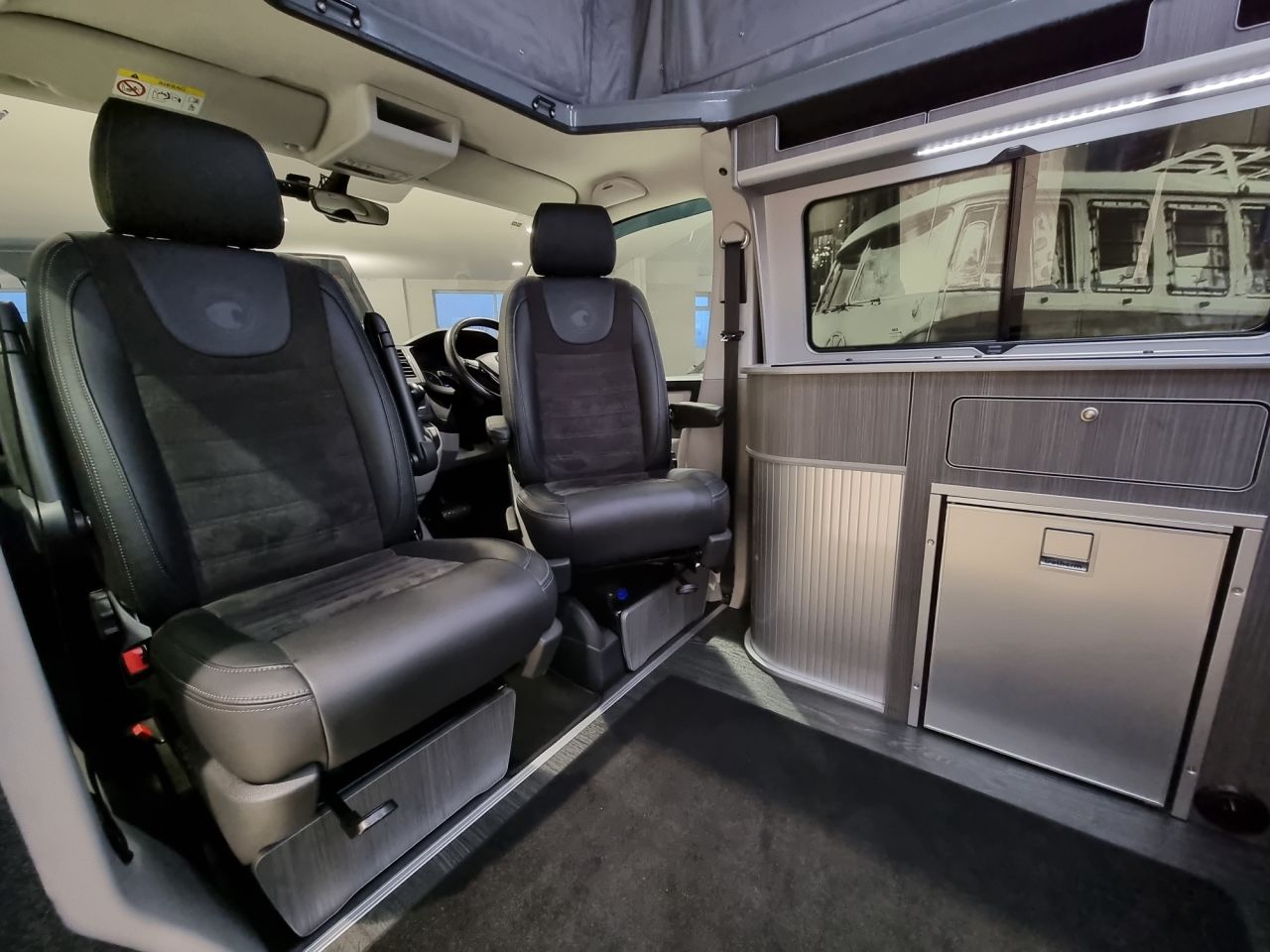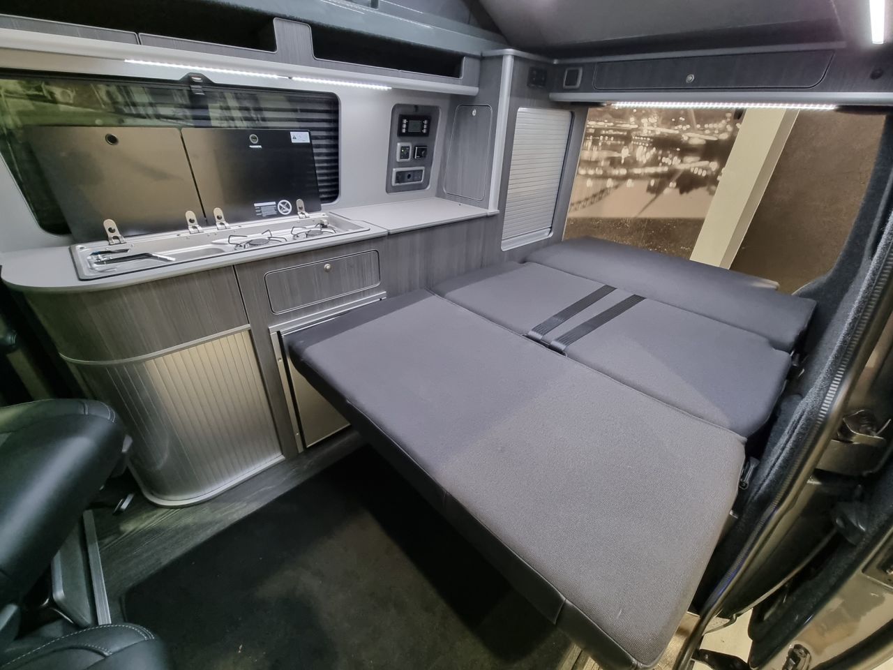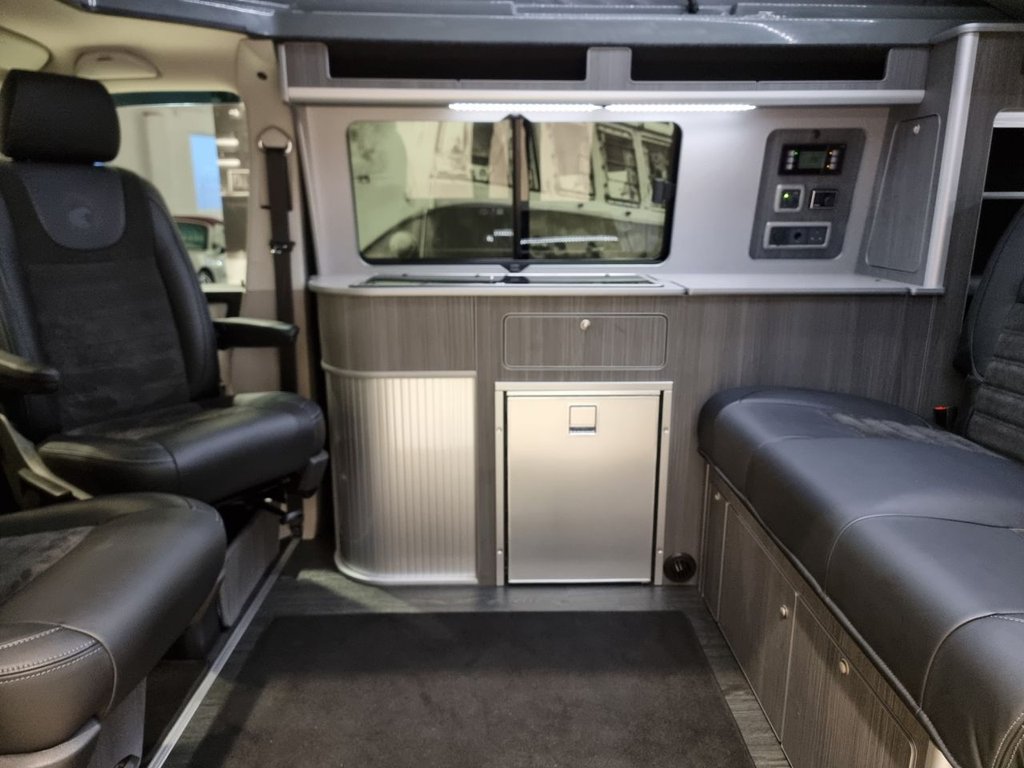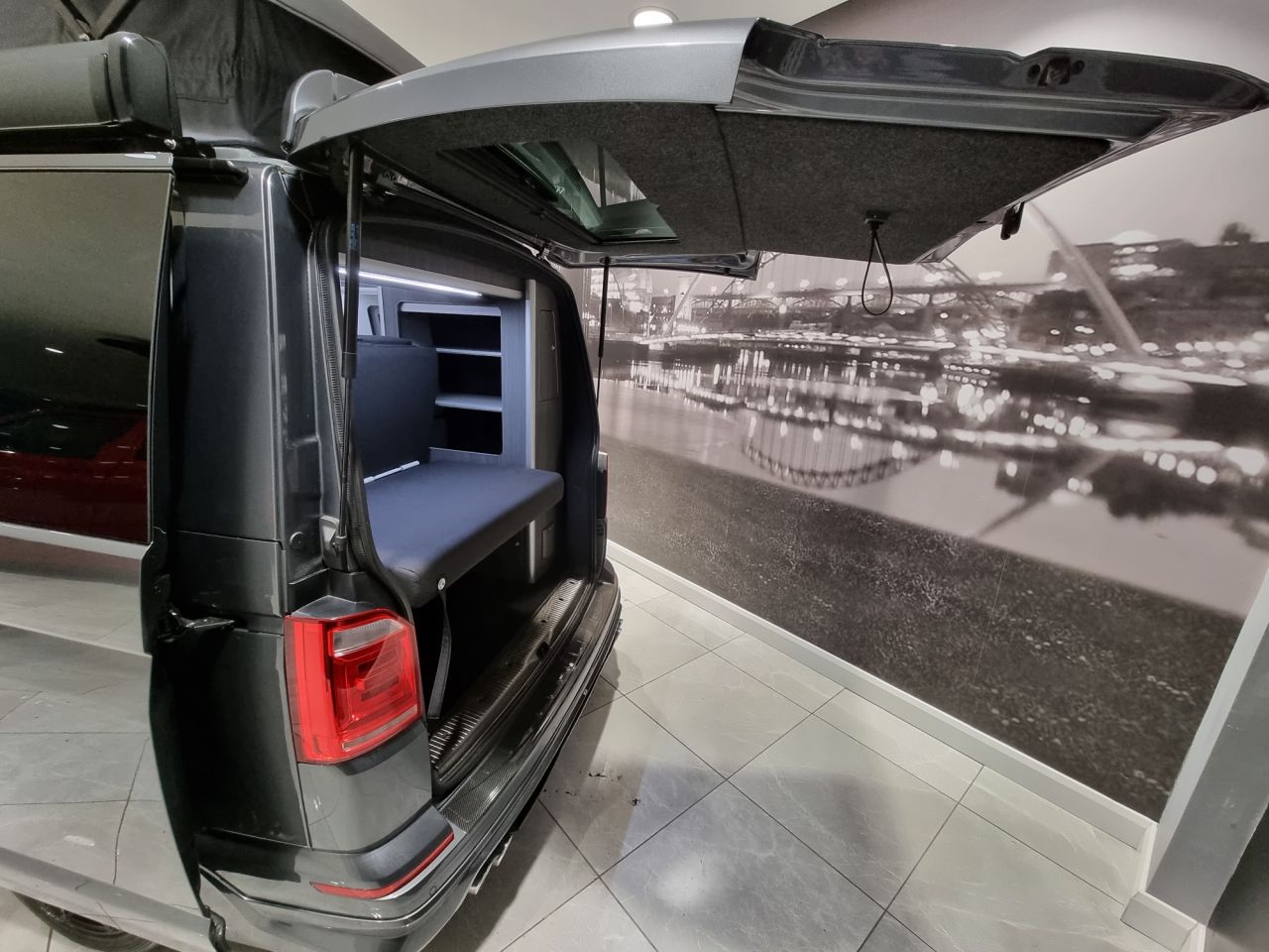 Van Spec * 2018 T32, SWB, Highline * 204 (mapped to 245) DSG in Indium grey * Captains chairs with swivels * Rear tailgate with window * Power latching doors * Discovery Sat nav * Matrix LED headlights (Factory) * Parking Sensors front and rear + camera (Factory ) * Cruise Control * Electric Mirrors * Air Conditioning * Heated seats Optional Upgrades: * Webasto Airtop heating * Custom leather & alcantara trimming * Altro Wood Safety flooring * Roof bed with led strip lights * Bilstein coilover adjustable supension * 20in Alloys * 8 loc sliding door table * Vanshades * ABT (Genuine)front side and rear body kit Inc Quad exhaust * Thule Omnistor Awning * Blackvue dashcamera (front & rear) * 29lt Underbody Water Tank * CBE PC210 Power Management unit Inc. * Reimo easy lift roof( colour coded) * Factory Full closure security + Ghost immobiliser * Adjustable indoor/outdoor table * Full vw history including cambelt /waterpump fitted at 33000 miles