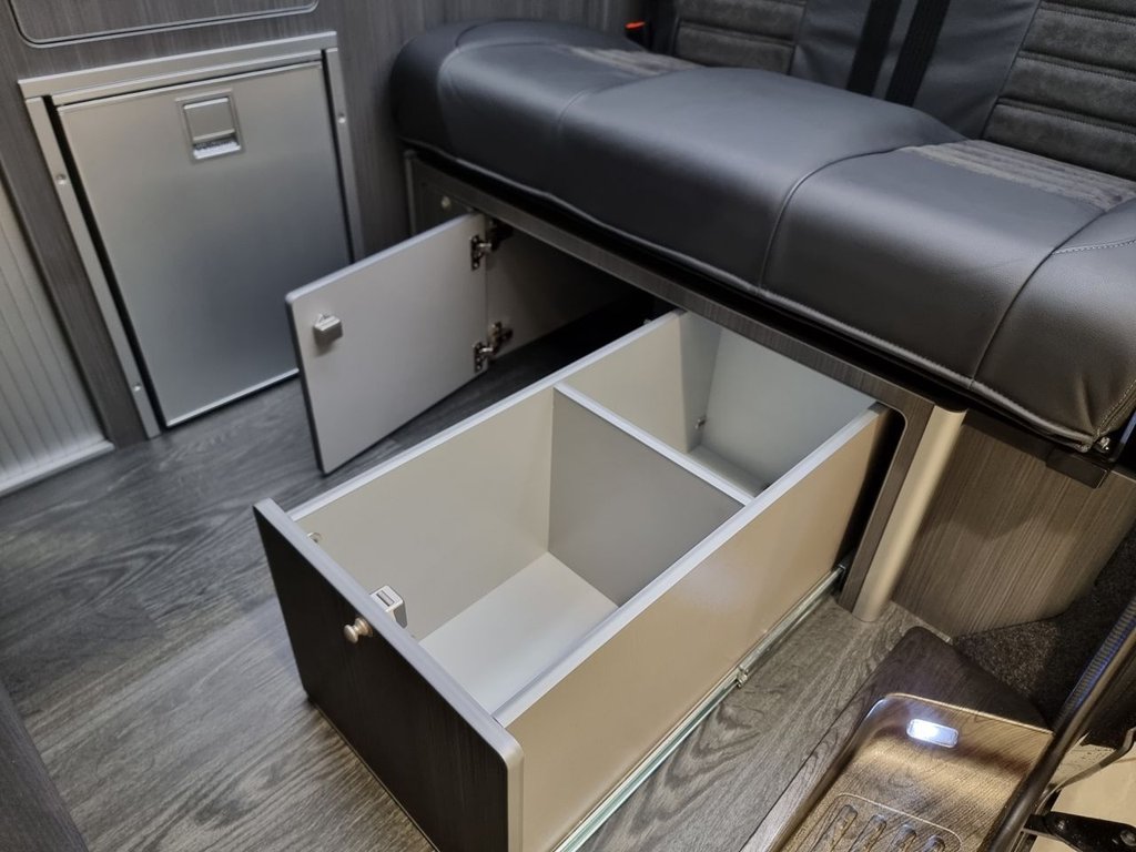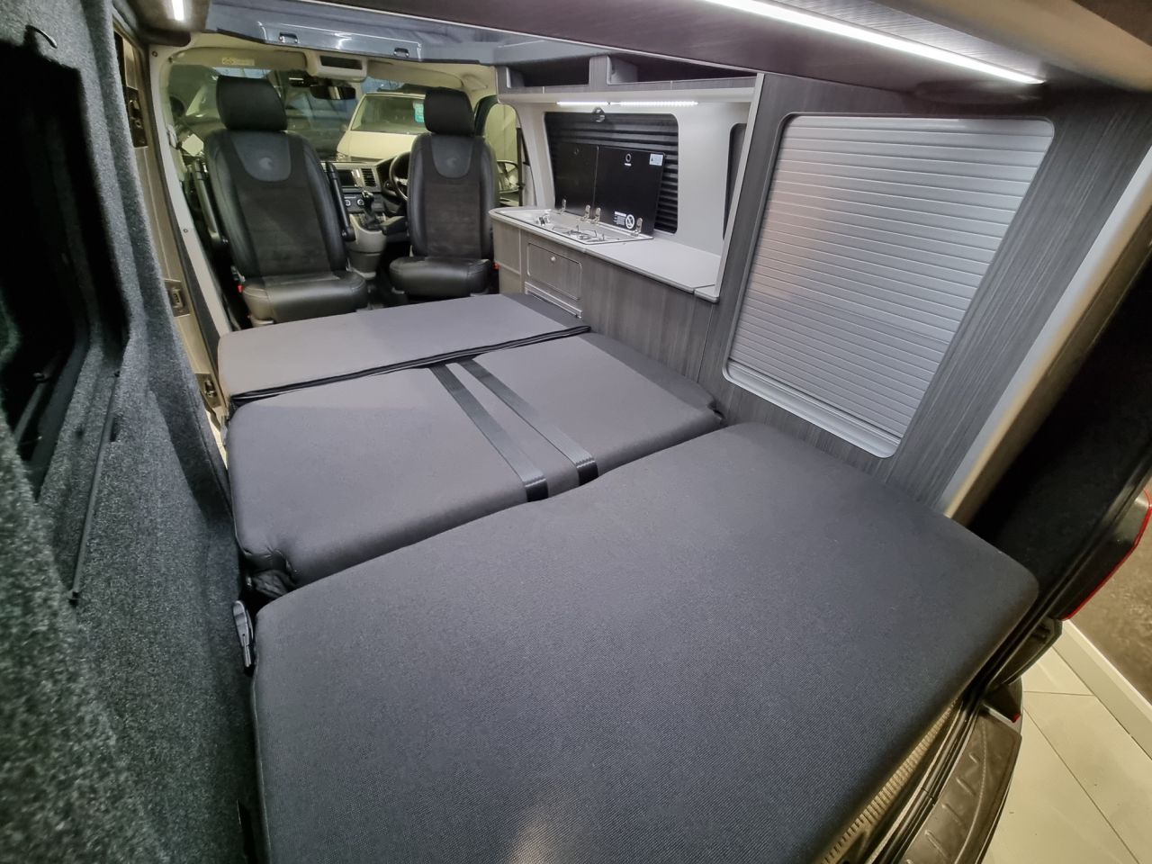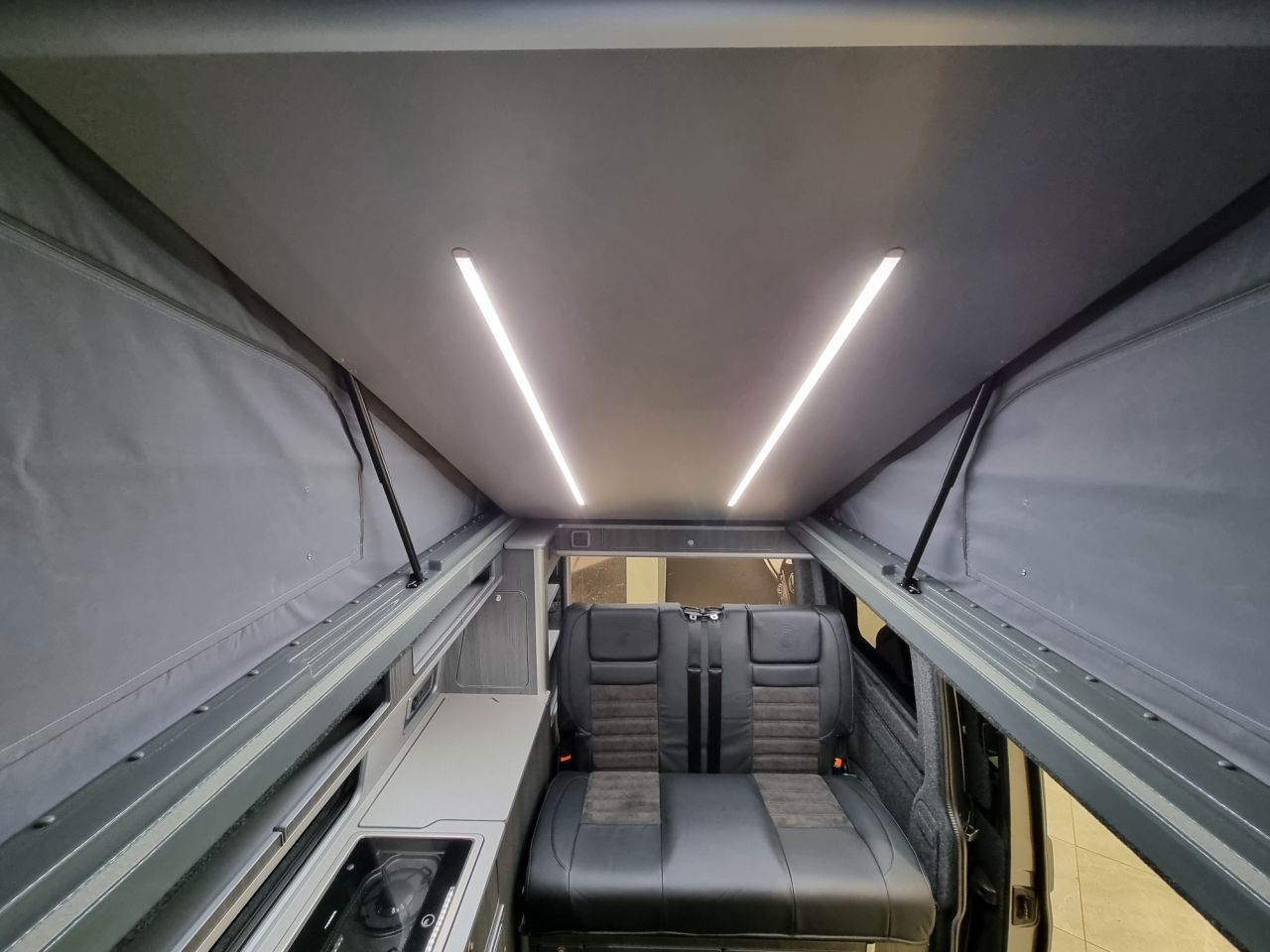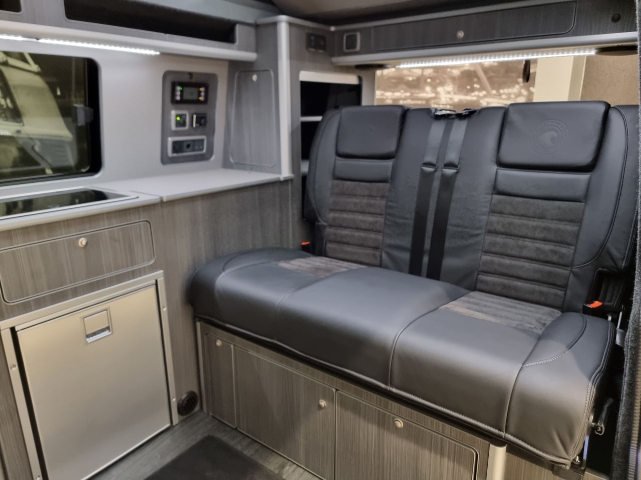 Van Spec * 2018 T32, SWB, Highline * 204 (mapped to 245) DSG in Indium grey * Captains chairs with swivels * Rear tailgate with window * Power latching doors * Discovery Sat nav * Matrix LED headlights (Factory) * Parking Sensors front and rear + camera (Factory ) * Cruise Control * Electric Mirrors * Air Conditioning * Heated seats Optional Upgrades: * Webasto Airtop heating * Custom leather & alcantara trimming * Altro Wood Safety flooring * Roof bed with led strip lights * Bilstein coilover adjustable supension * 20in Alloys * 8 loc sliding door table * Vanshades * ABT (Genuine)front side and rear body kit Inc Quad exhaust * Thule Omnistor Awning * Blackvue dashcamera (front & rear) * 29lt Underbody Water Tank * CBE PC210 Power Management unit Inc. * Reimo easy lift roof( colour coded) * Factory Full closure security + Ghost immobiliser * Adjustable indoor/outdoor table * Full vw history including cambelt /waterpump fitted at 33000 miles