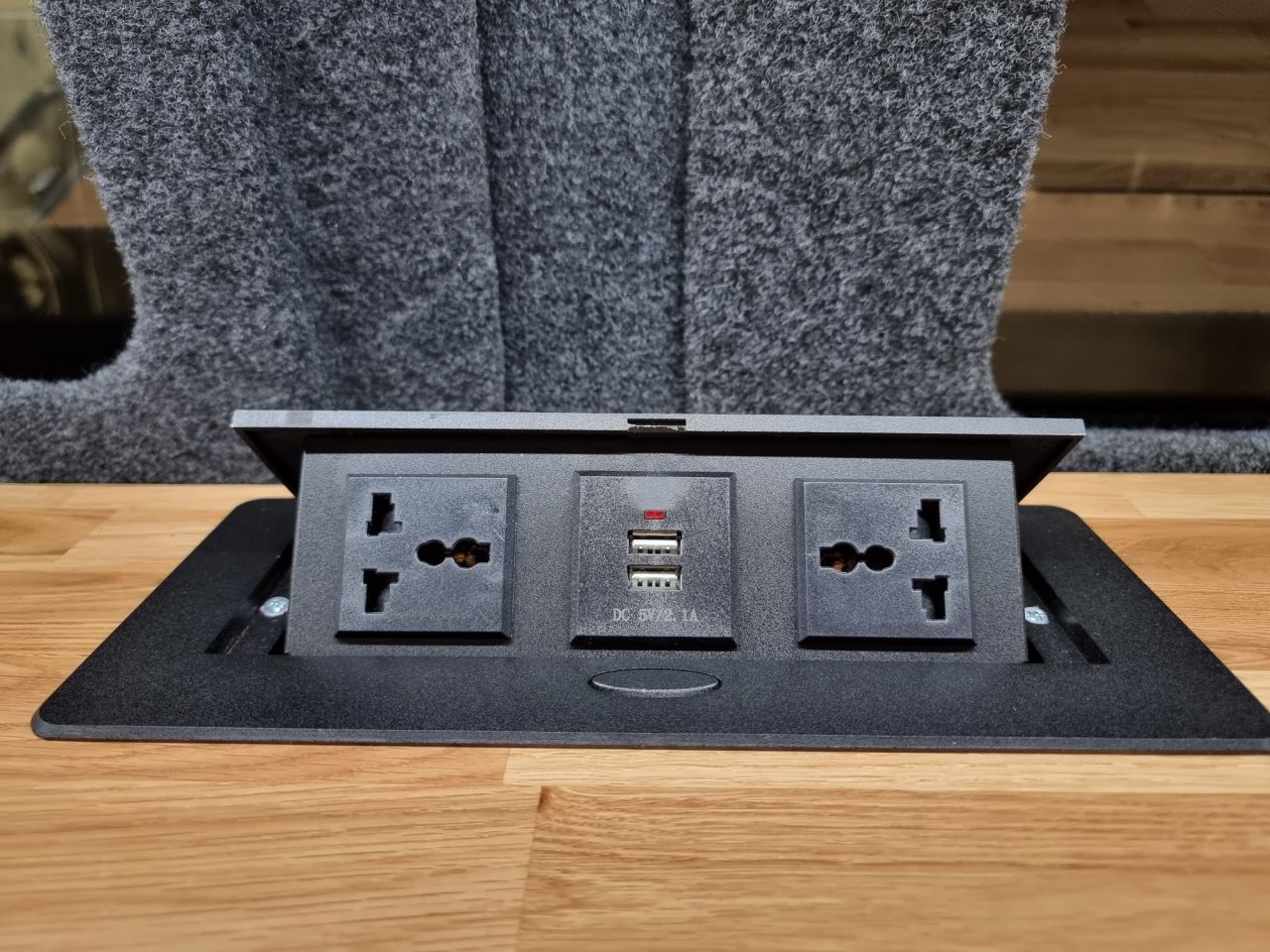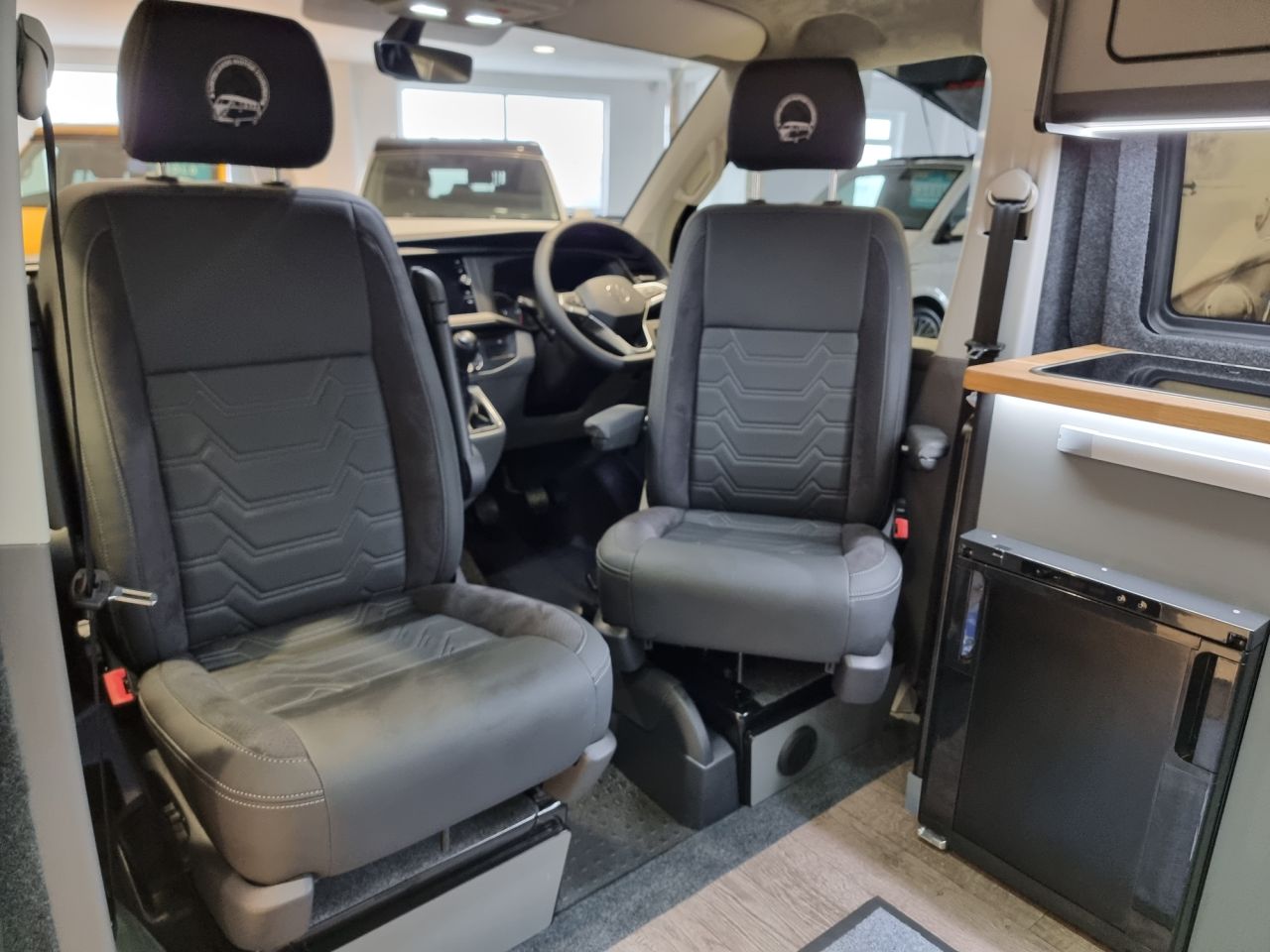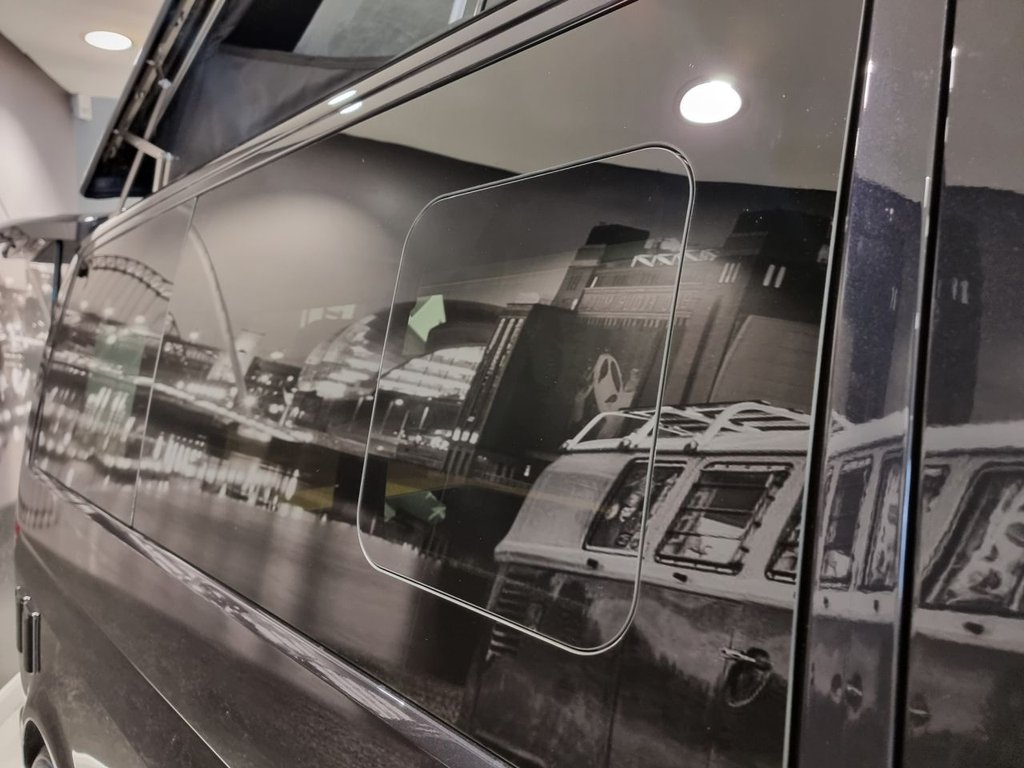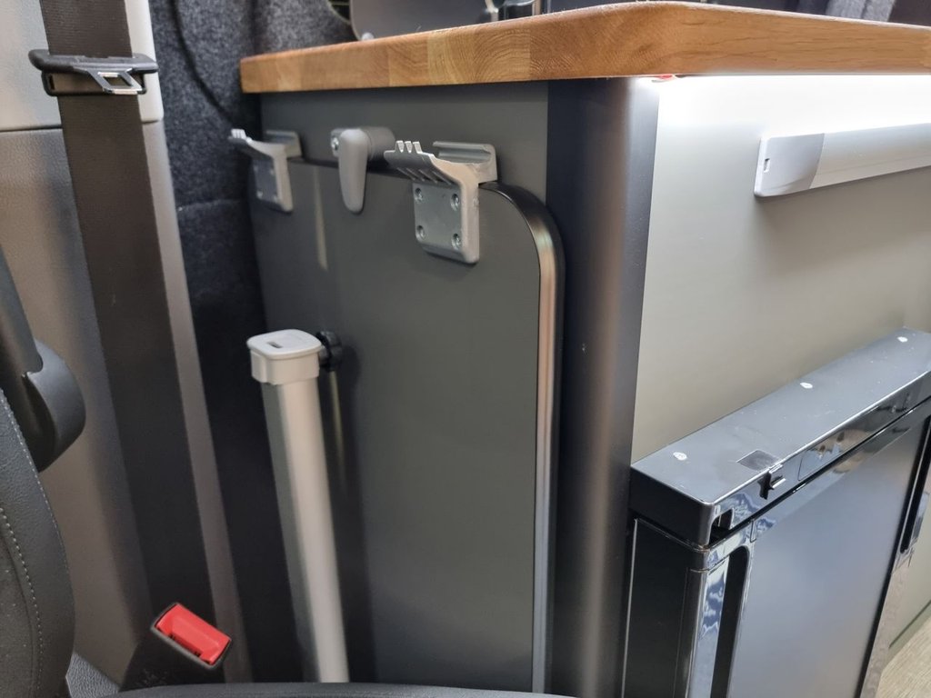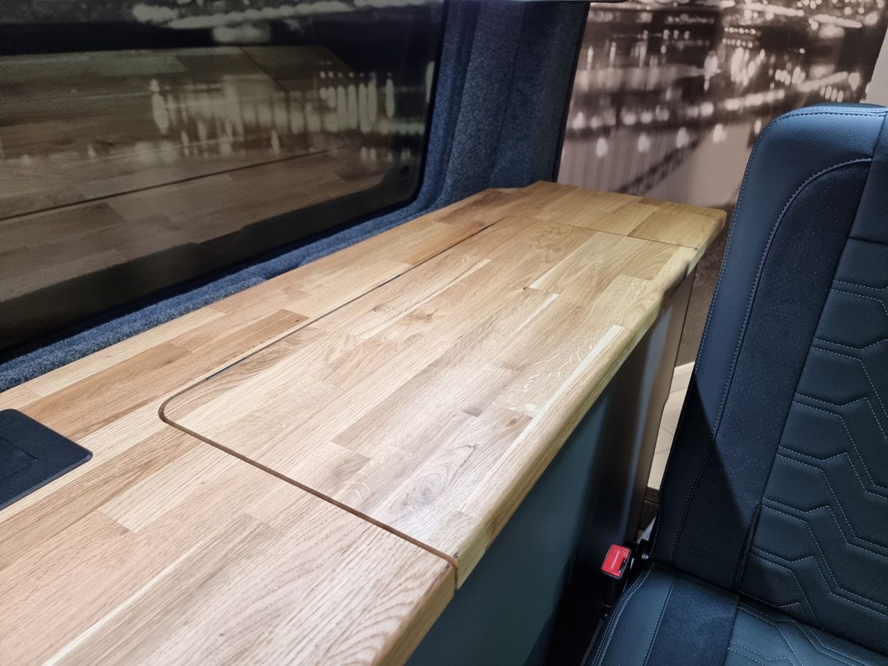 Westdubs poptop roof with scenic canvas Elevating upper bed system Privacy glass all-round Full extended furniture Solid oak worktop with hinged lid for storage Oak tambour doors to match worktop Flush soft close doors with black flush catch's Can double burner and sink unit Fold down tap 50L fridge freezer with LG compressor Dometic camper spec microwave CBE PC180 power management system Sterling split charge system Flush mount soft close sockets - 2 x 240v & 1 x double usb Cool white LED lighting throughout Onboard 130amp leisure battery Onbaord gas locker for 907 gas bottle Under chassis 69L water tank High pressure shower Storage for thetford 335 porta potti within cabinetry Vanshade thermal blinds throughout Planar 2kw diesel heater with 7 day programmable timer M1 tested Fabworx rock n roll bed