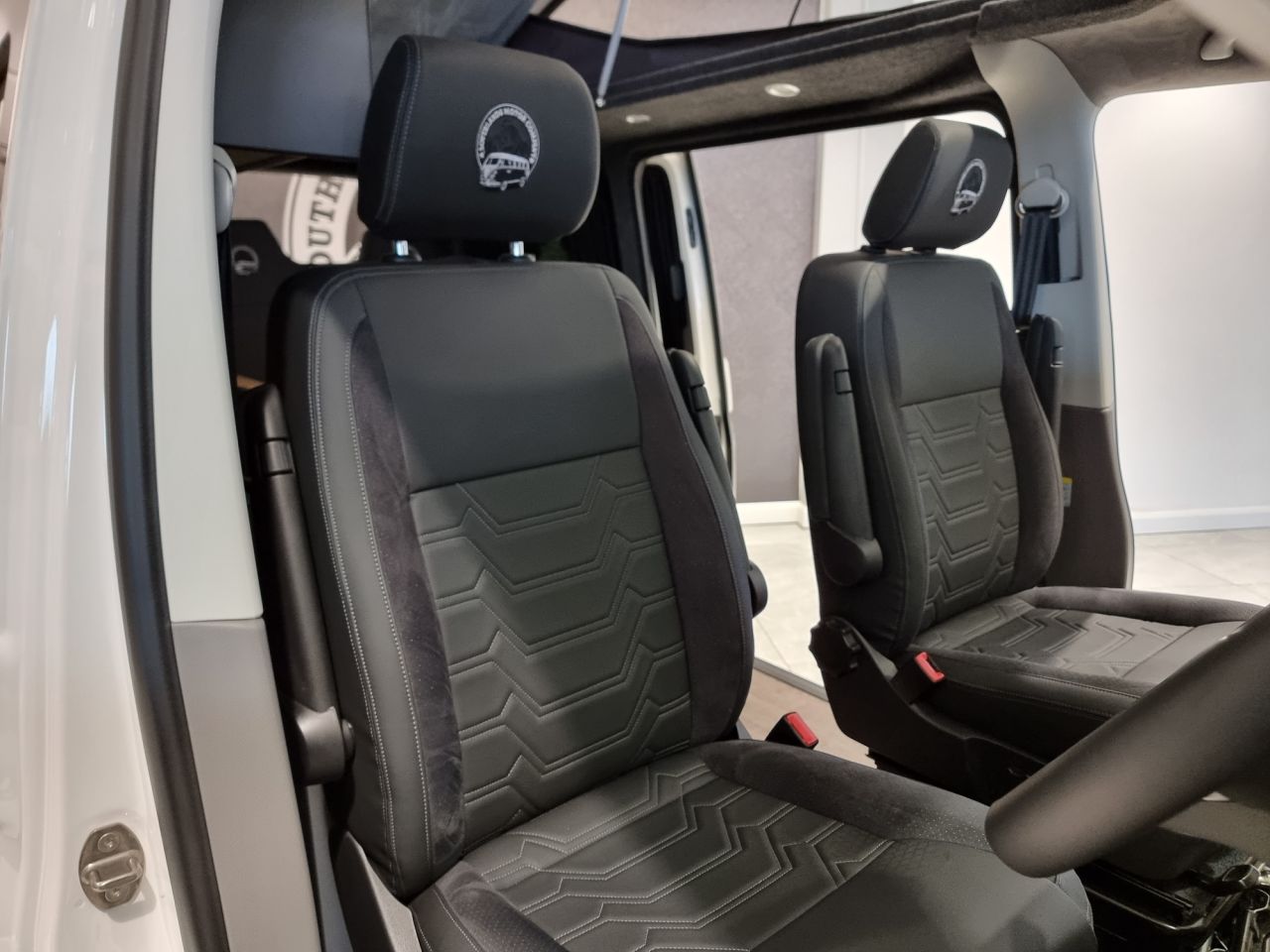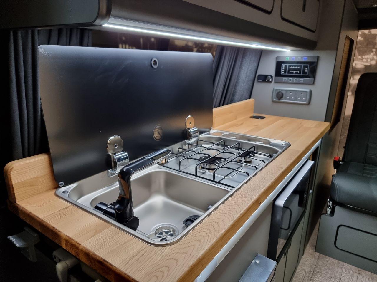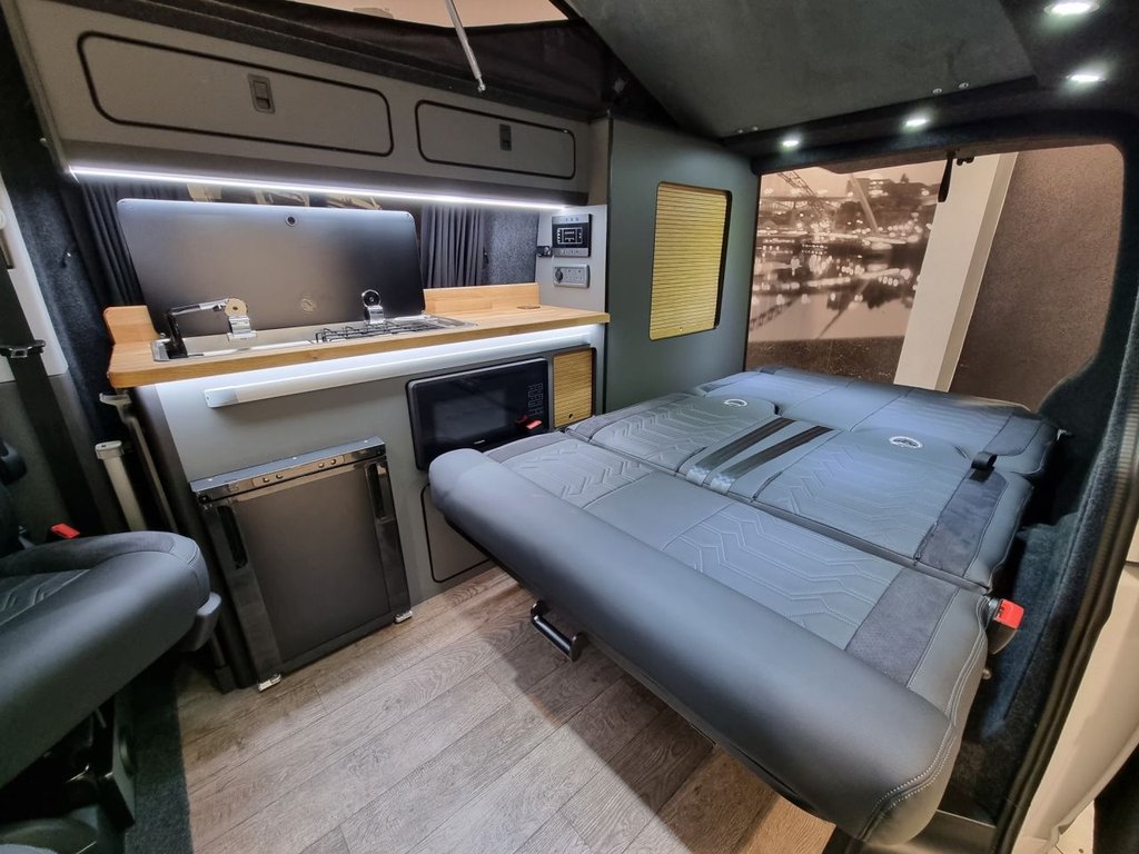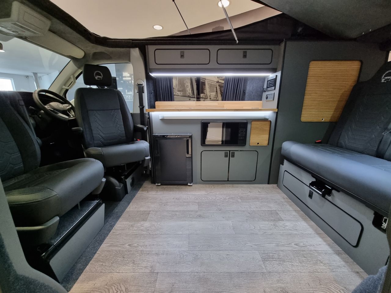 Westdubs poptop roof with scenic canvas Elevating upper bed system Privacy glass all-round Full furniture Solid oak worktop Oak tambour doors to match worktop Flush soft close doors with black flush catch's Can double burner and sink unit Fold down tap 50L fridge freezer with LG compressor Dometic camper spec microwave CBE PC180 power management system Sterling split charge system 2 x 240v & 1 x double usb Wireless charger Cool white LED lighting throughout Onboard 2 x 110amp leisure battery's Onbaord gas locker for 907 gas bottle Onboard 20L water tank Storage for thetford 335 porta potti within cabinetry Blackout curtains throughout Planar 2kw diesel heater with 7 day programmable timer M1 tested Fabworx rock n roll bed