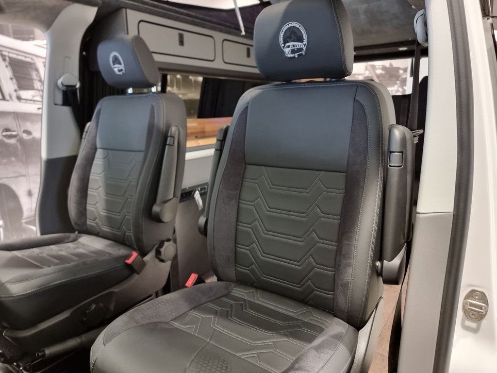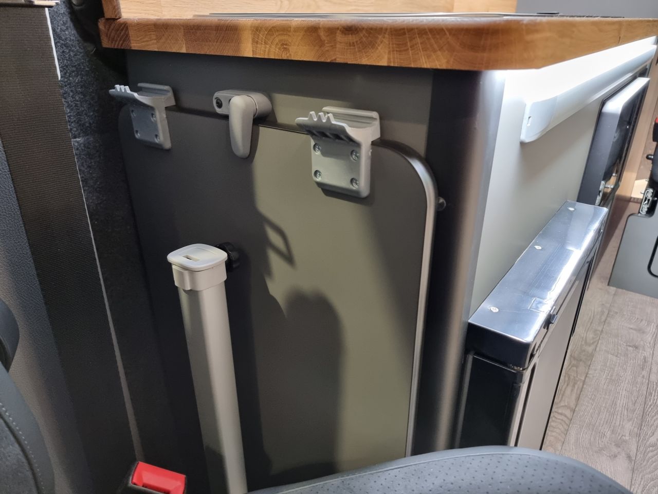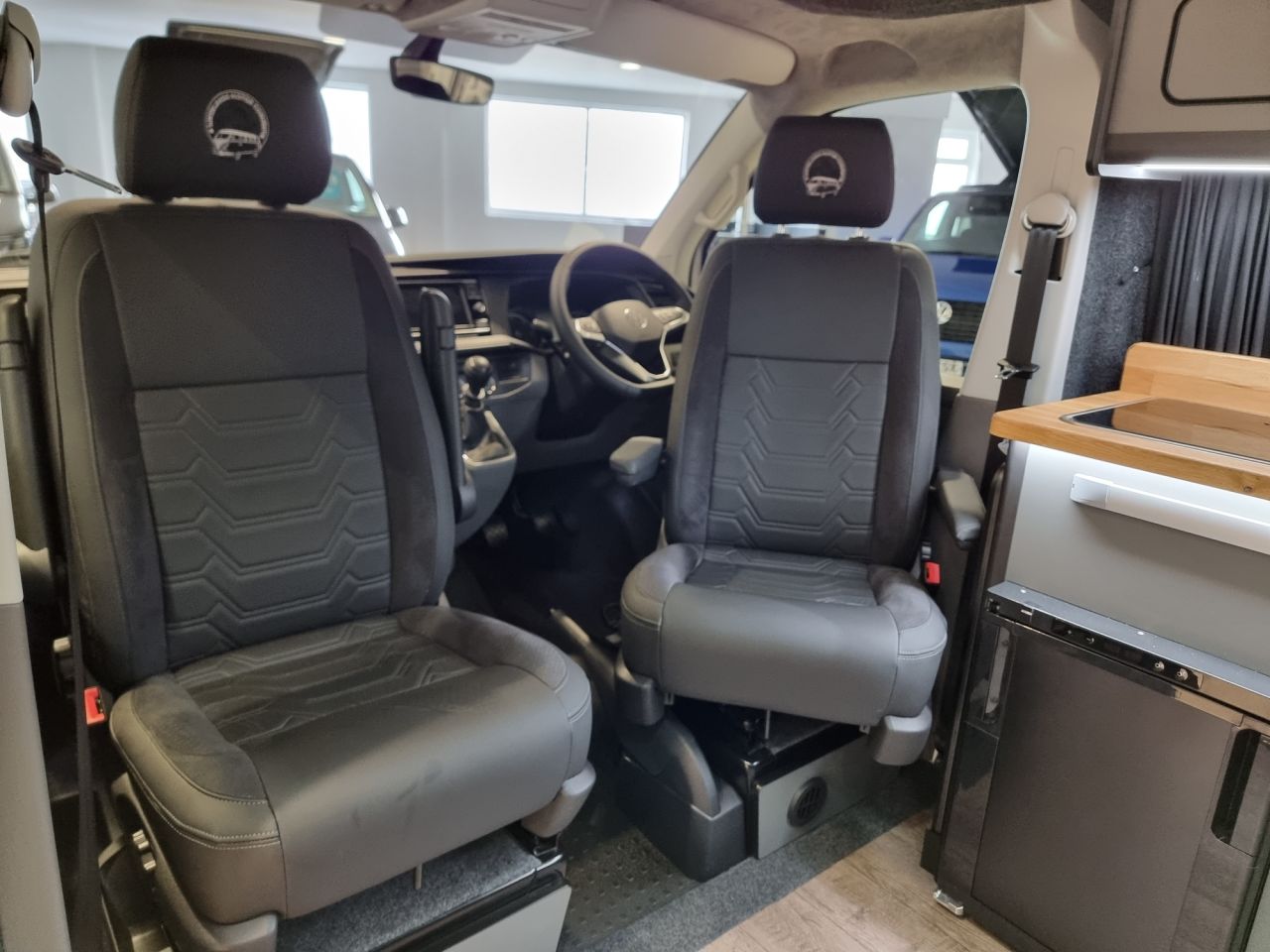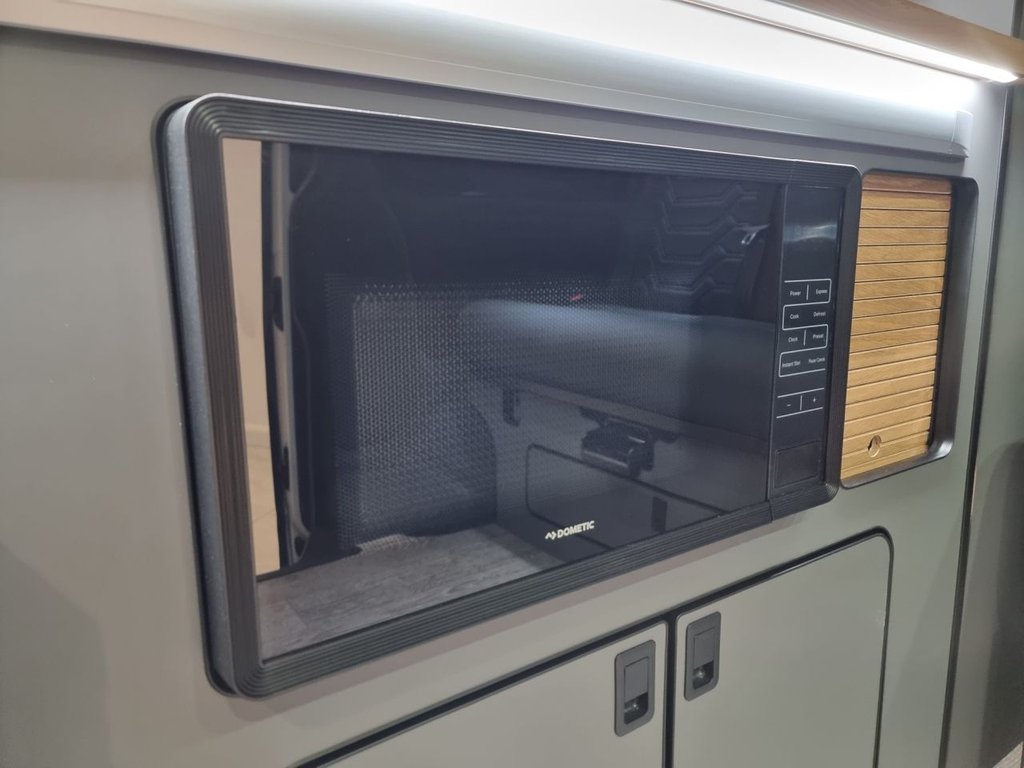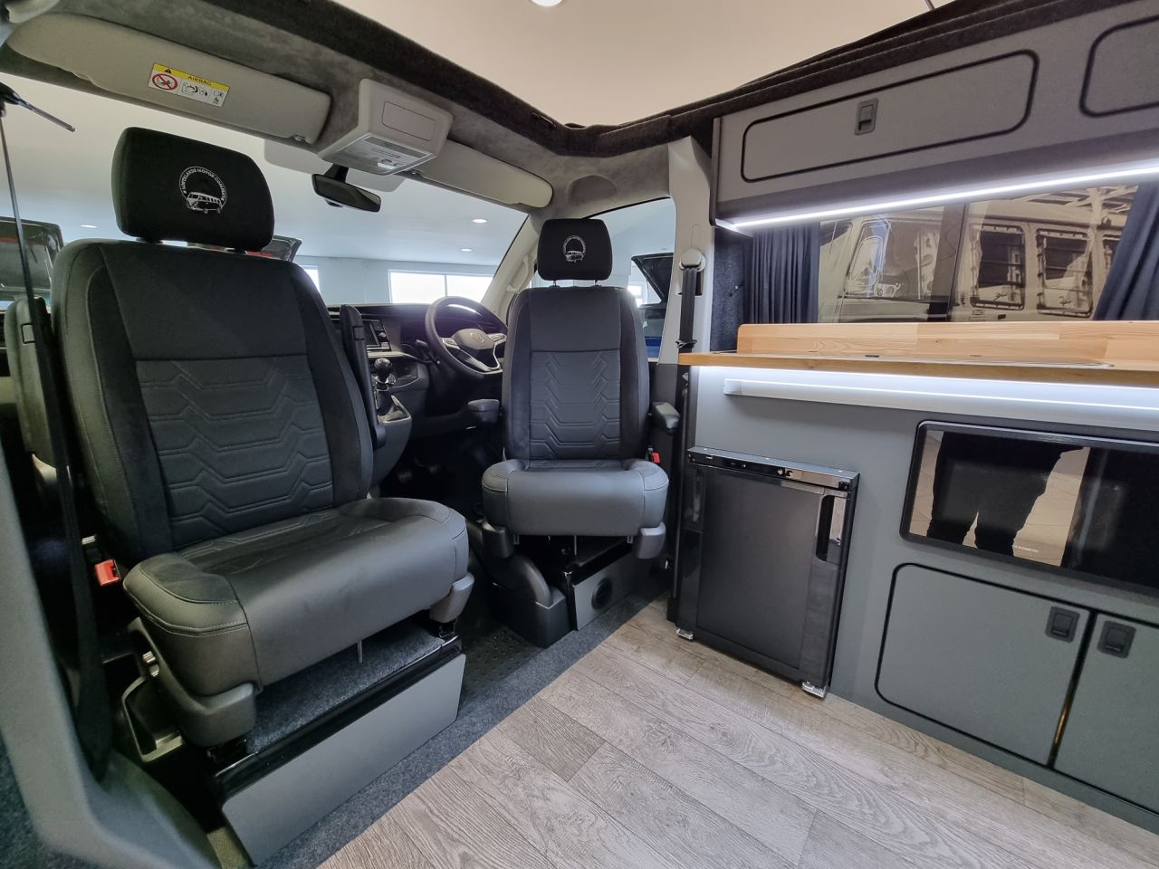 Westdubs poptop roof with scenic canvas Elevating upper bed system Privacy glass all-round Full furniture Solid oak worktop Oak tambour doors to match worktop Flush soft close doors with black flush catch's Can double burner and sink unit Fold down tap 50L fridge freezer with LG compressor Dometic camper spec microwave CBE PC180 power management system Sterling split charge system 2 x 240v & 1 x double usb Wireless charger Cool white LED lighting throughout Onboard 2 x 110amp leisure battery's Onbaord gas locker for 907 gas bottle Onboard 20L water tank Storage for thetford 335 porta potti within cabinetry Blackout curtains throughout Planar 2kw diesel heater with 7 day programmable timer M1 tested Fabworx rock n roll bed