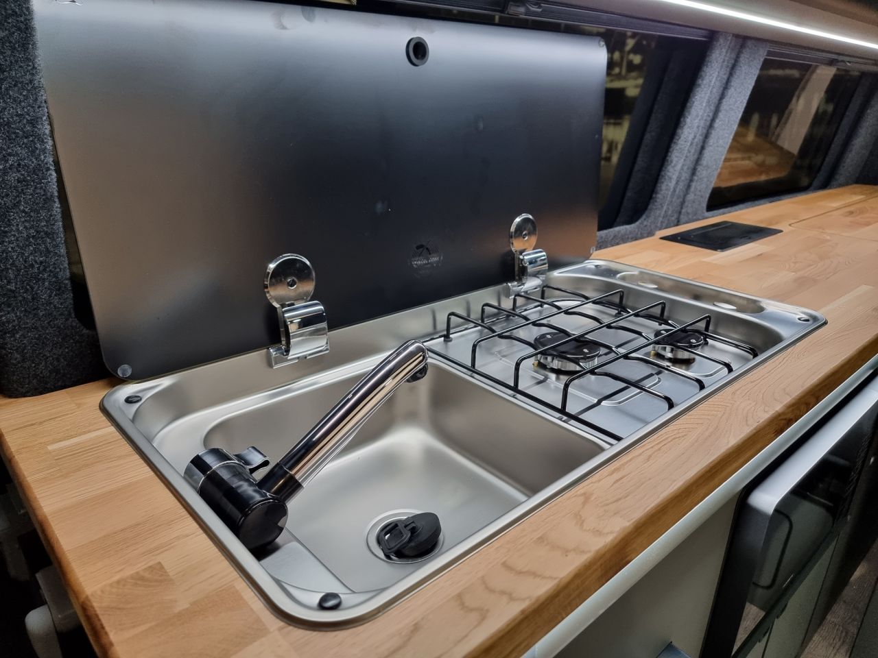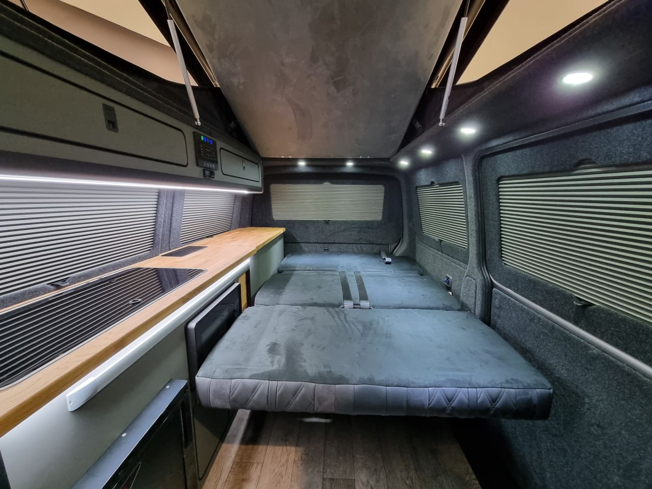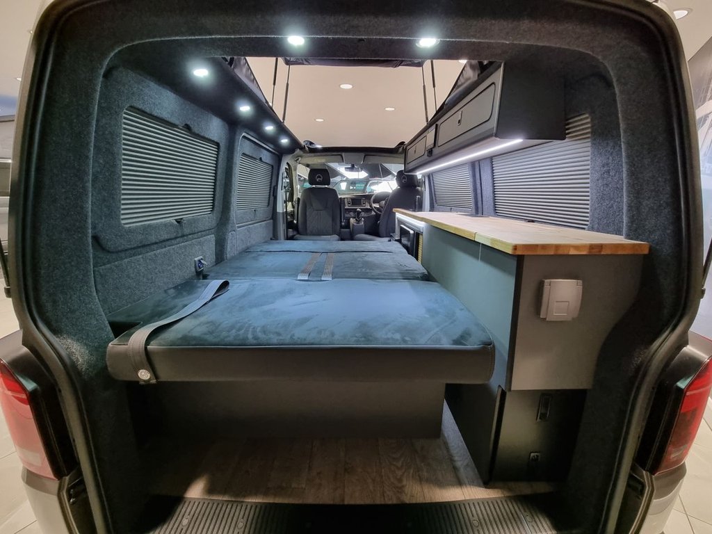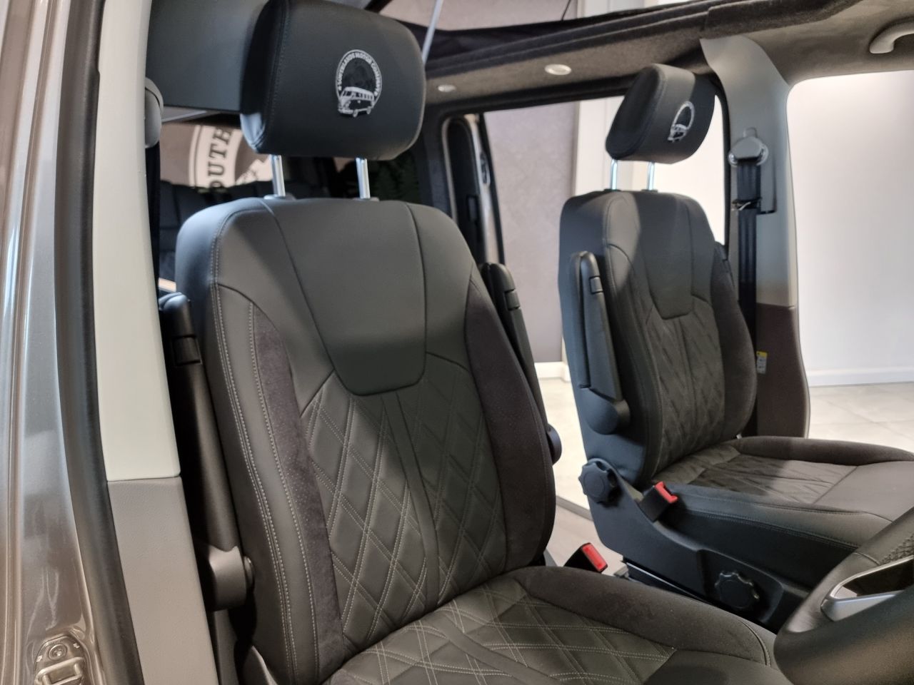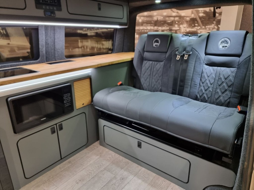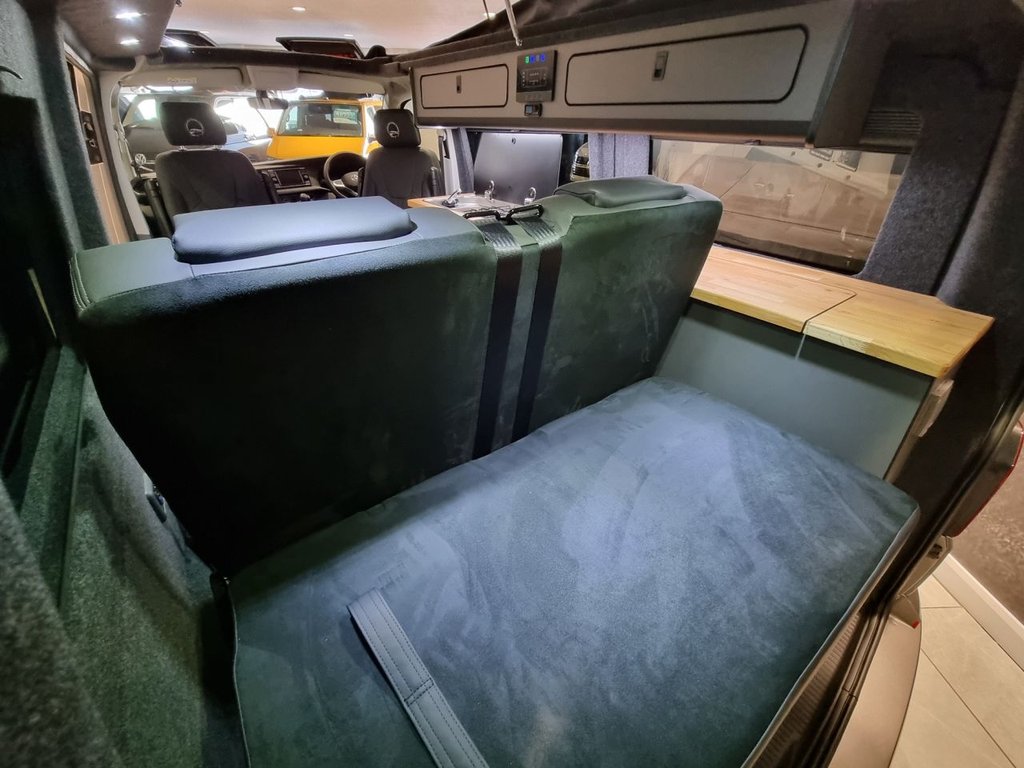 Westdubs poptop roof with scenic canvas Elevating upper bed system Privacy glass all-round Full extended furniture Solid oak worktop with hinged lid for storage Oak tambour doors to match worktop Flush soft close doors with black flush catch's Can double burner and sink unit Fold down tap 50L fridge freezer with LG compressor Dometic camper spec microwave CBE PC180 power management system Sterling split charge system Flush mount soft close sockets - 2 x 240v & 1 x double usb Cool white LED lighting throughout Onboard 130amp leisure battery Onbaord gas locker for 907 gas bottle Under chassis 69L water tank High pressure shower Storage for thetford 335 porta potti within cabinetry Vanshade thermal blinds throughout Planar 2kw diesel heater with 7 day programmable timer M1 tested Fabworx rock n roll bed