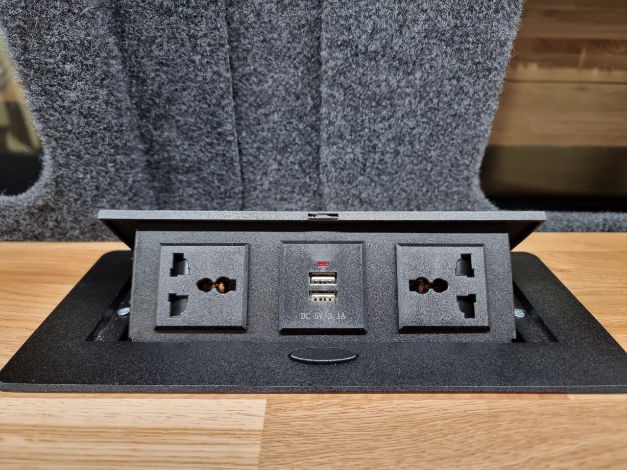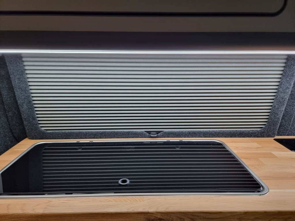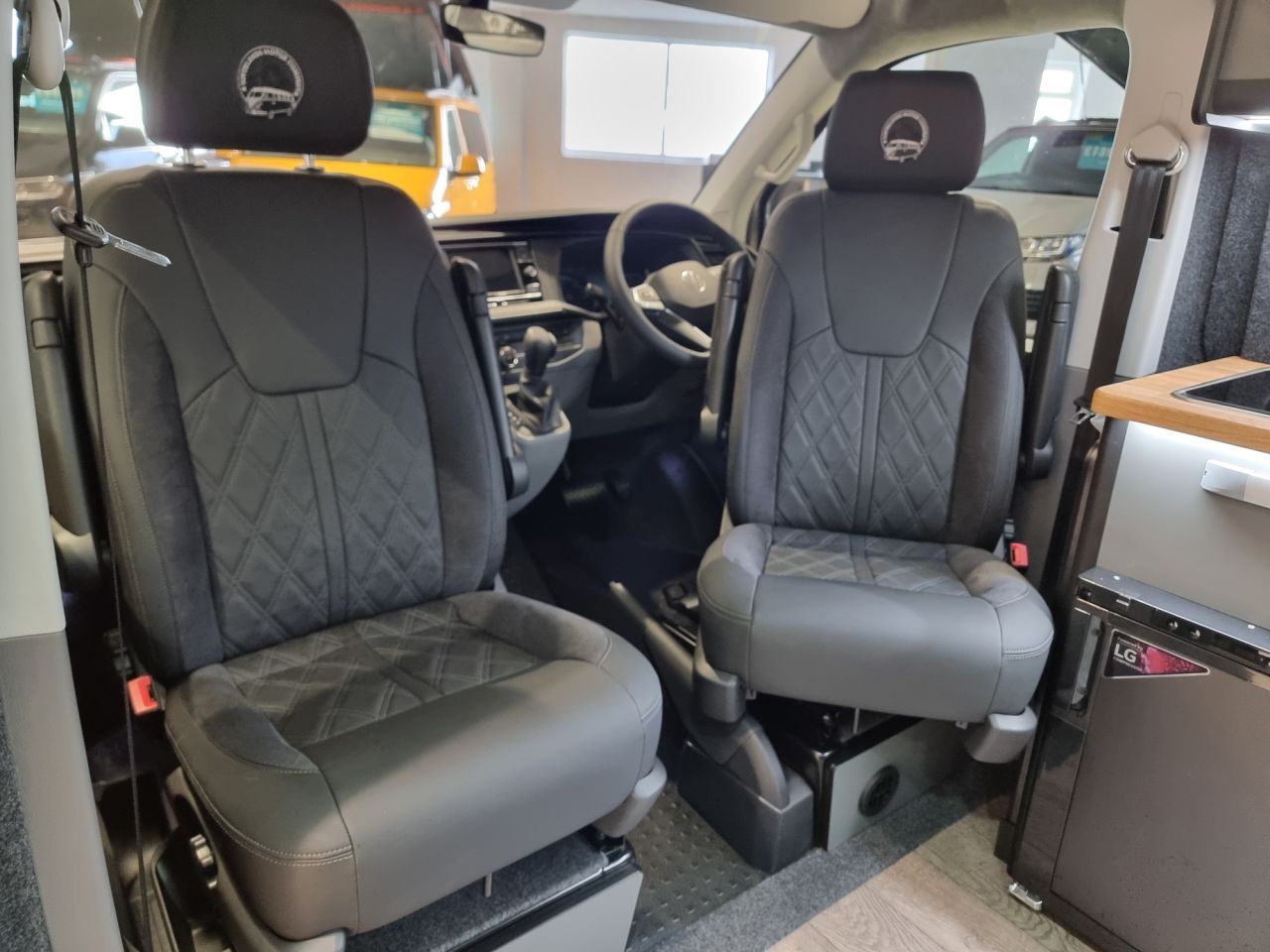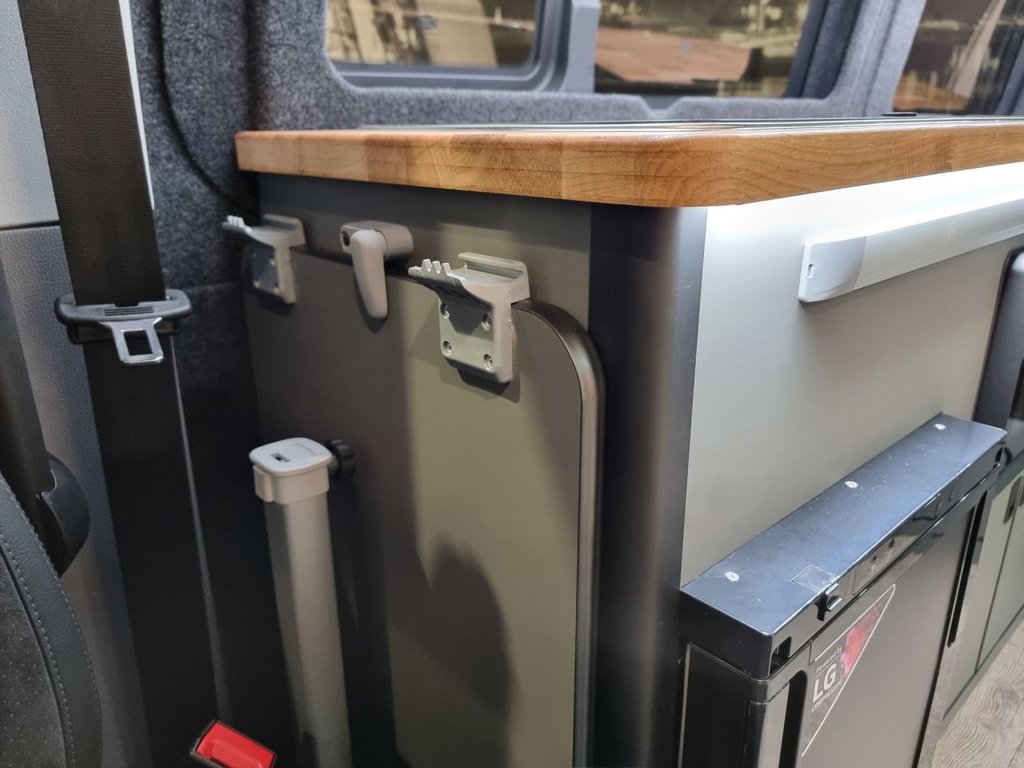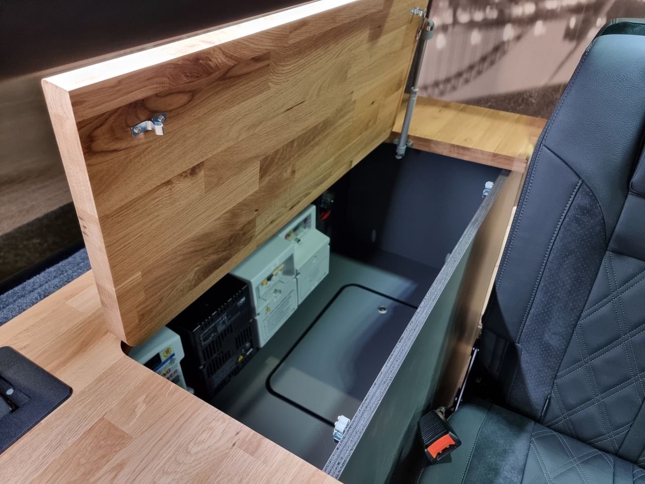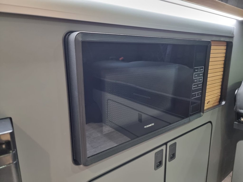 Westdubs poptop roof with scenic canvas Elevating upper bed system Privacy glass all-round Full extended furniture Solid oak worktop with hinged lid for storage Oak tambour doors to match worktop Flush soft close doors with black flush catch's Can double burner and sink unit Fold down tap 50L fridge freezer with LG compressor Dometic camper spec microwave CBE PC180 power management system Sterling split charge system Flush mount soft close sockets - 2 x 240v & 1 x double usb Cool white LED lighting throughout Onboard 130amp leisure battery Onbaord gas locker for 907 gas bottle Under chassis 69L water tank High pressure shower Storage for thetford 335 porta potti within cabinetry Vanshade thermal blinds throughout Planar 2kw diesel heater with 7 day programmable timer M1 tested Fabworx rock n roll bed