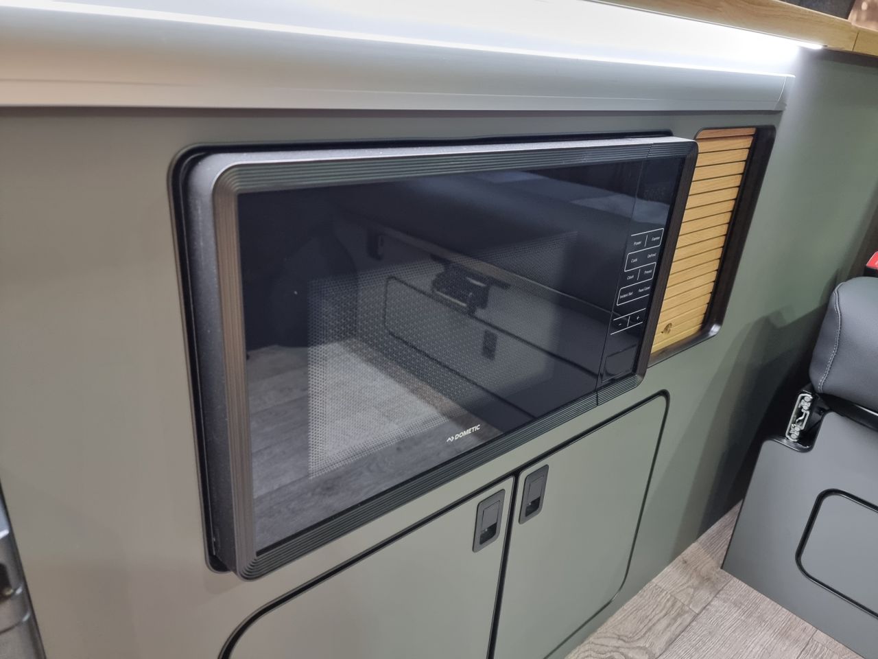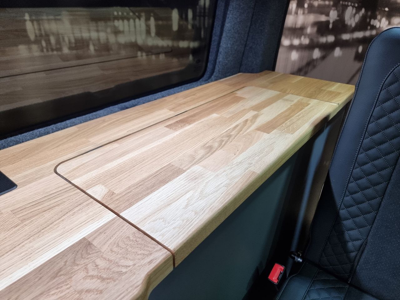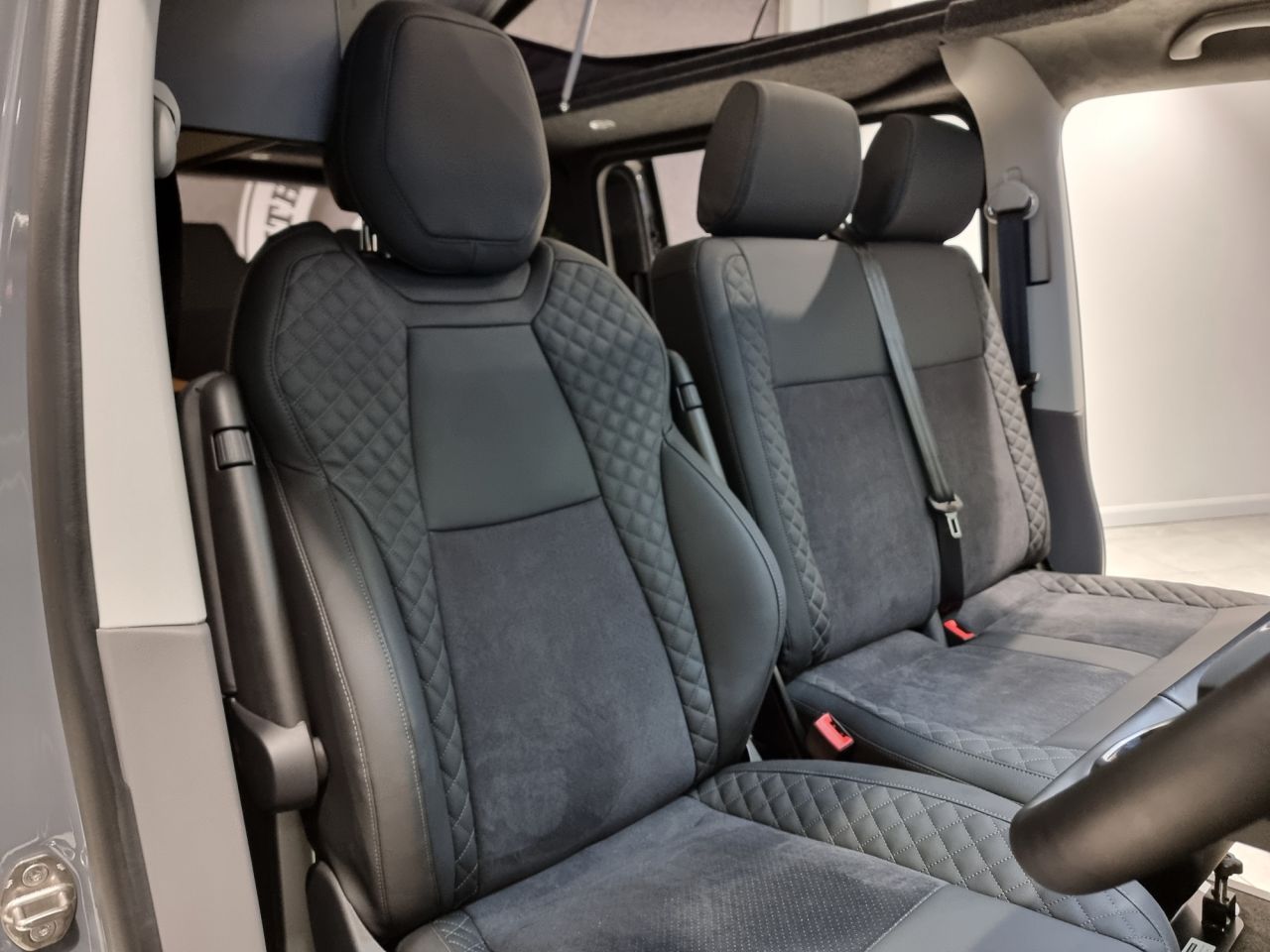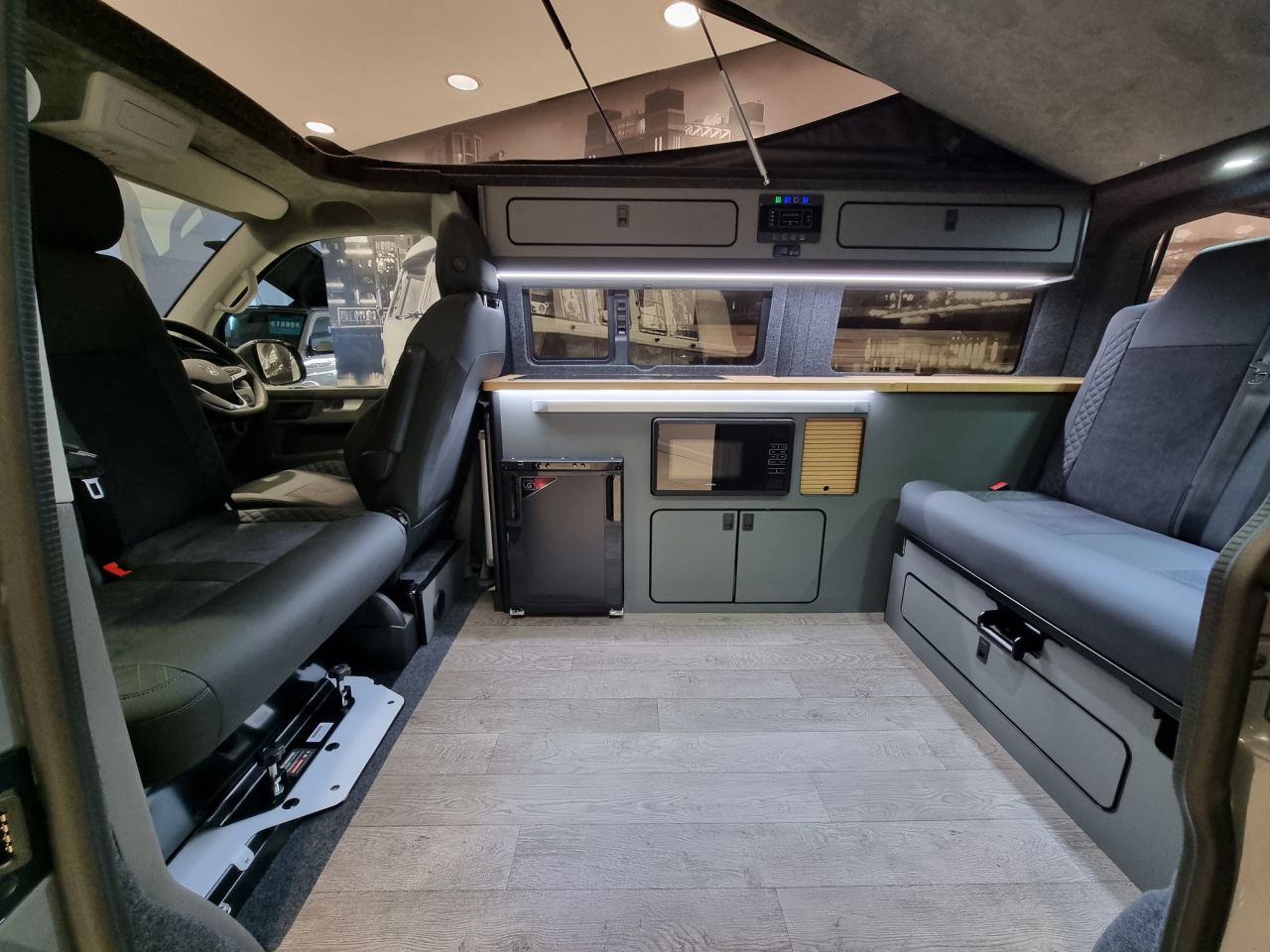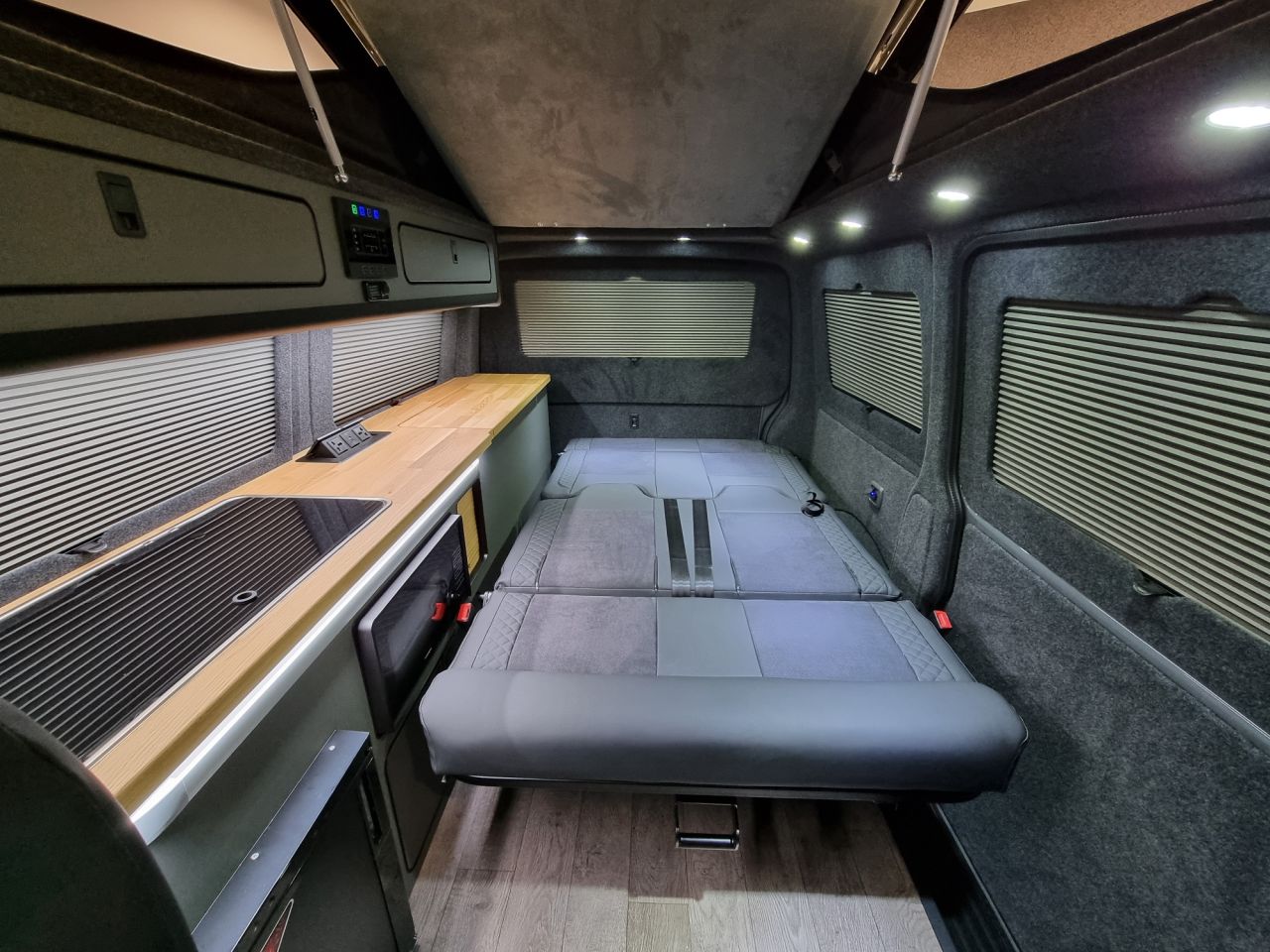 Westdubs poptop roof with scenic canvas Elevating upper bed system Privacy glass all-round Full extended furniture Solid oak worktop with hinged lid for storage Oak tambour doors to match worktop Flush soft close doors with black flush catch's Can double burner and sink unit Fold down tap 50L fridge freezer with LG compressor Dometic camper spec microwave CBE PC180 power management system Sterling split charge system Flush mount soft close sockets - 2 x 240v & 1 x double usb Cool white LED lighting throughout Onboard 130amp leisure battery Onbaord gas locker for 907 gas bottle Under chassis 69L water tank High pressure shower Storage for thetford 335 porta potti within cabinetry Vanshade thermal blinds throughout Planar 2kw diesel heater with 7 day programmable timer M1 tested Fabworx rock n roll bed