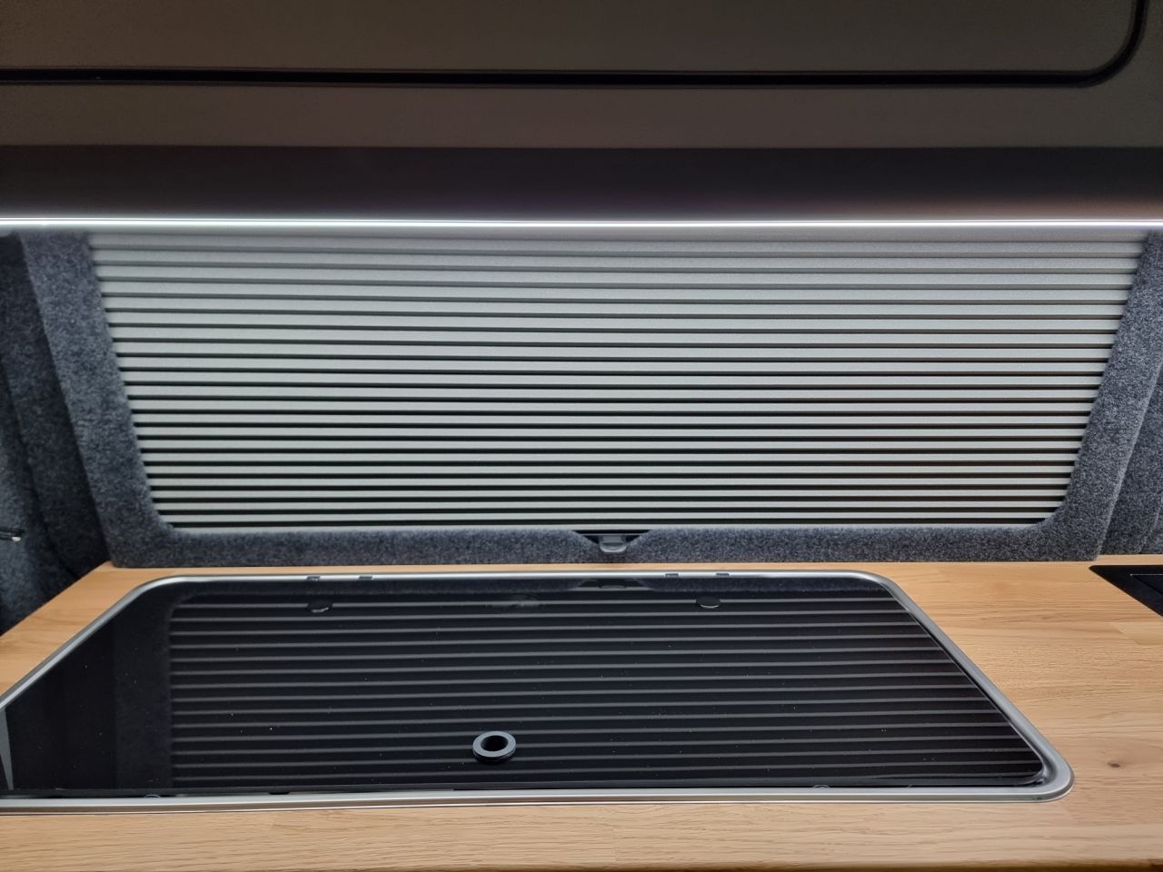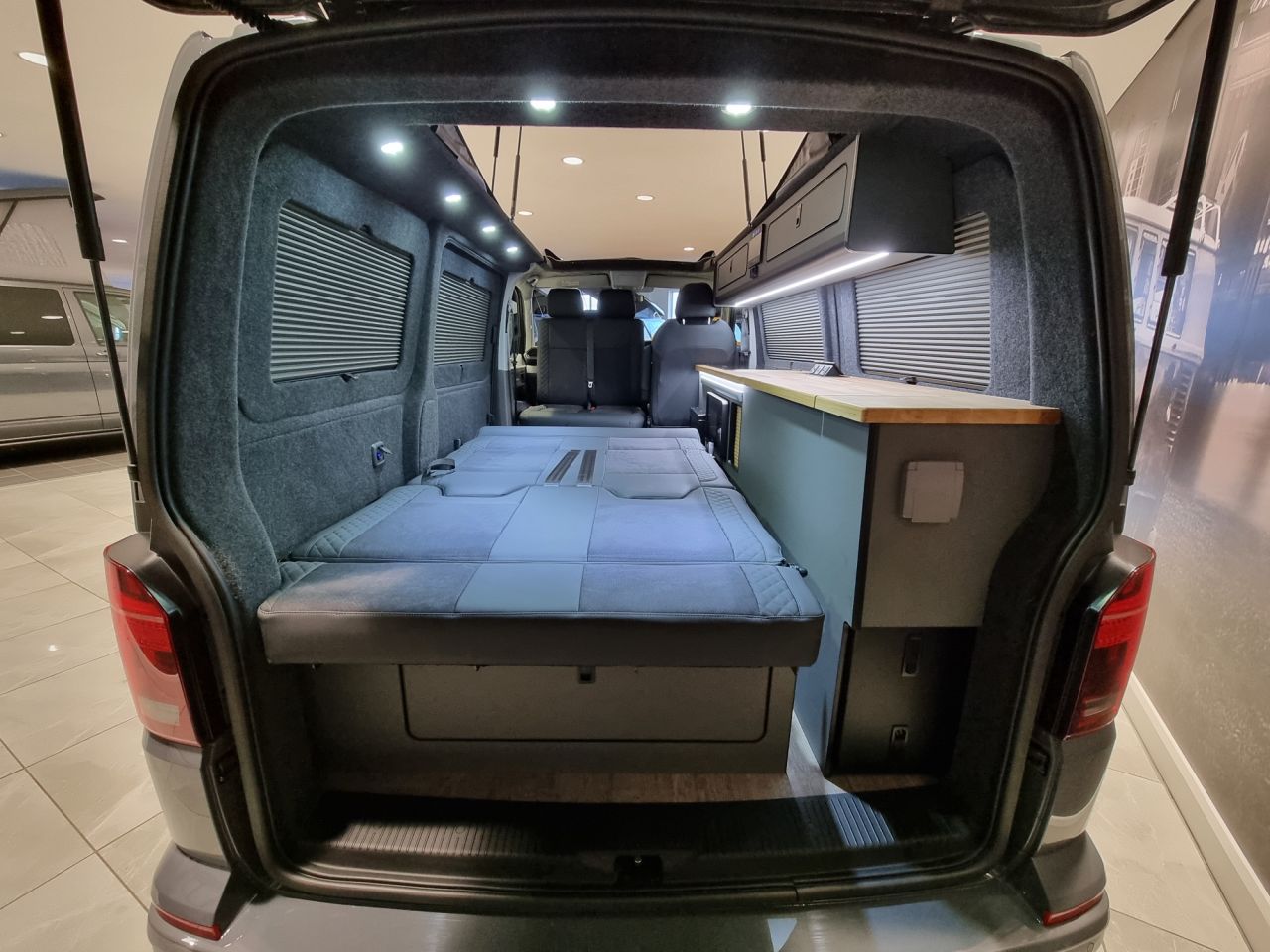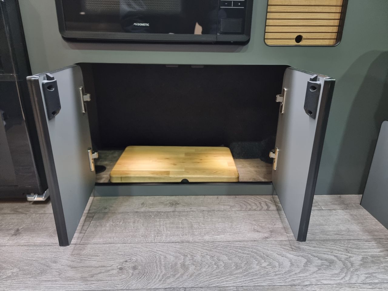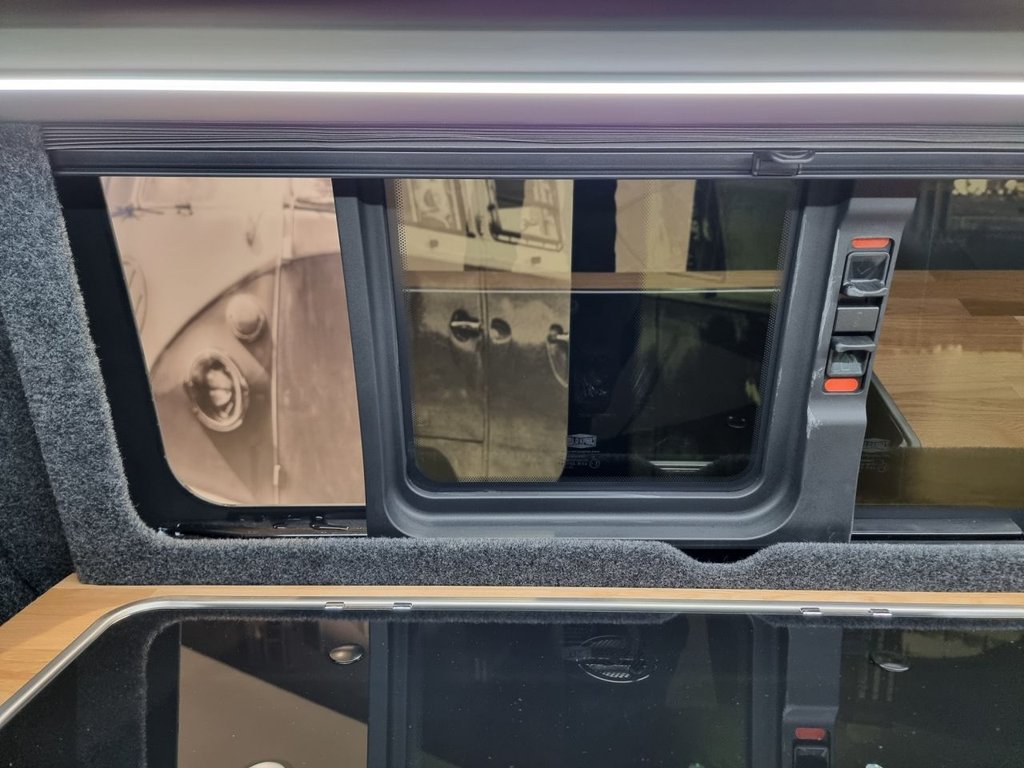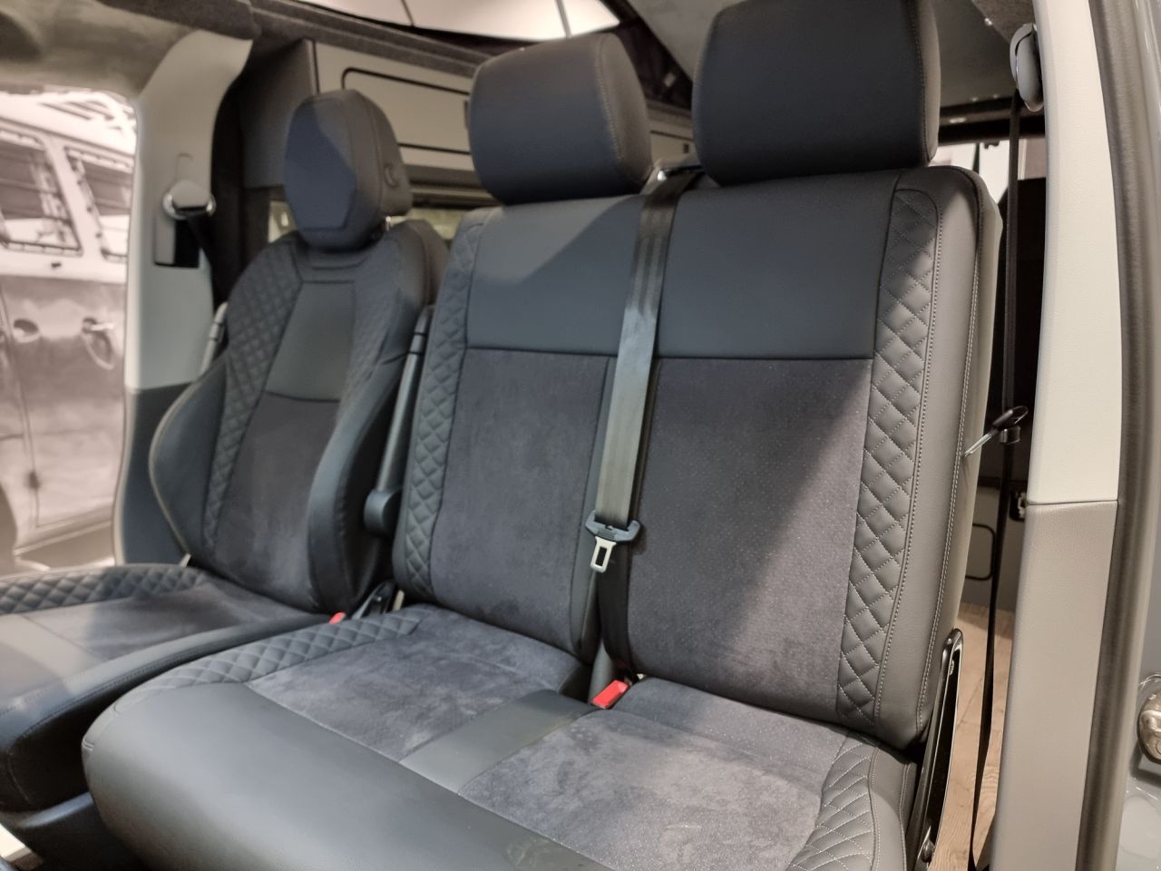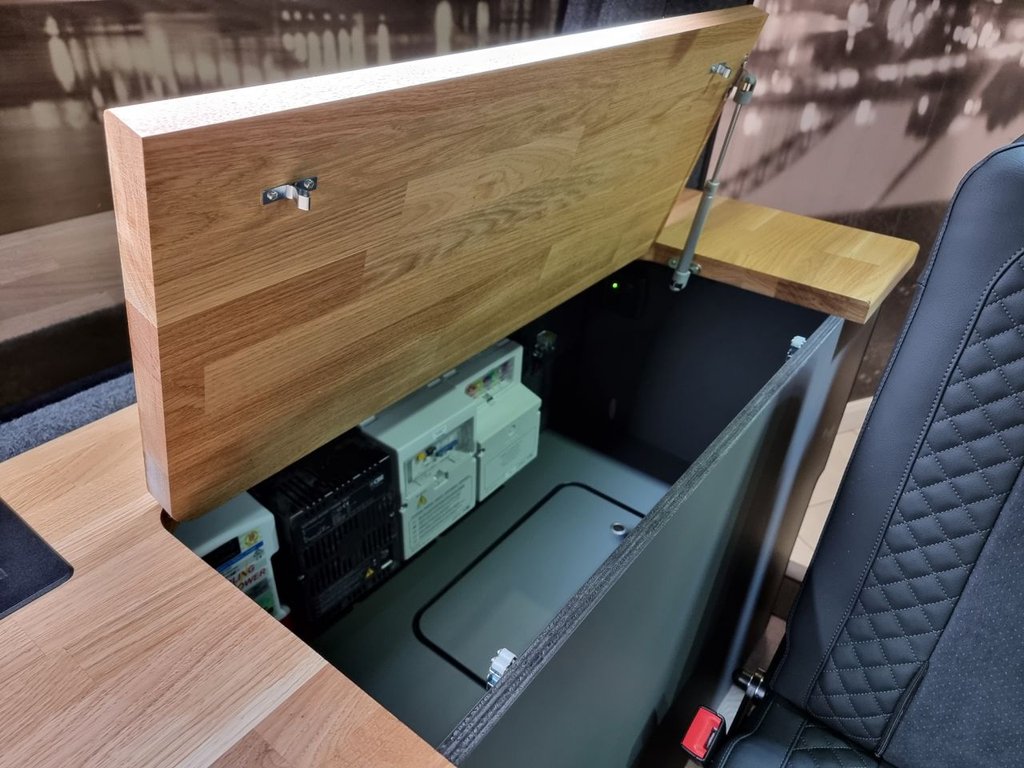 Westdubs poptop roof with scenic canvas Elevating upper bed system Privacy glass all-round Full extended furniture Solid oak worktop with hinged lid for storage Oak tambour doors to match worktop Flush soft close doors with black flush catch's Can double burner and sink unit Fold down tap 50L fridge freezer with LG compressor Dometic camper spec microwave CBE PC180 power management system Sterling split charge system Flush mount soft close sockets - 2 x 240v & 1 x double usb Cool white LED lighting throughout Onboard 130amp leisure battery Onbaord gas locker for 907 gas bottle Under chassis 69L water tank High pressure shower Storage for thetford 335 porta potti within cabinetry Vanshade thermal blinds throughout Planar 2kw diesel heater with 7 day programmable timer M1 tested Fabworx rock n roll bed