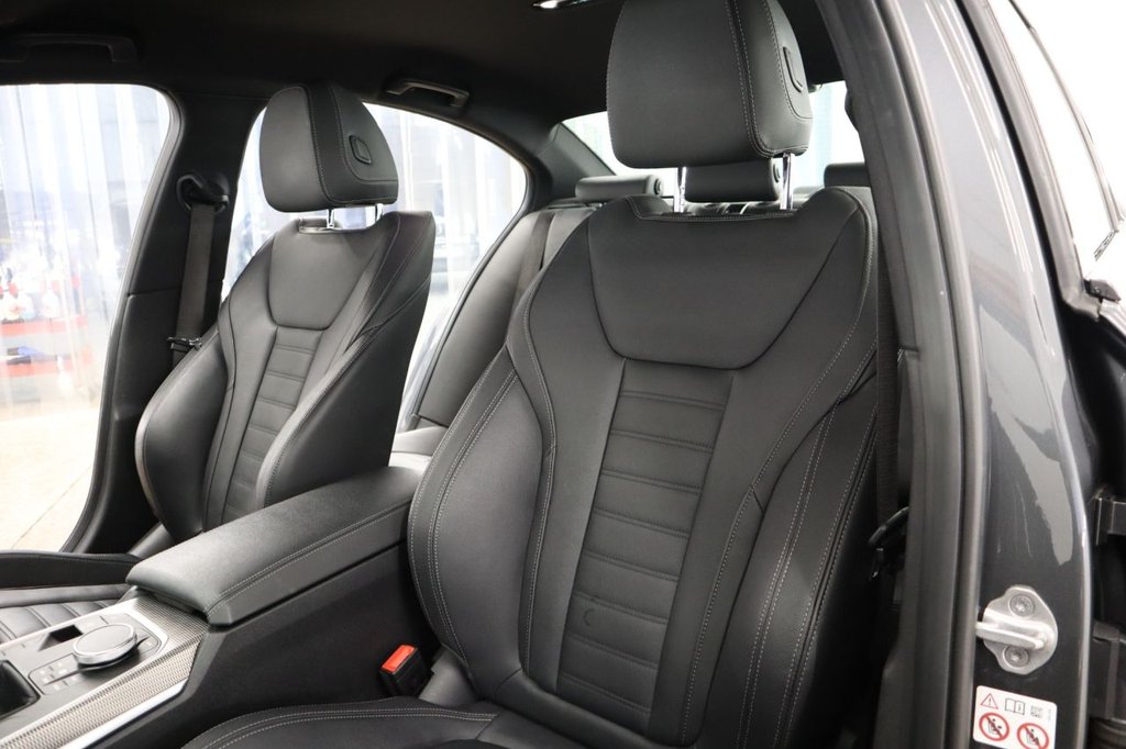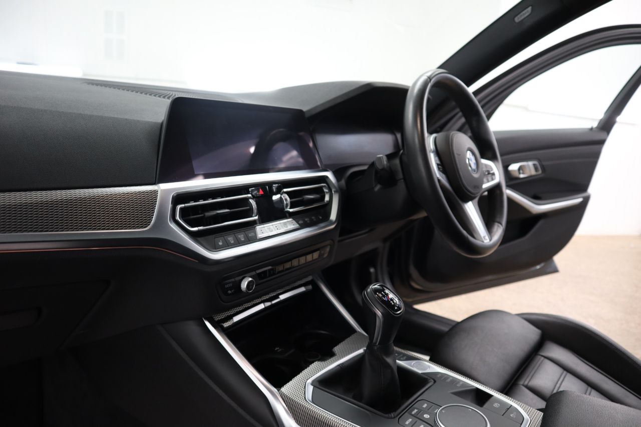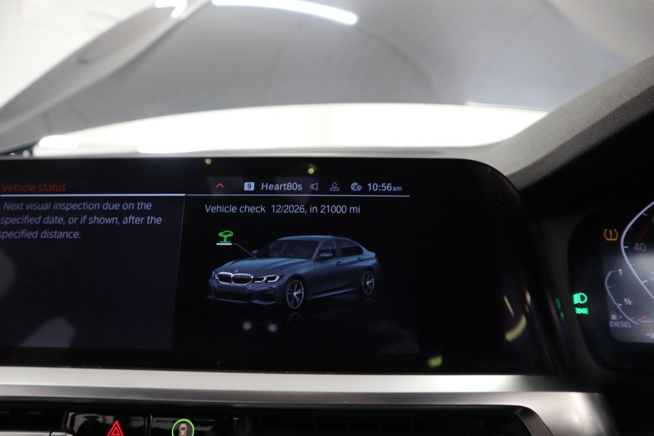 This 2019 BMW 3 Series 318d M Sport finished in Mineral Grey Metallic with contrasting Vernasca Black Individual Soft Leather trim with Double Grey stitching, an exceptional ownership proposition with its remarkably low mileage of just 33,000 miles for its age and a 3 month warranty for your peace of mind. As a Euro 6 compliant model, it features a 2.0L diesel engine and is presented in the desirable M Sport trim. Notable features include the distinctive M Sport gear selection lever, a comprehensive Parking Assistant system with front and rear sensors and a rear camera, and the BMW Connected Package Professional which includes Apple CarPlay. You'll also appreciate the convenience of a Rain Sensor with automatic headlight activation and Bluetooth hands free connectivity with a USB audio interface. This BMW 3 Series stands out with its impressive fuel economy, achieving a highlight of 58 mpg, which is significantly better than many other vehicles in its class. Furthermore, its low insurance group and low CO2 emissions indicate that running costs are kept to a minimum, making it a sensible and economical choice for everyday driving. Factory options include Colour Screen Satellite Navigation, Media Pack, Touchscreen Control, Add Blue System, Keyless Start, Sport and Eco Pro Gearbox Modes, USB Dock, Six Speed M Sport Gearbox, iPhone 15 and 16 Mini USB, Multifunction Leather and Chrome Steering Wheel, Automatic Wipers Automatic Headlights, Cruise Control Speed Limiter, Heated Seats, Driver and Passenger Controlled Air-Conditioning, Carbon Fibre Pack to Dashboard and Door Inserts, Centre Arm Rest with Storage, SOS System, Interior Light Pack, Auto Dimming Rear View Mirror, Reverse Camera with Grid Lines, Reversing Assist, Park Assist, BMW Polished Faced Sport Alloys, Child Safety Restrain System, Auto Start Stop, Folding Door Mirrors, Daytime Driving Lights
