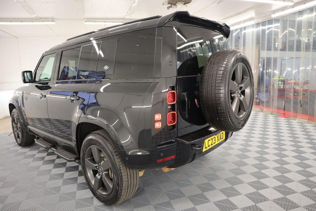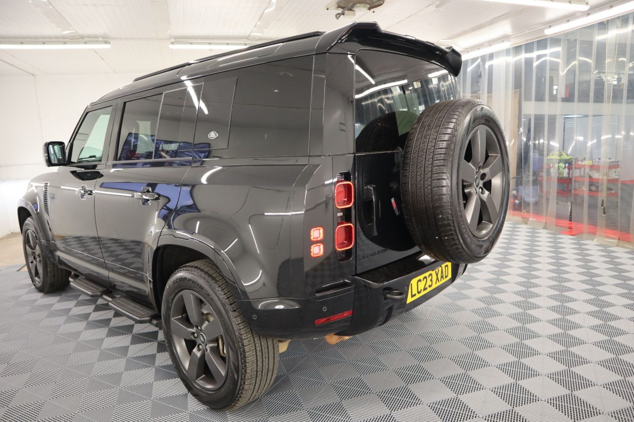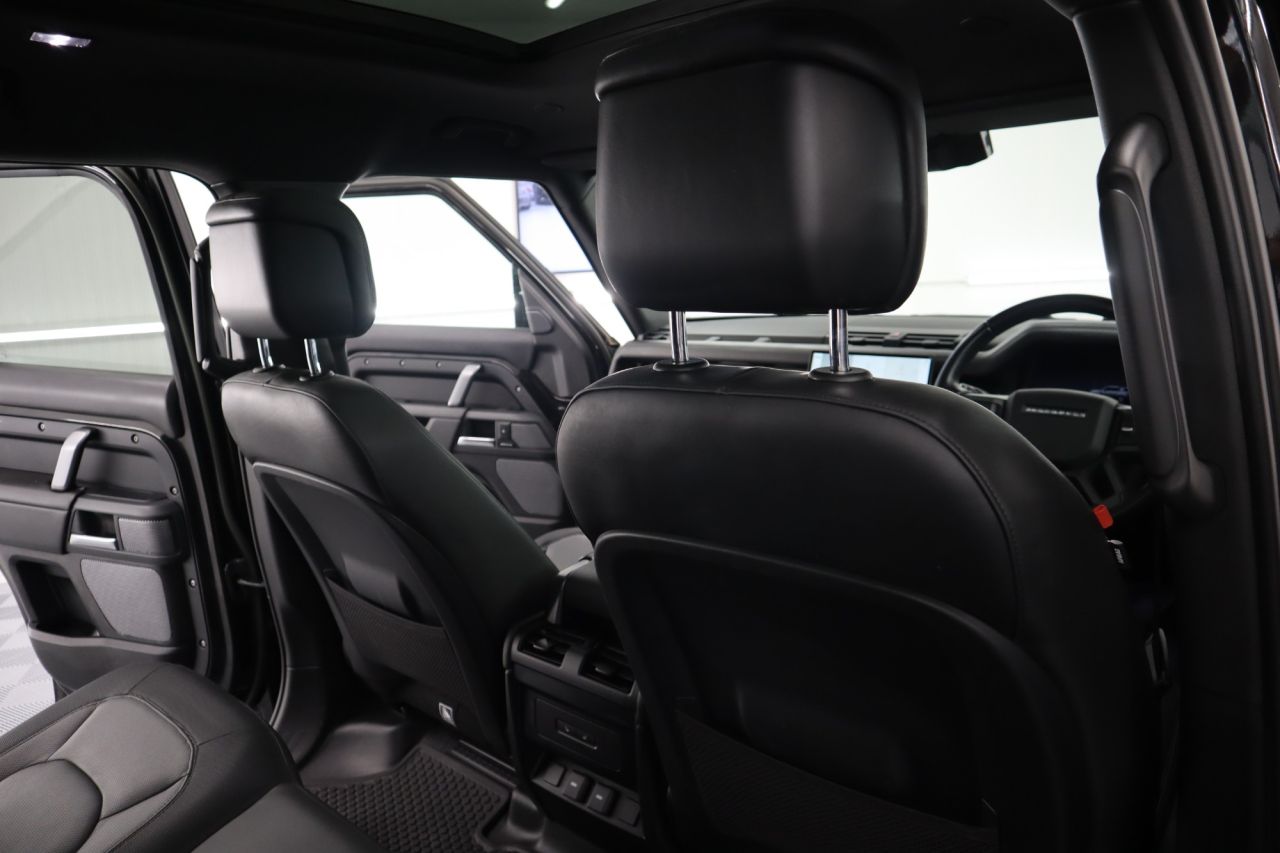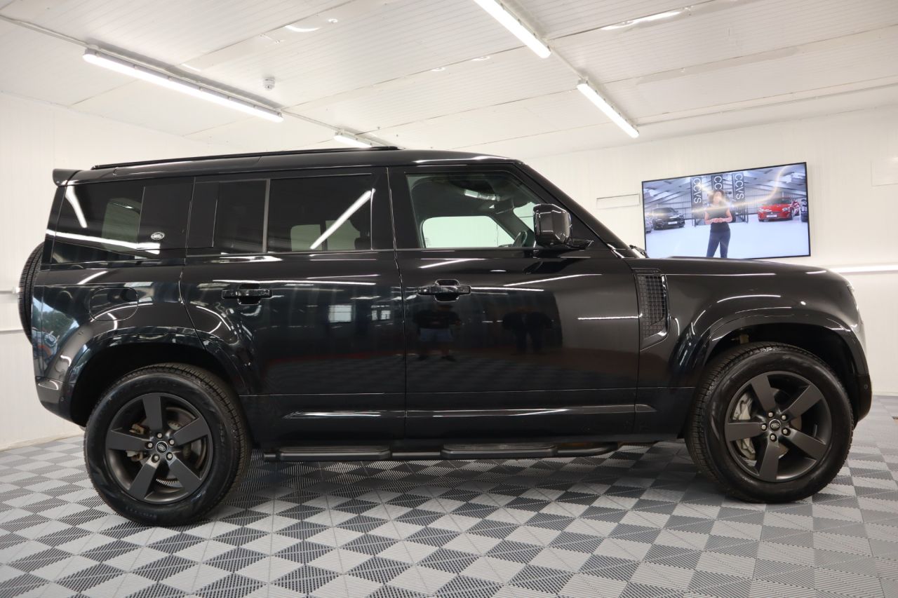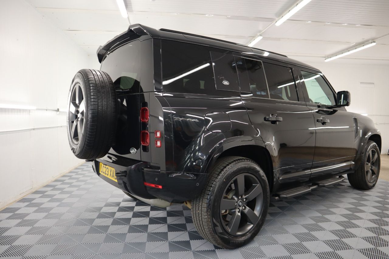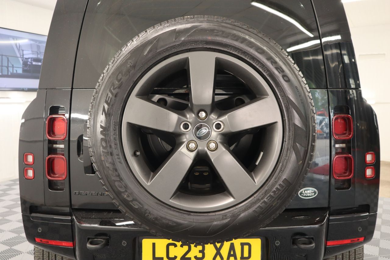 This 2023 Land Rover Defender 110 D300 X Dynamic HSE presents an exceptional opportunity with its remarkably low mileage of just 19,000 miles. This Euro 6 compliant, four wheel drive model boasts a powerful 3.0 litre diesel engine, capable of accelerating from 0 to 60mph in a swift 6.6 seconds, and offers a substantial towing weight of 3500 kg. Inside, you'll find luxurious 14 way heated and cooled electric memory front seats with 4 way manual headrests, ensuring ultimate comfort. Entertainment is provided by the Meridian Surround Sound System, and seamless connectivity is assured with Android Auto. The exterior is enhanced by Premium LED Headlights with Signature Daytime Running Lights, and for added safety, Blind Spot Assist is included. The Defender 110 D300 X Dynamic HSE is designed to impress in Santorini Black with contrasting Black perforated soft leather trim and its features highlight its superior capabilities compared to other vehicles in its class. The combination of its impressive acceleration and robust towing capacity makes it a versatile choice for both everyday driving and more demanding tasks. The inclusion of advanced comfort features like the memory front seats and the premium Meridian sound system elevate the driving experience significantly. Furthermore, its position within a low insurance group makes it a more economical choice to own and run, demonstrating its overall value and appeal. Factory options include Electric Memory Seats, Panoramic Glass Tilt and Slide Sunroof, Meridian Sound System, Multifunction Heated Leather Steering Wheel, Cruise Control, Speed Limiter, Voice Command, Automatic Headlights, Automatic Wipers, Mini USB and Standard USB Dock, Hill Descent, Low Range Gearbox Modes, Automatic Tiptronic Gearbox, Driver and Passenger Air-Conditioning, Cup Holders, Centre Armrest with Fridge, Auto Dimming Rear View Mirror with Camera, SOS System, Illuminated Vanity Mirrors, Winter and Summer Protection Mats, Black Headlining, Side Steps, Keyless Entry, Lumber Support, Rear Privacy Glass, Roof Rails, Rear Boot Spoiler, Anthracite Grey Sport Alloys, Smart Track Headlights, X Dynamic Specification, Rear Folding Seats, Rear Child Protection System, Heated Rear Seats with Twin USB Sockets, Rear Load Cover, Park Distance Control, Touchscreen, Apple CarPlay, Wade Sensing Compass, Slope Assist, Media Pack, DAB, Radio Stereo, Energy Impact, Driver Login System, Colour Satellite Navigation System, All Round Camera System with 3-D Mode. Comes with service receipted at 15,641 miles (03/2025) and two keys